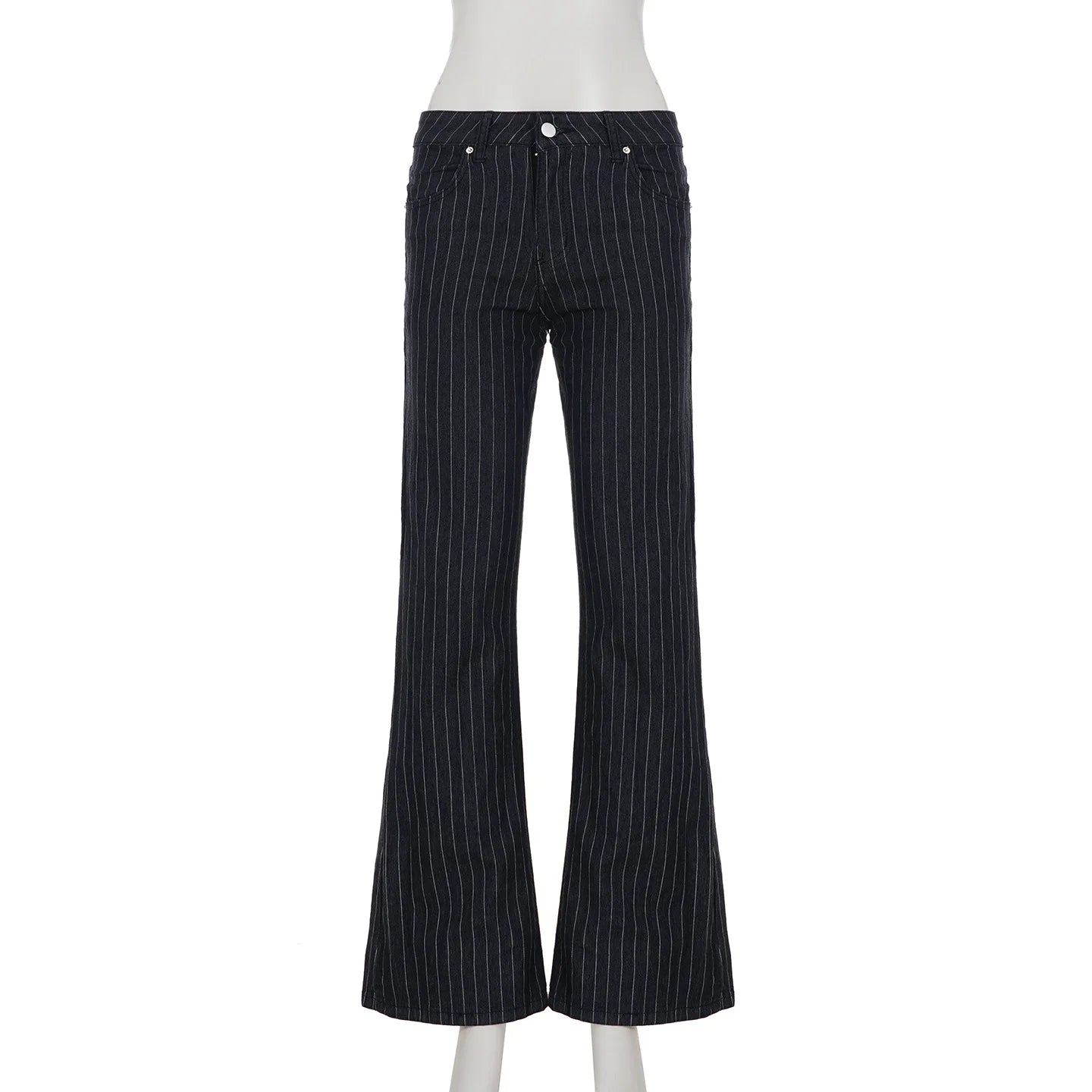 2000s Clothes Y2k Low Rise Boot Cut Jeans Woman Casual Black Striped Denim Trousers Streetwear Flare Pants P77-DD25