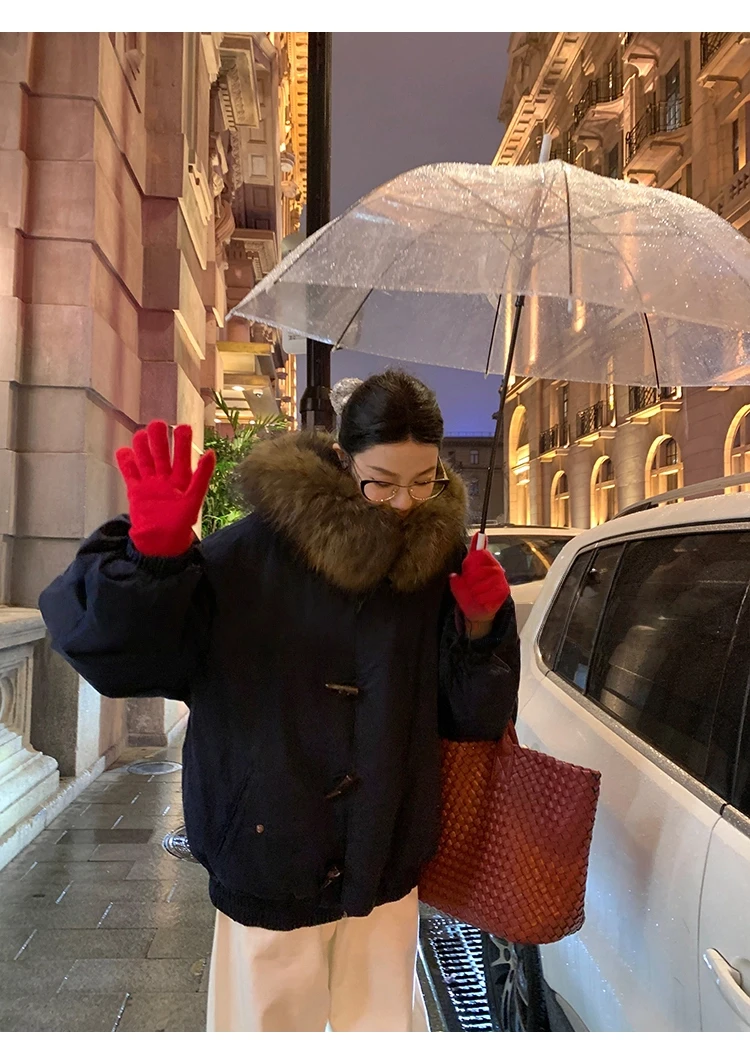 2025 New Female Winter Horn Button Jacket Women Warm Thicken Warm Women Fashion Casual Parkas Hooded Cotton Jacket Coat Outwear