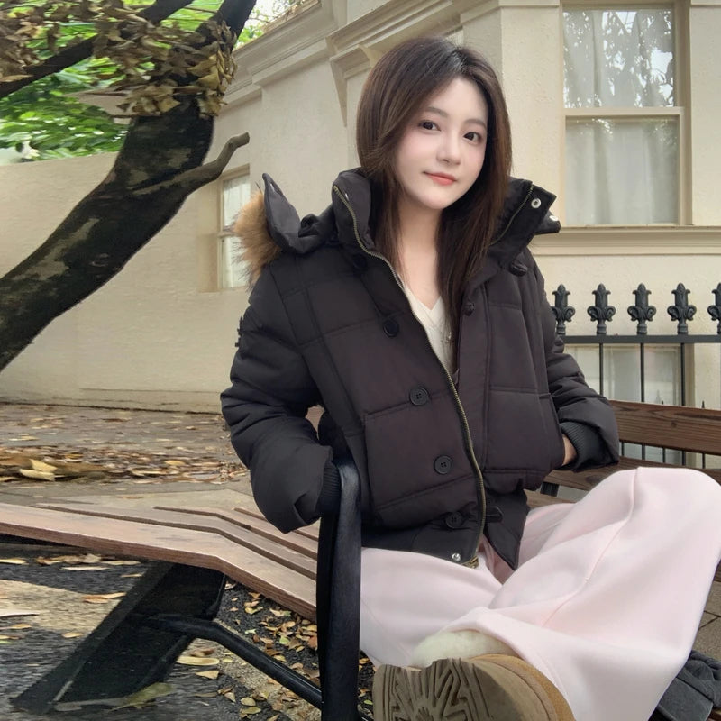 2025 New Winter Jacket Women Faux Fur Hooded Parka Coats Female Long Sleeve Zipper Thick Warm Snow Wear Jacket Coat Tops