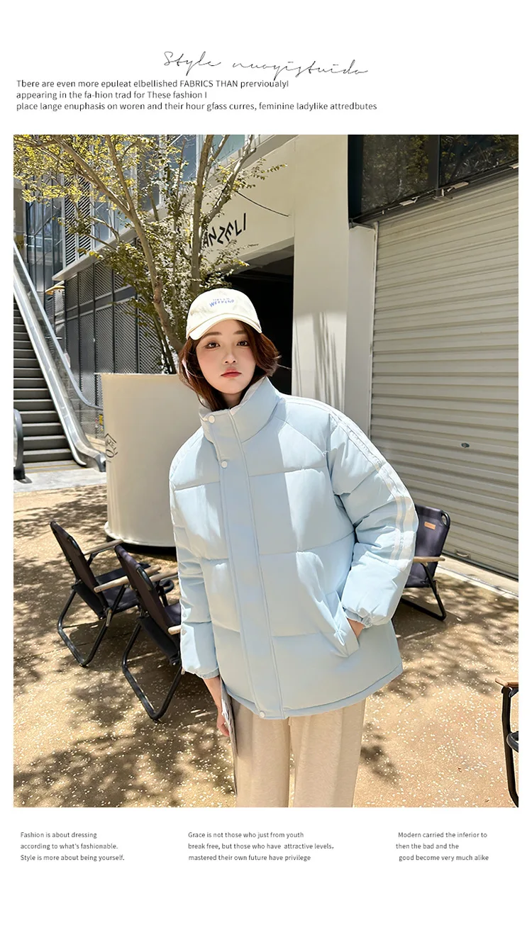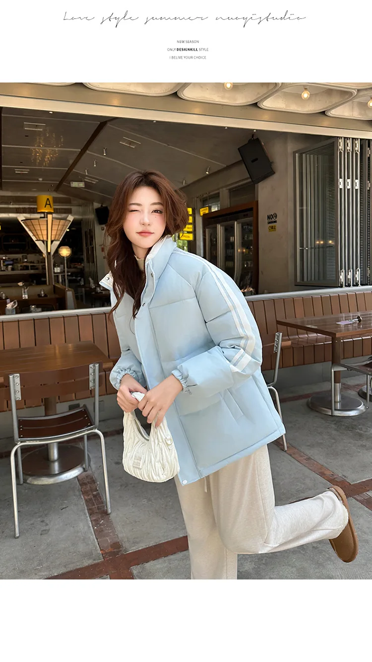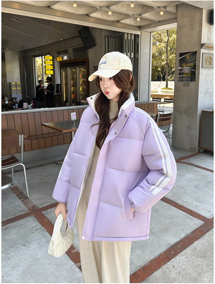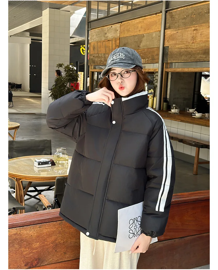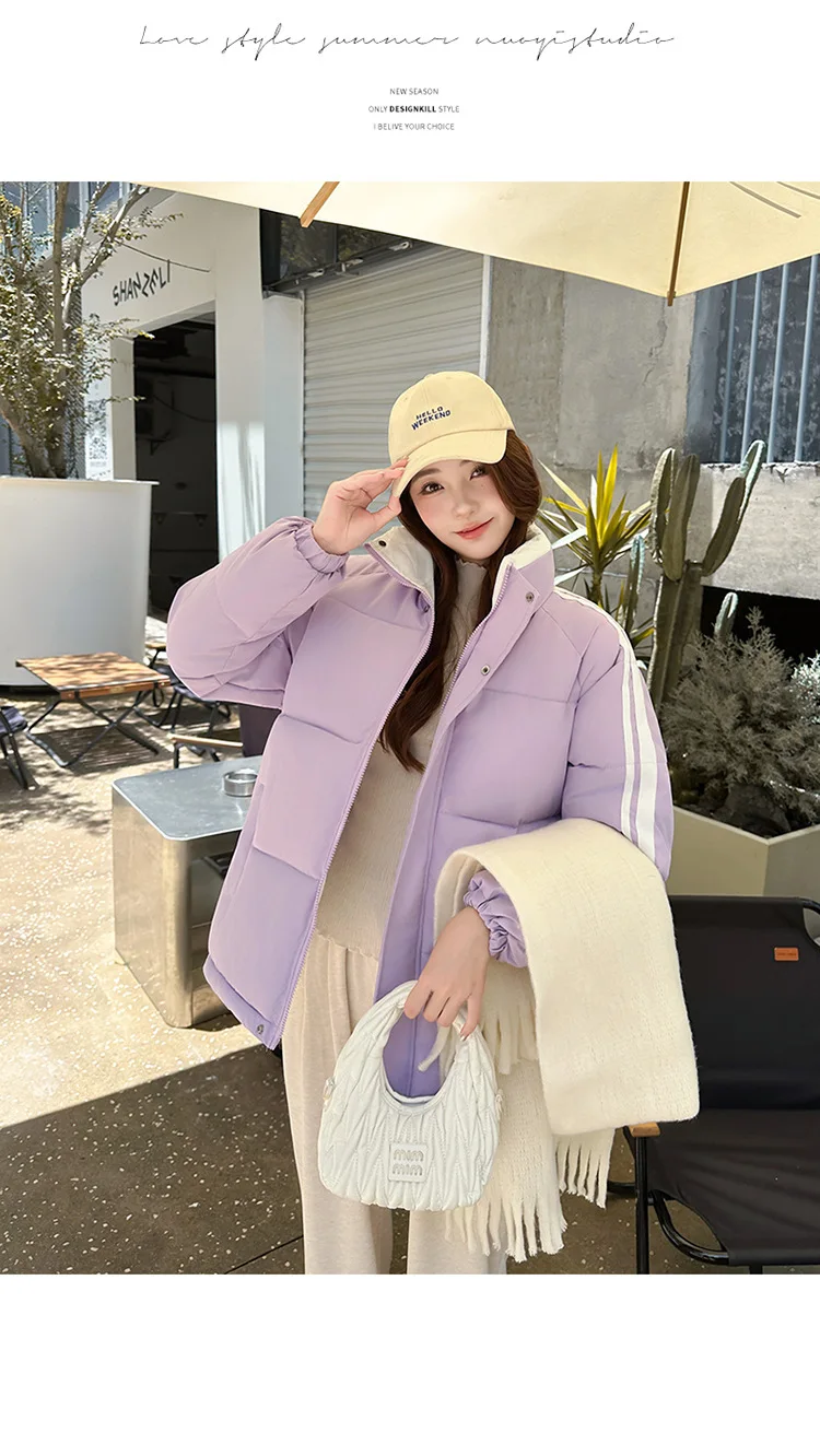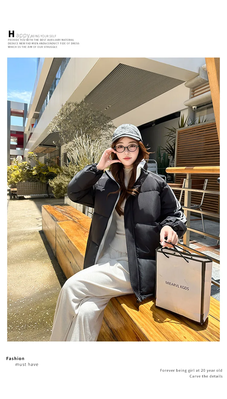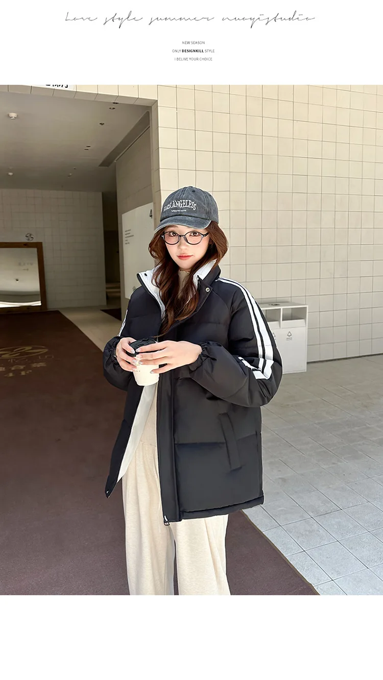 2025 Winter Clothing New Down Cotton Jacket Temperament Stand Collar Breadcoat Coat Loose Short Style New Trendy Style