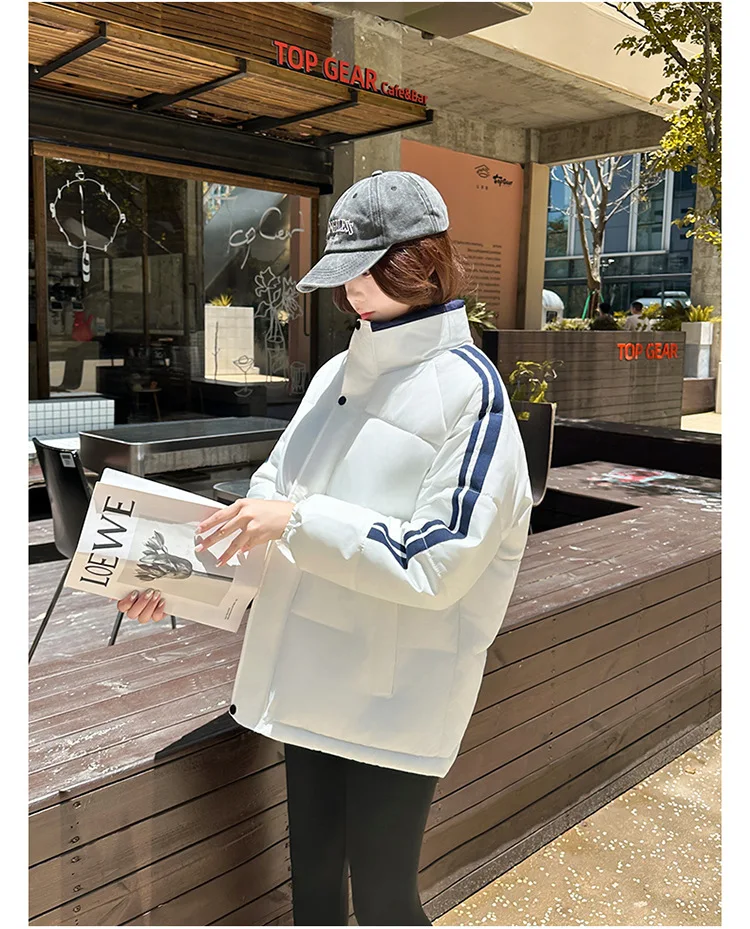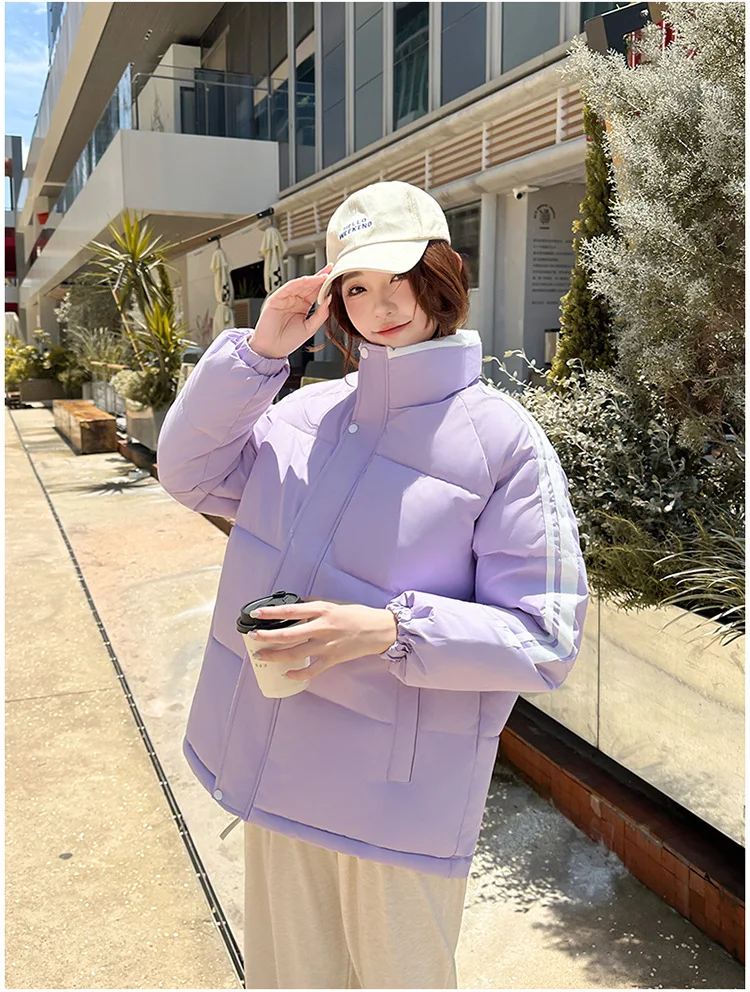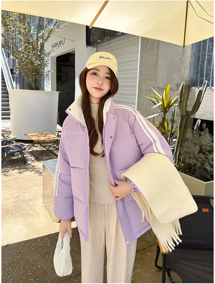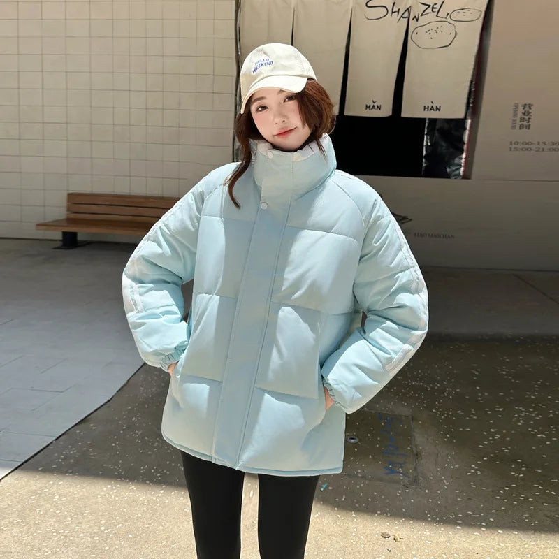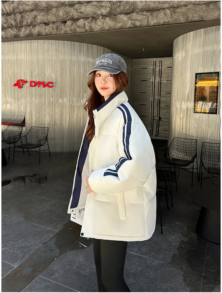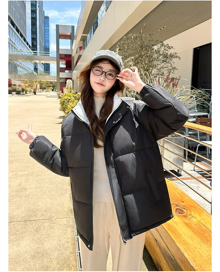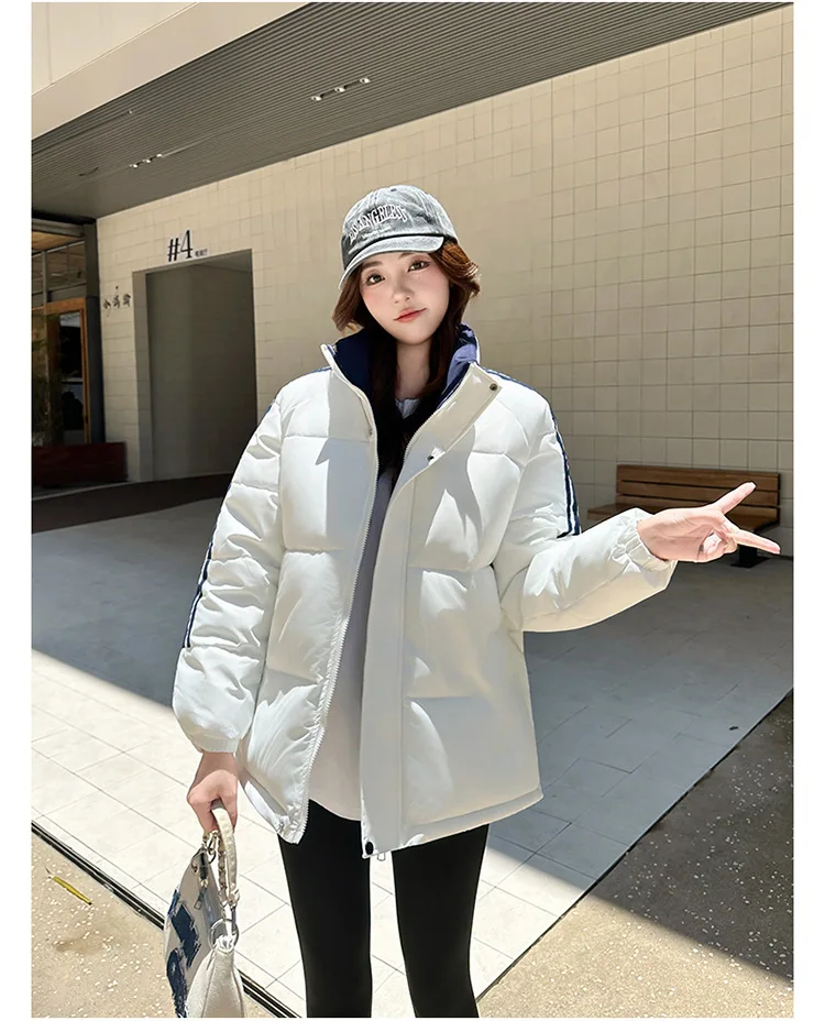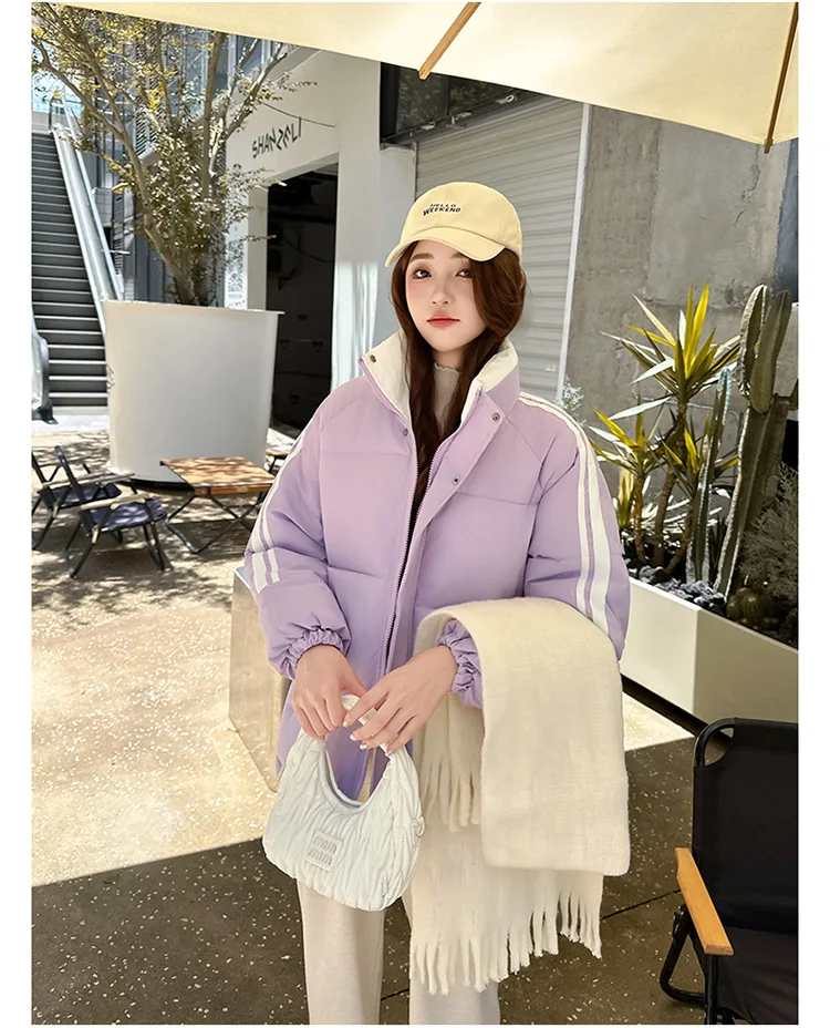 2025 Winter Clothing New Down Cotton Jacket Temperament Stand Collar Breadcoat Coat Loose Short Style New Trendy Style