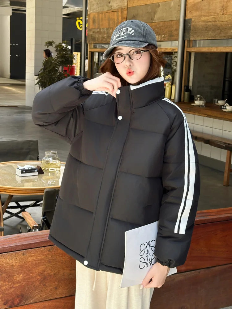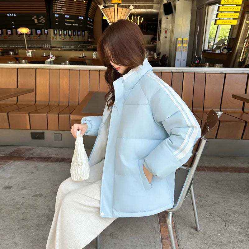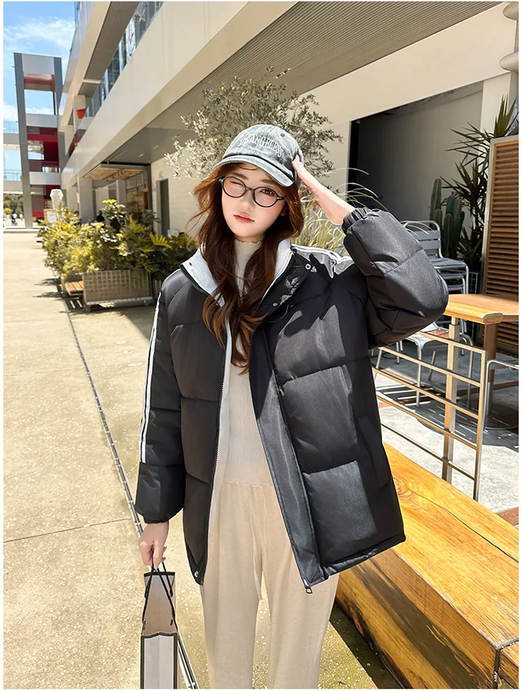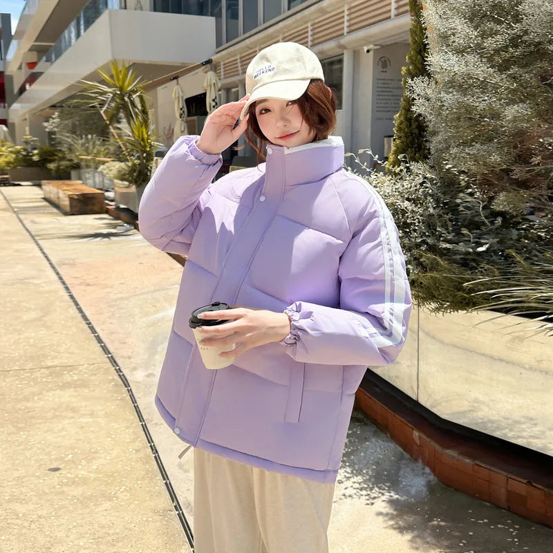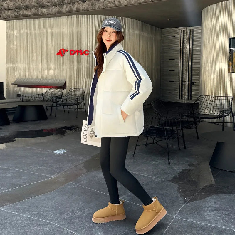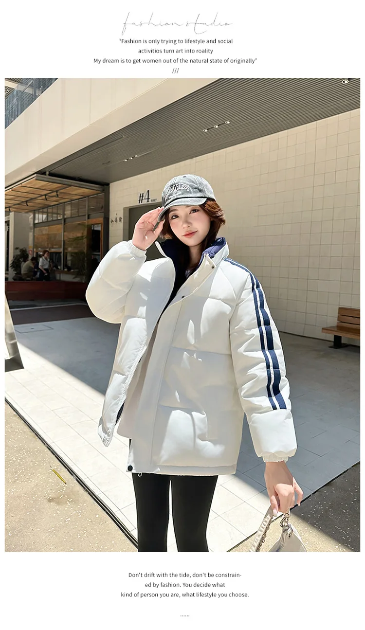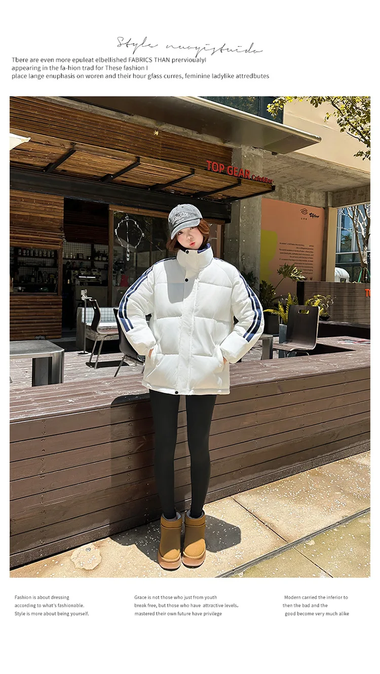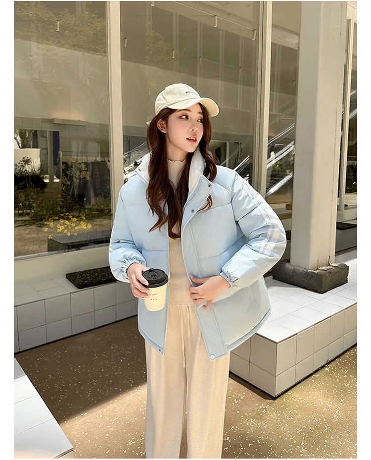 2025 Winter Clothing New Down Cotton Jacket Temperament Stand Collar Breadcoat Coat Loose Short Style New Trendy Style