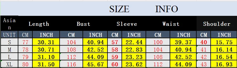 3. This is Asia size,t will be 1-2 smaller than EU/US size. pls do not refer to S/M/L/XL