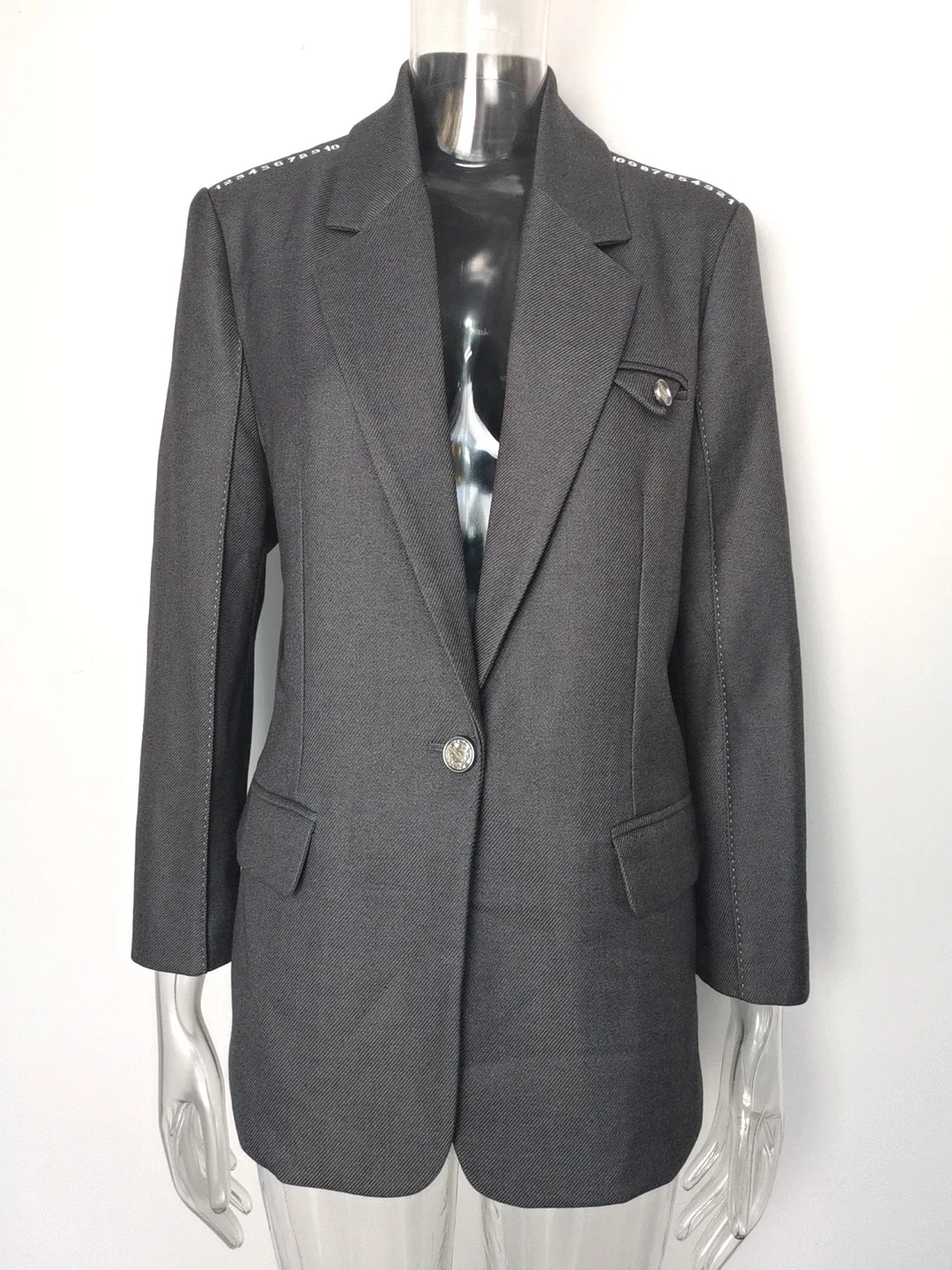 2025 Women Jacket Autumn New Mid-length Solid Color Commuter All-match Elegant Fashion Casual Long Sleeve Coat Suit for Female