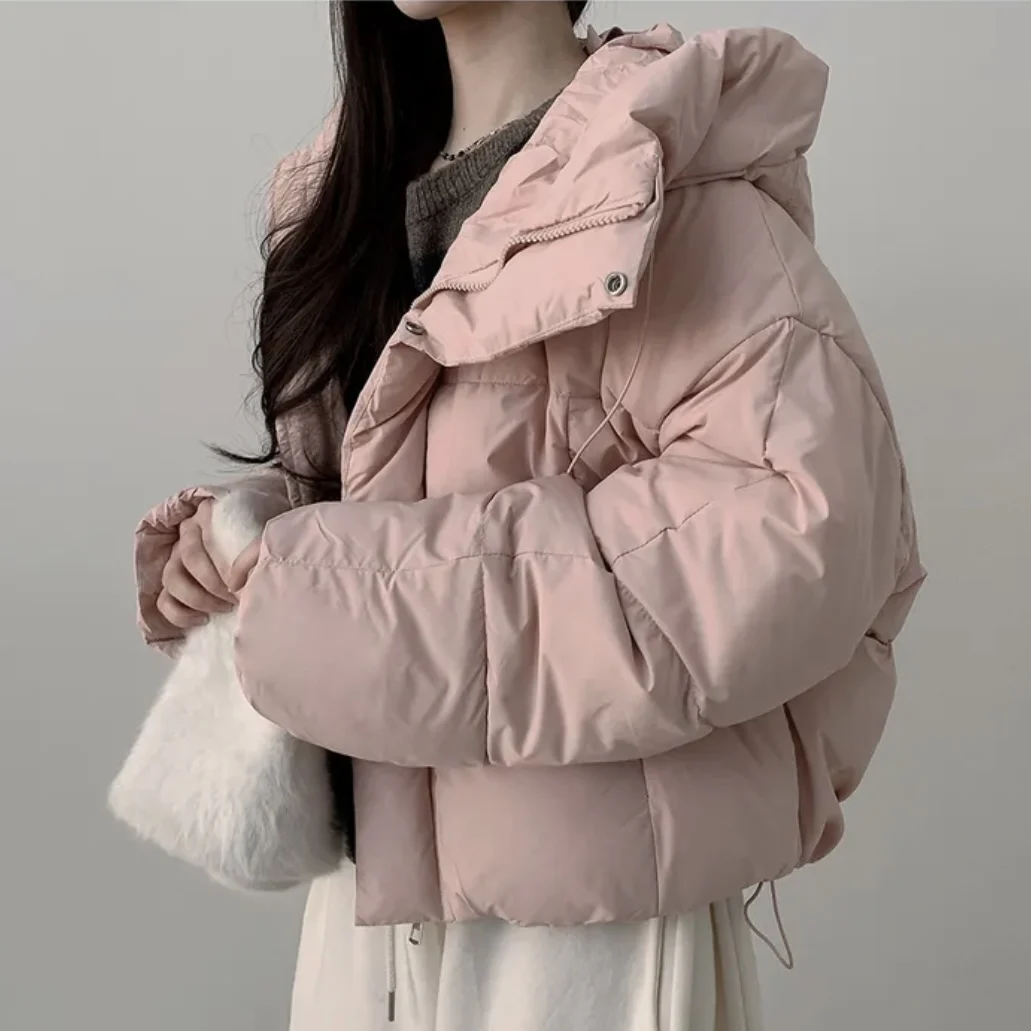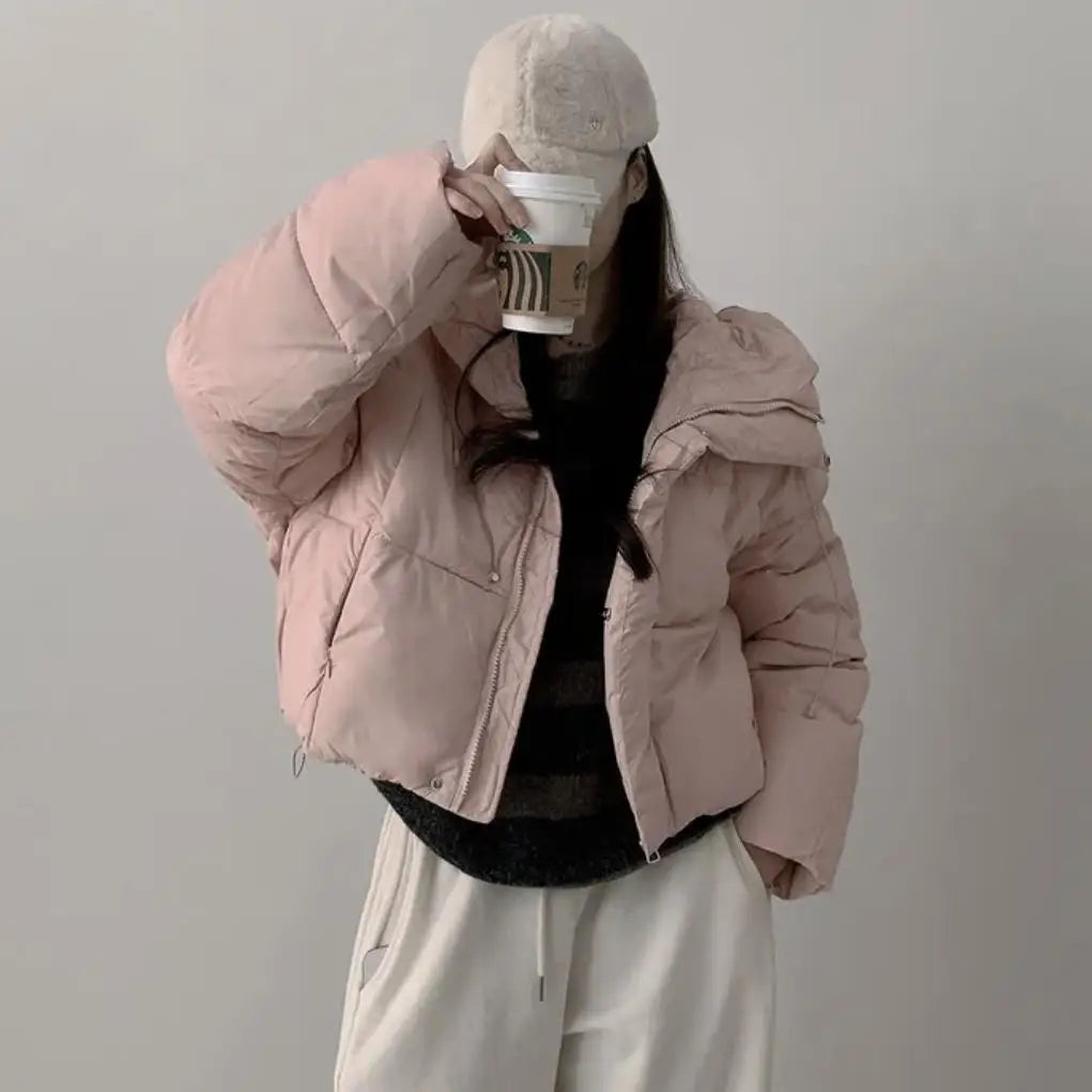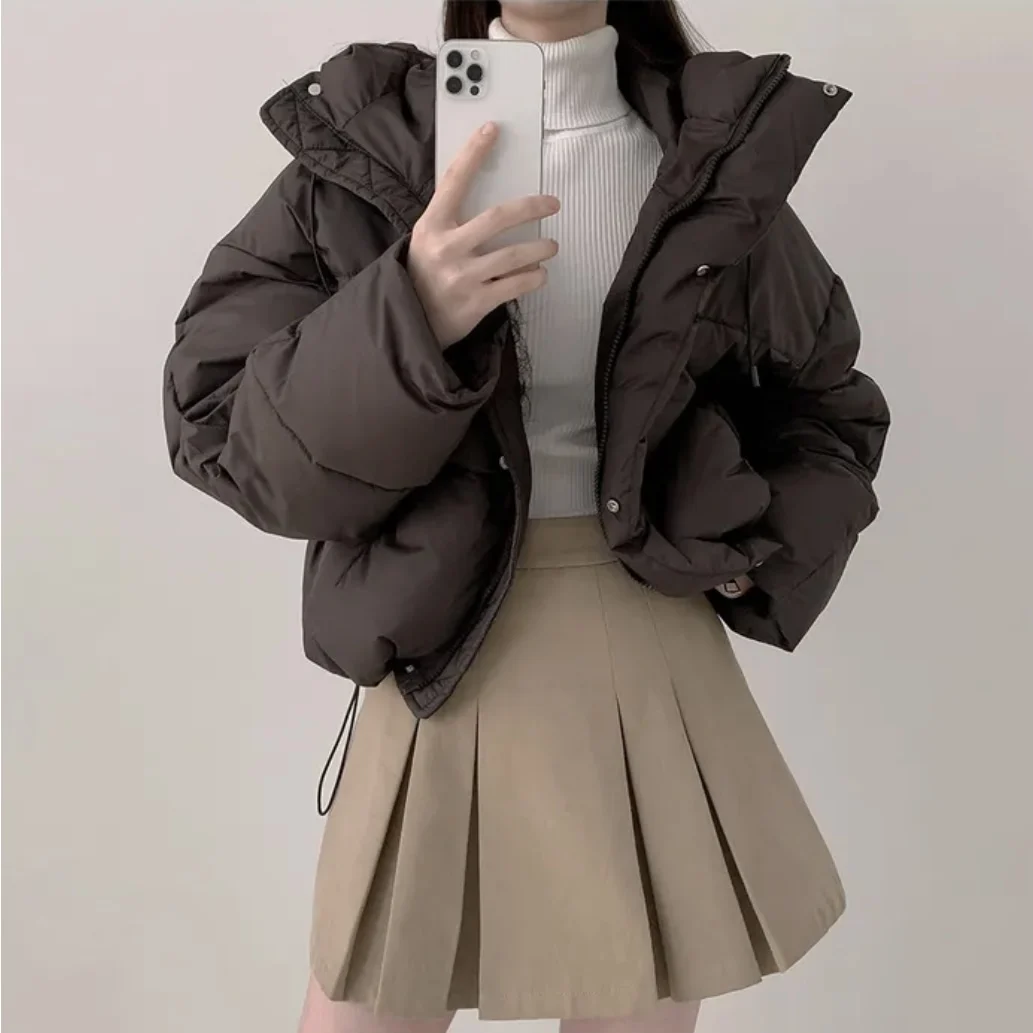 2025 Women New Cotton Padded Jacket Autumn Winter Long Sleeve Hooded Short Coat Zipper Parkas Warm Fashion Casual Ladies