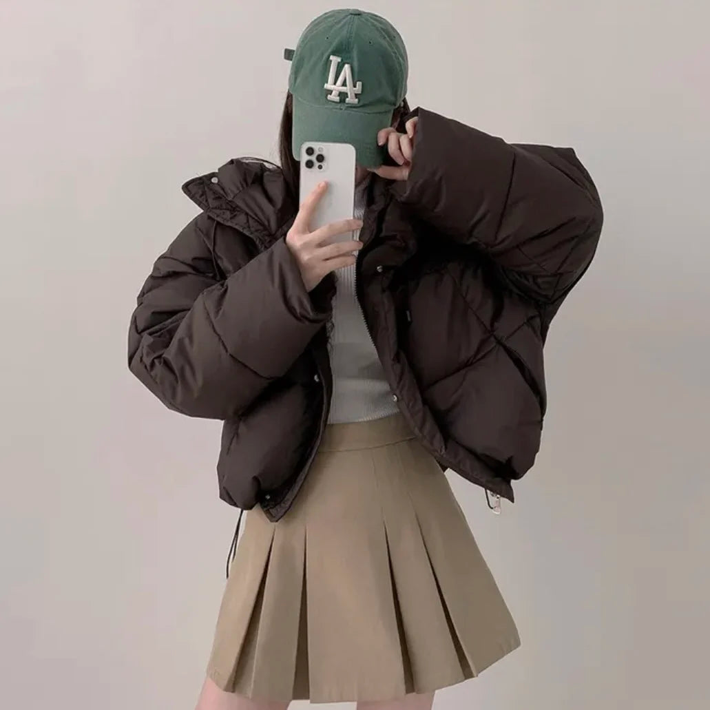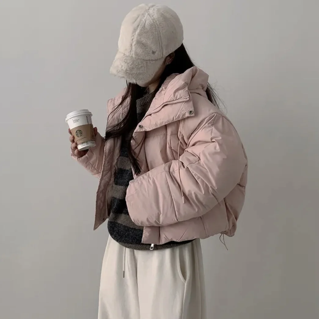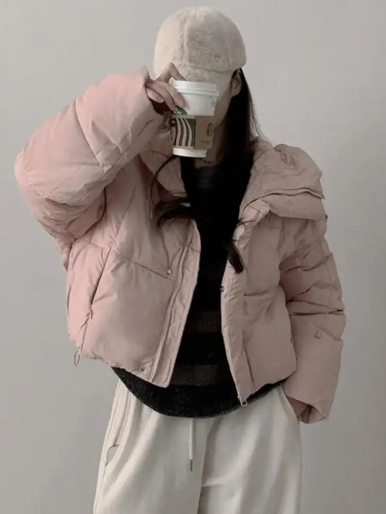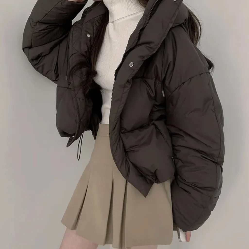 2025 Women New Cotton Padded Jacket Autumn Winter Long Sleeve Hooded Short Coat Zipper Parkas Warm Fashion Casual Ladies