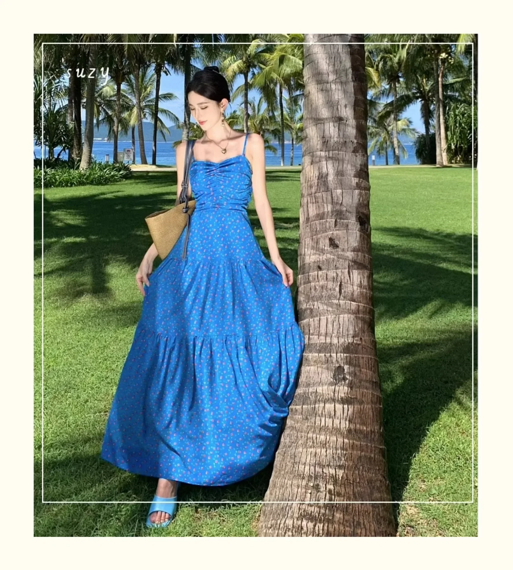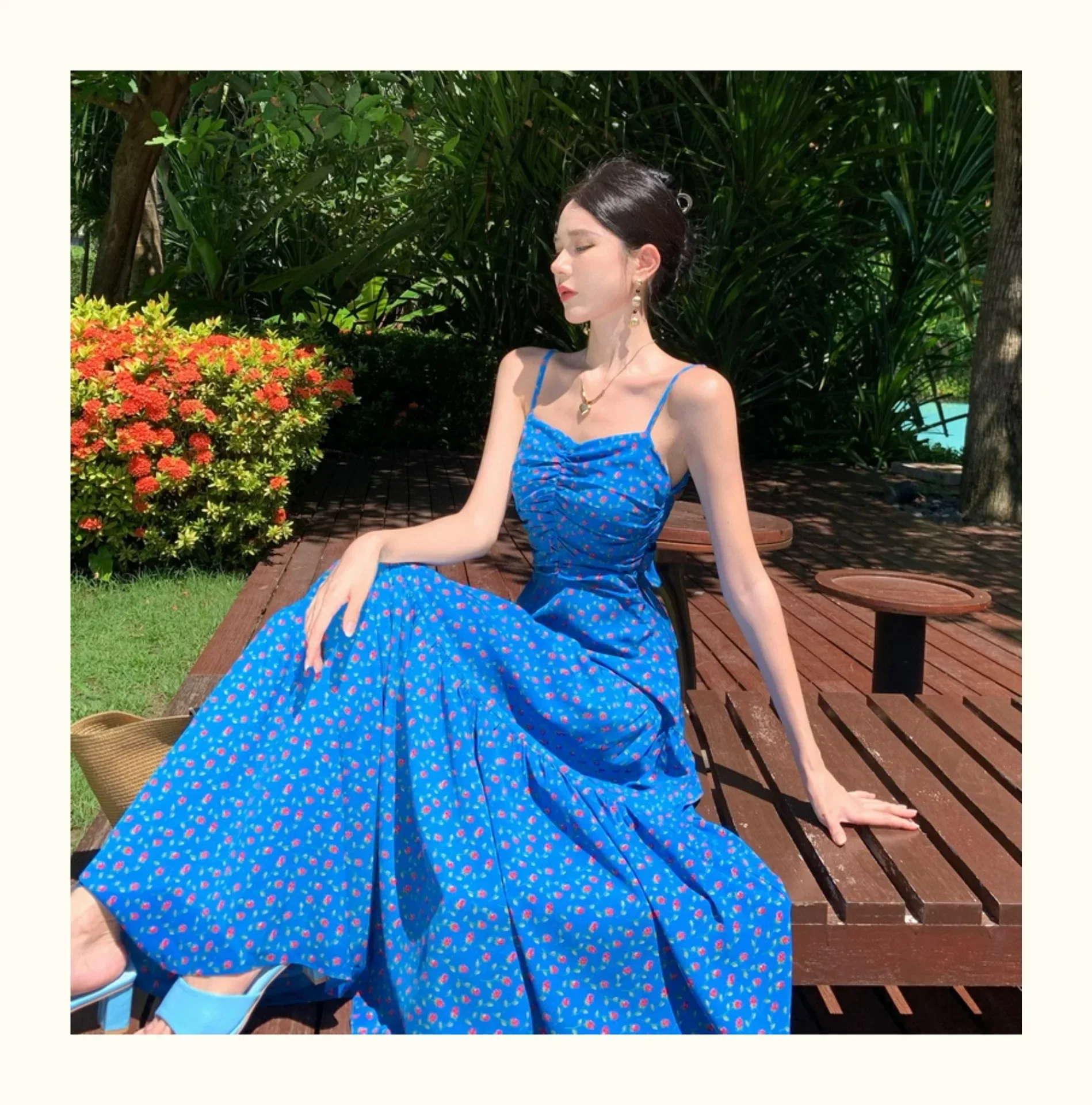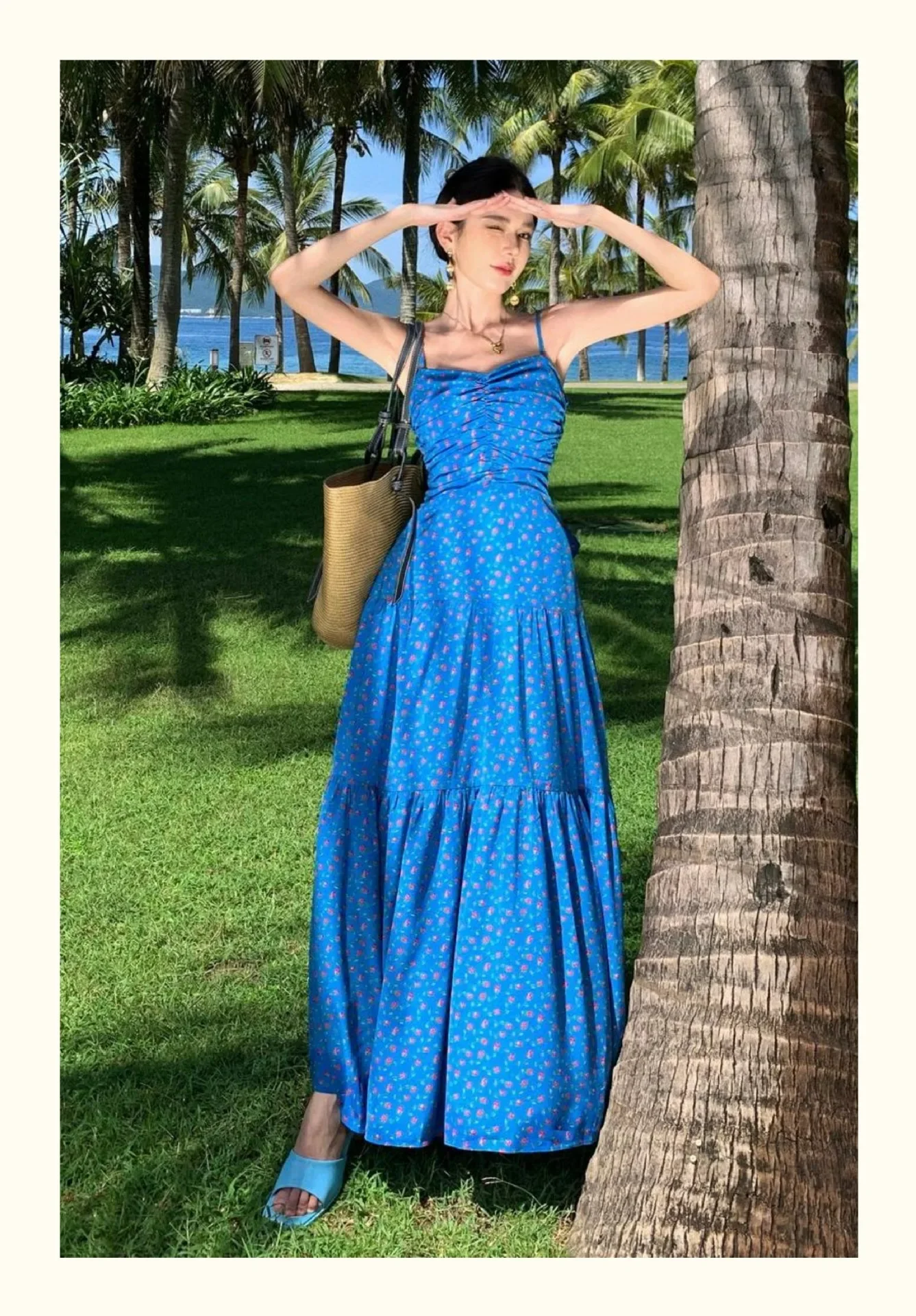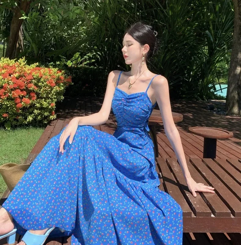 • Floral Blue Design : The floral blue pattern adds a touch of elegance and femininity to this summer dress, perfect for seaside photos.