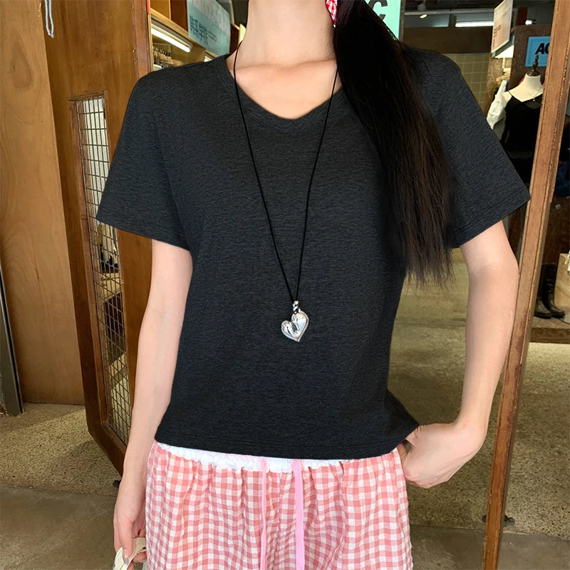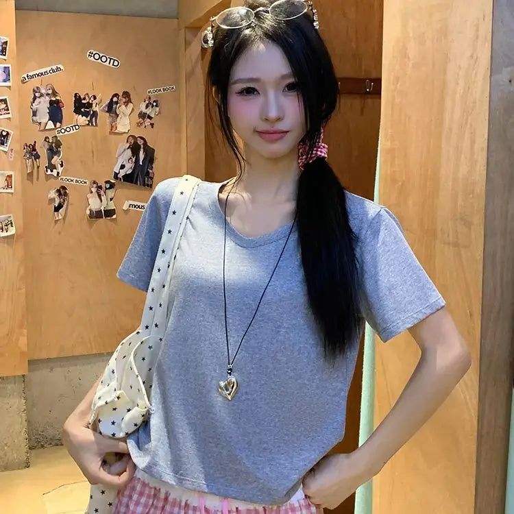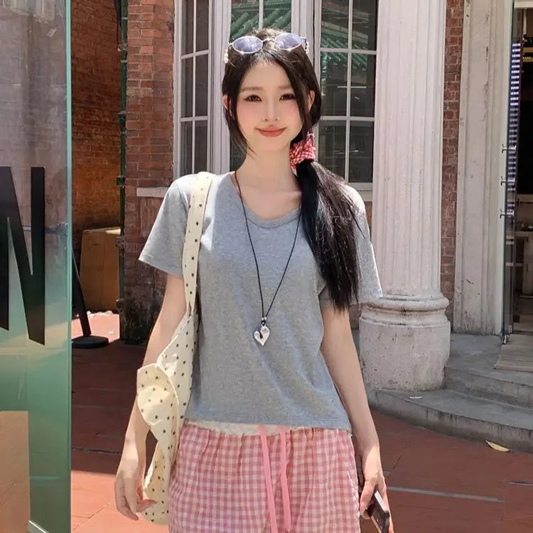 Cotton Loose Short Sleeve Shoulder T-Shirt Women Summer Casual Basic Tops Lazy Peplum