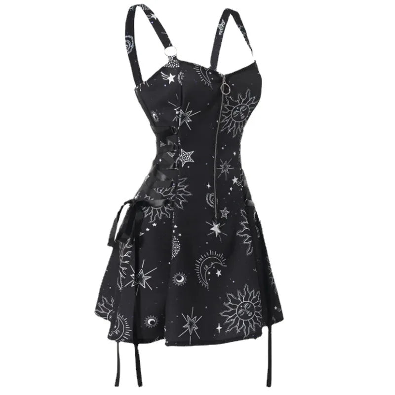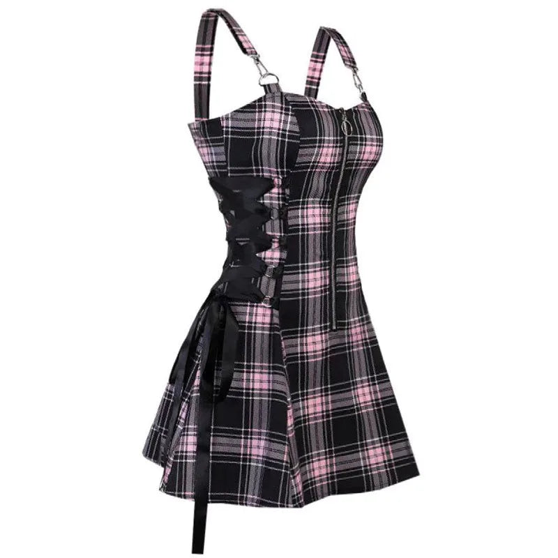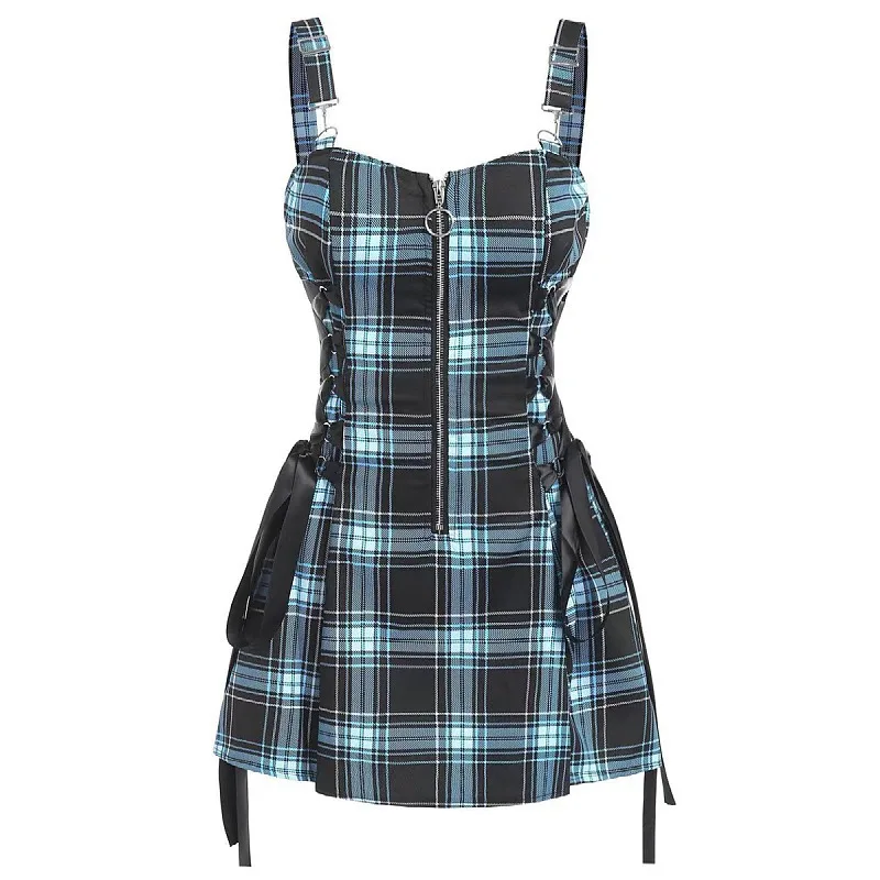 Dark Gothic Women Plaid Dress High Waist Bodycon Vintage Punk Harajuku Lolita Sleeveless Streetwear Y2K Sexy A-Line Mini Dresses