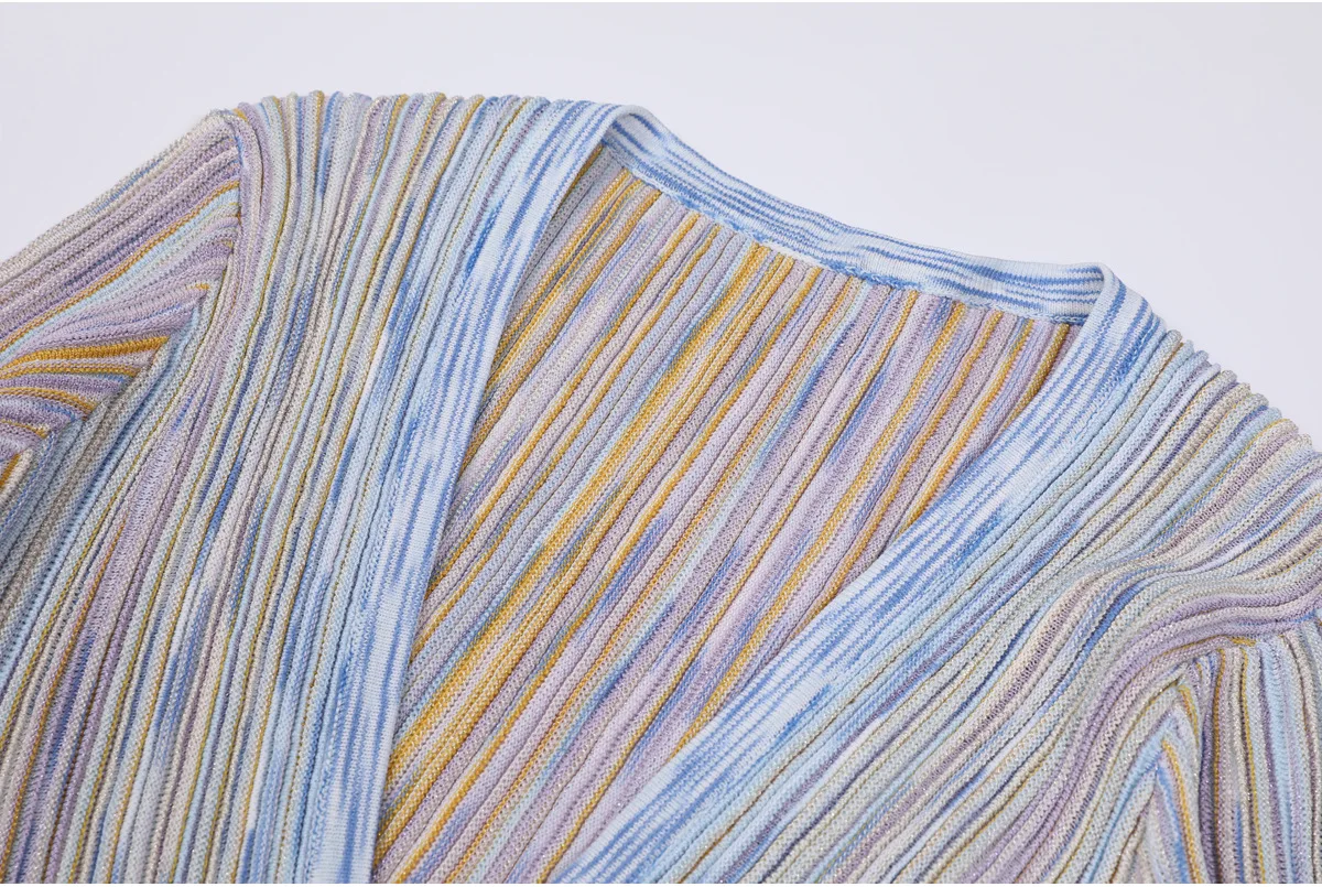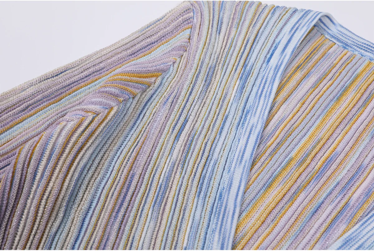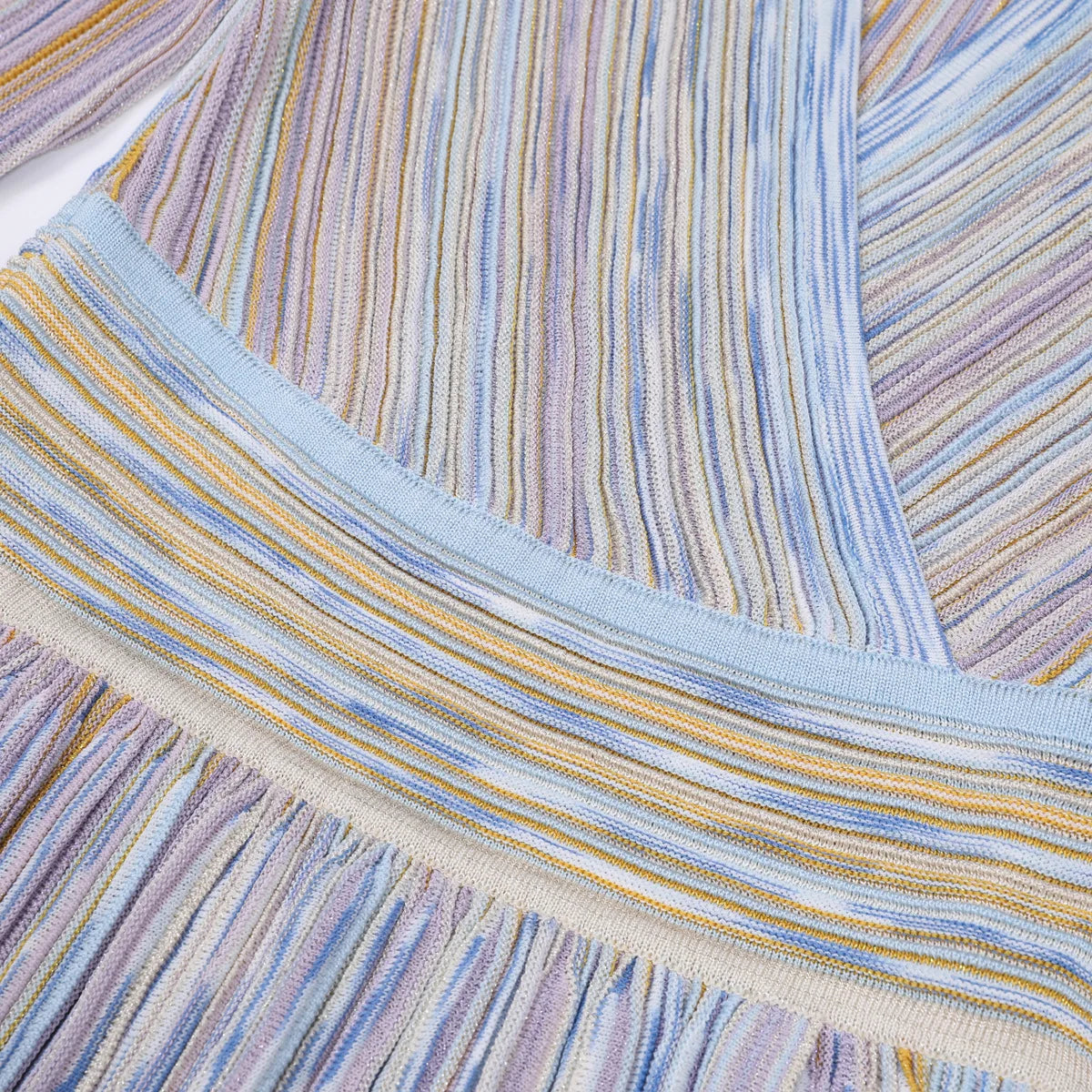 Elegant French Romantic V-Neck Long Sleeve Split Knit Dress Slimming Long Gown for Women High-Quality Autumn New Style