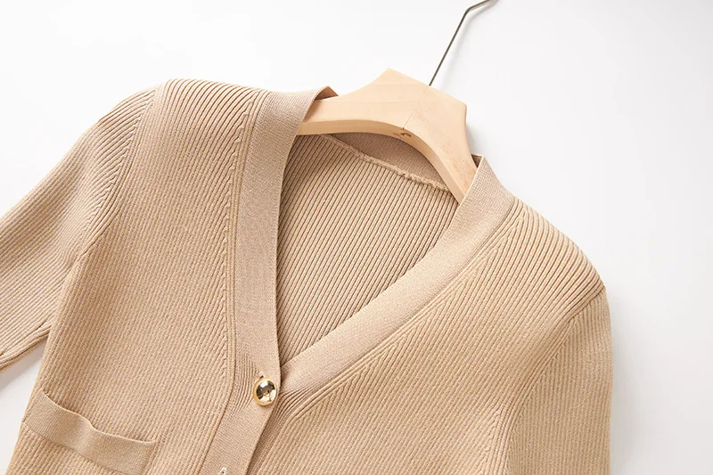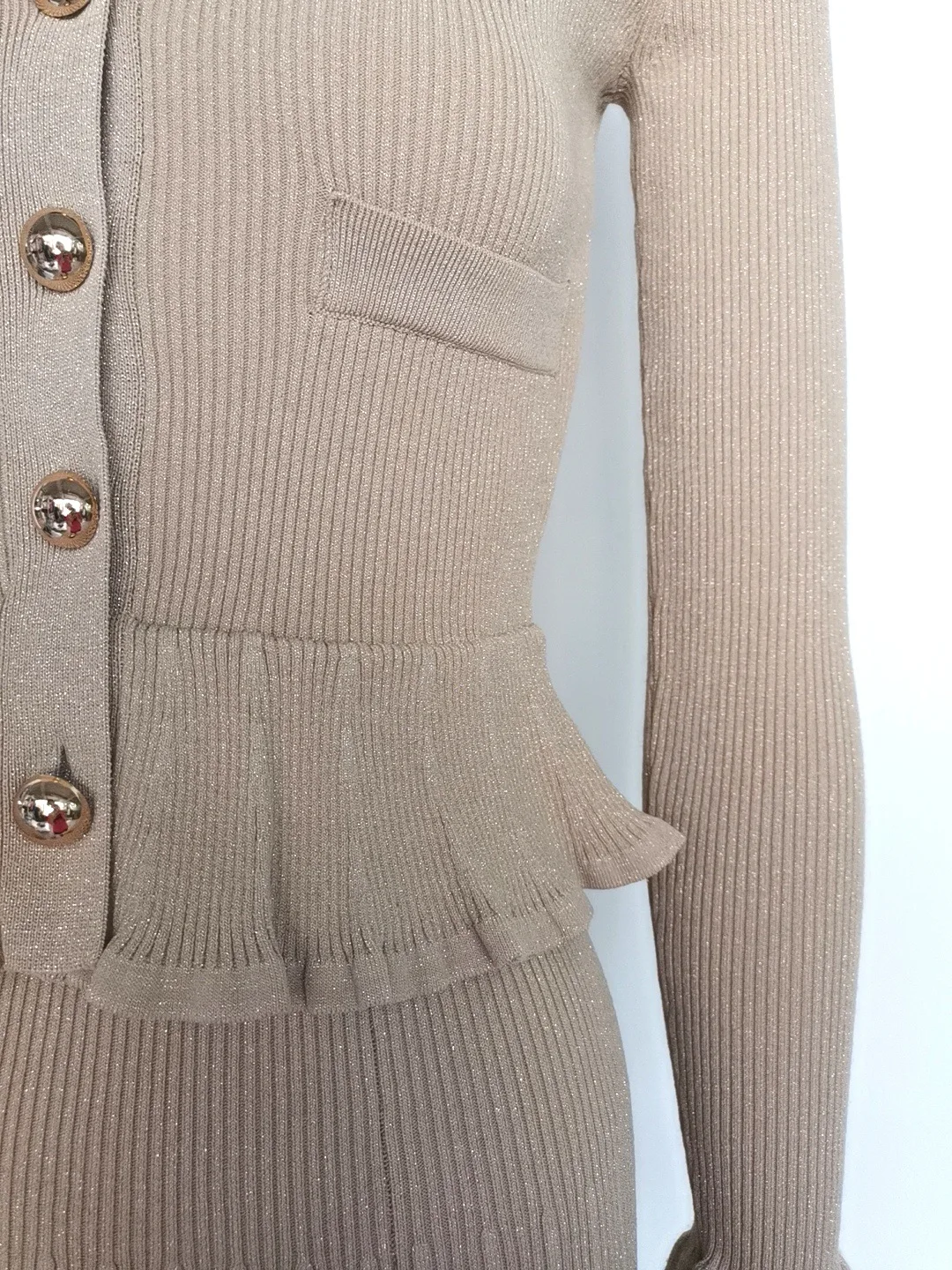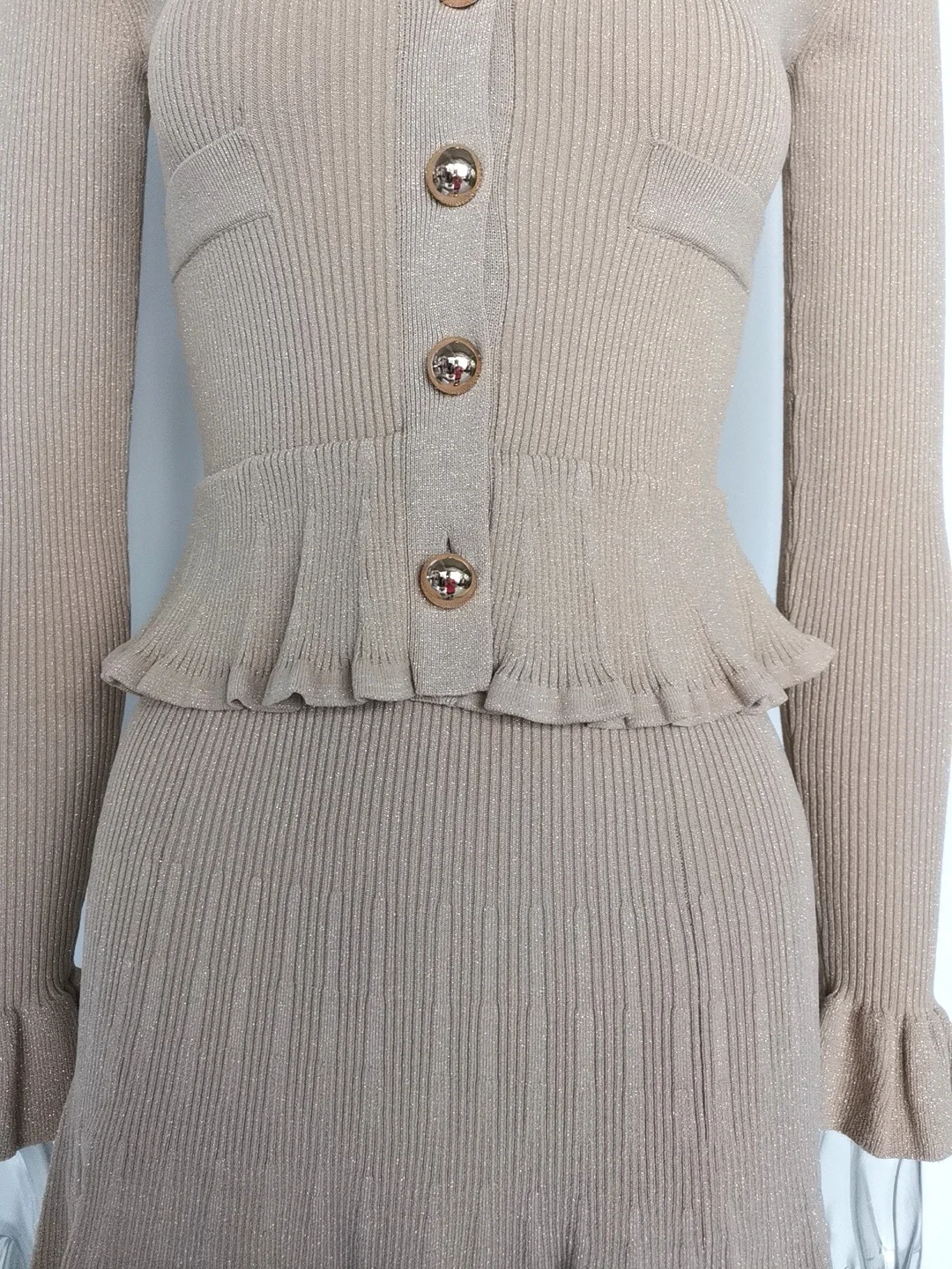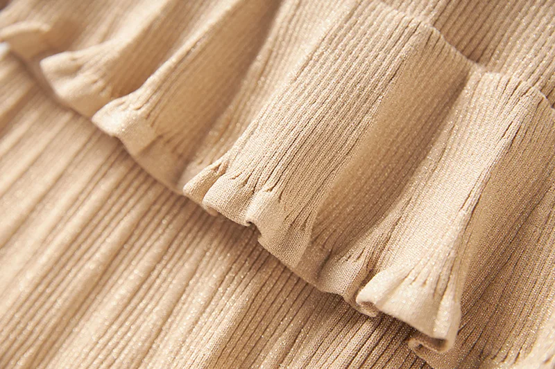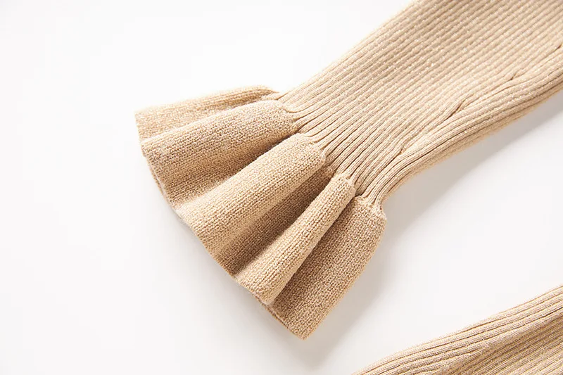 Elegant Knitted Dress Women Long Sleeve V-Neck Ruffles Single Breasted Dresses Party Fashion Office Lady Vestidos
