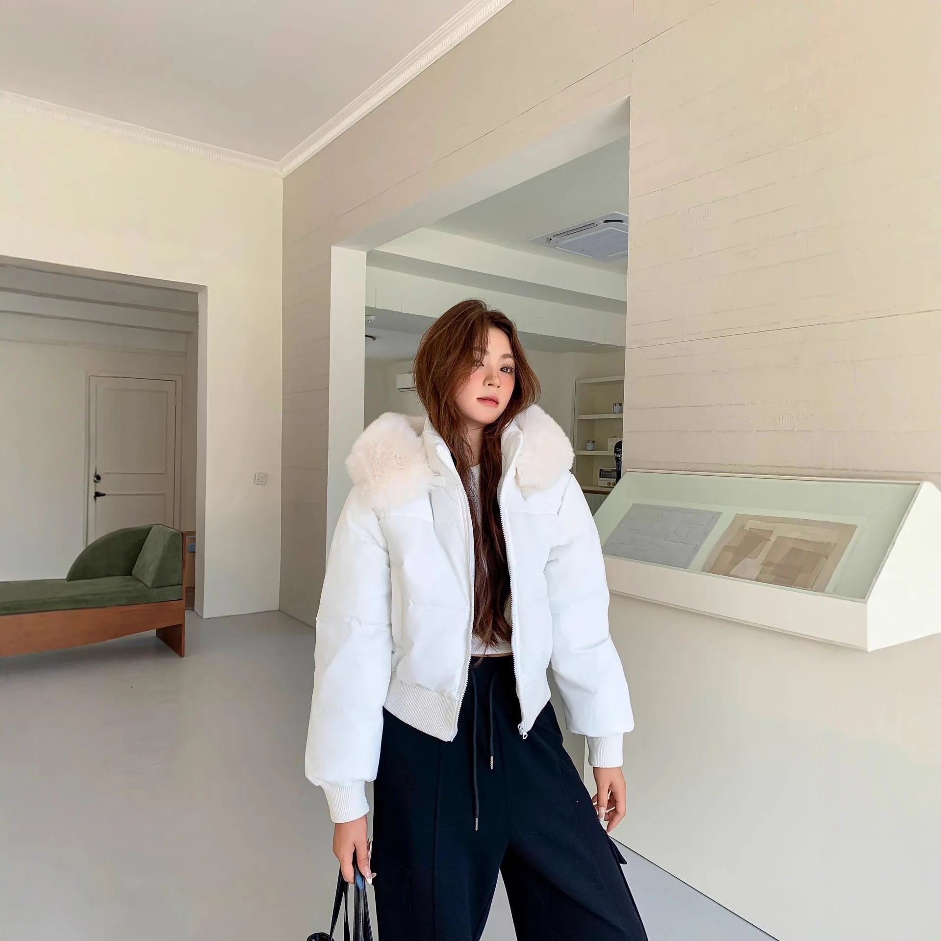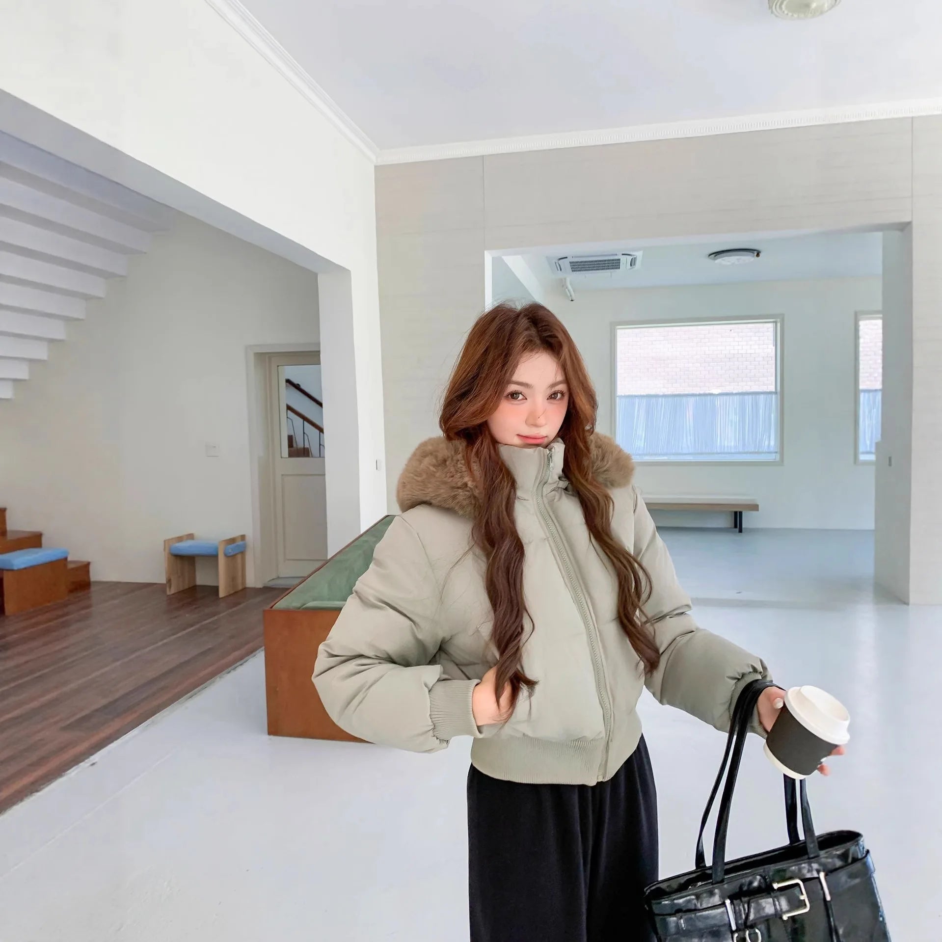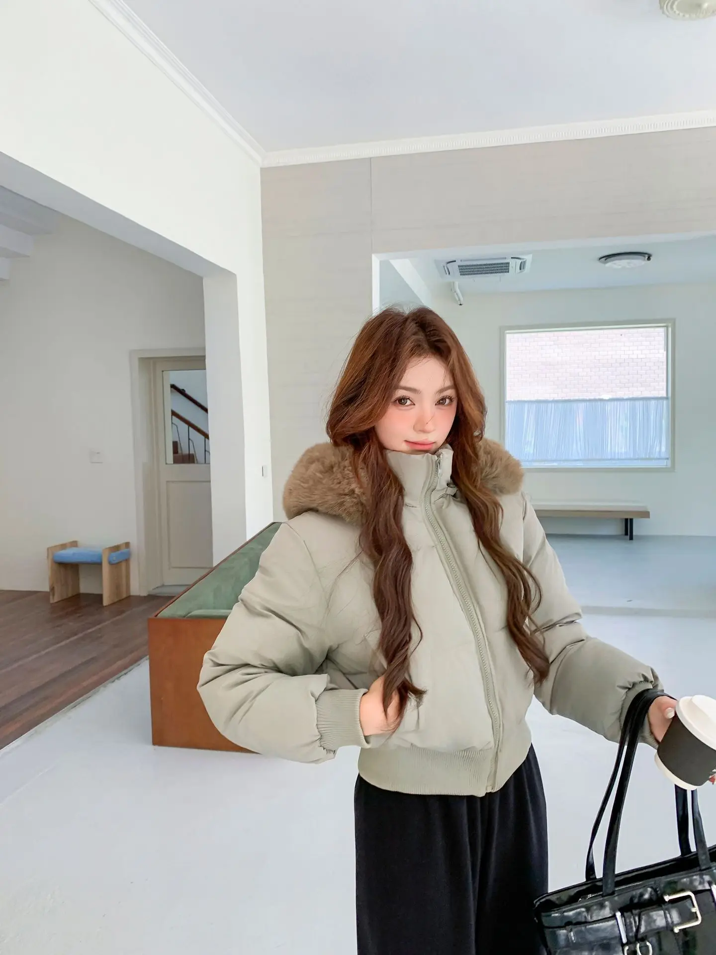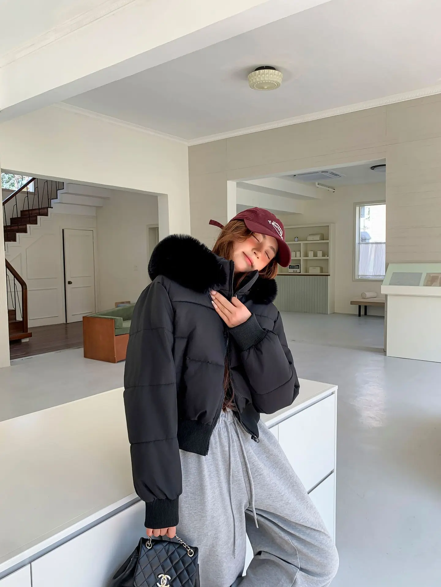 European American Woman 2025 New Fashion PU Leather Down Cotton Jacket Female Short Winter Thickened Bread Jacket Coat