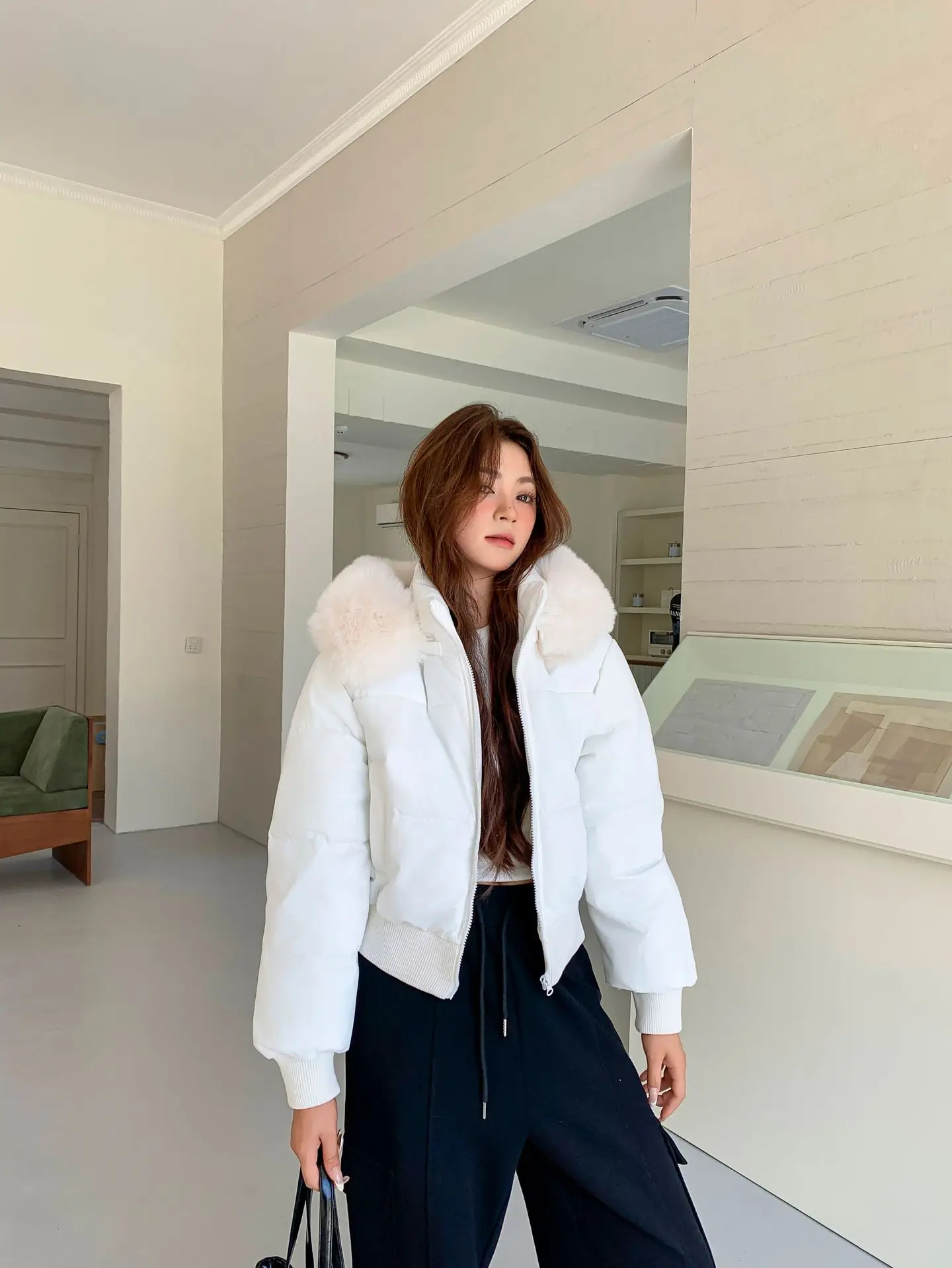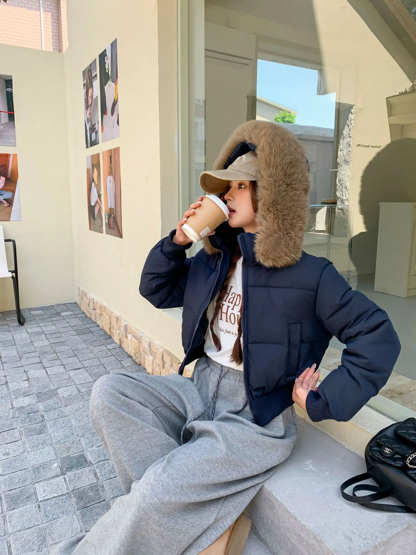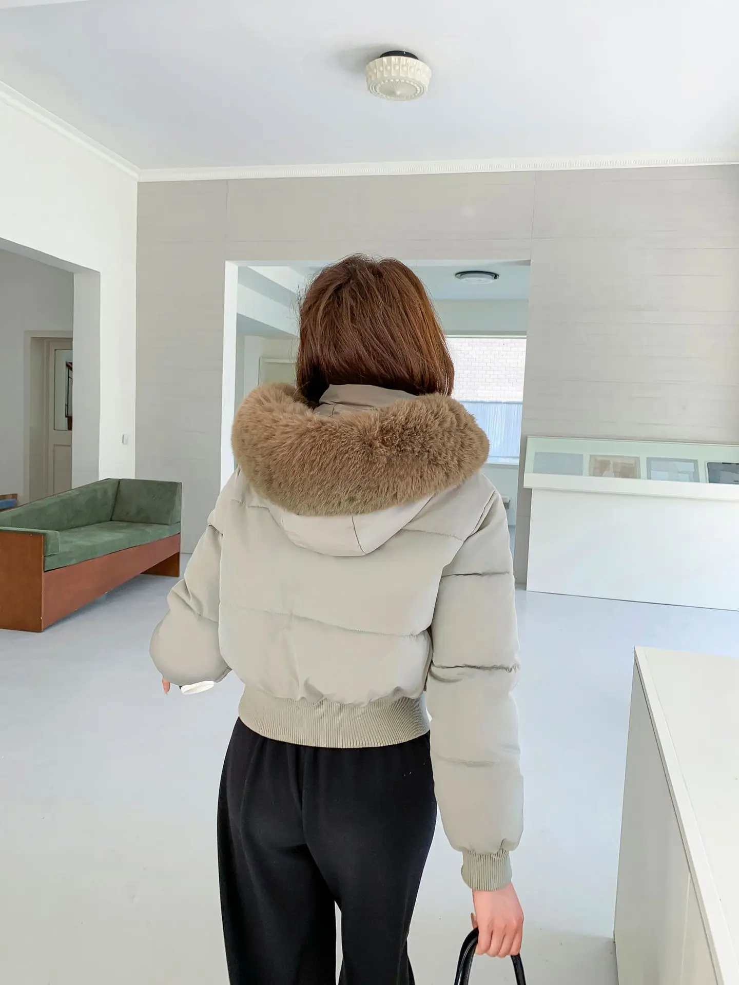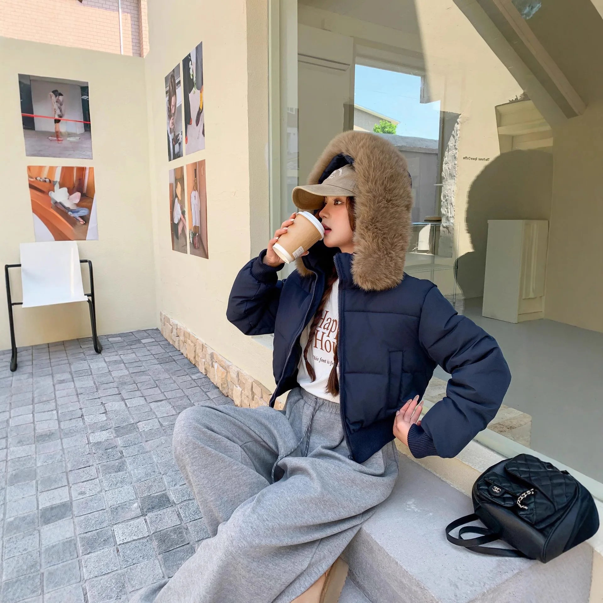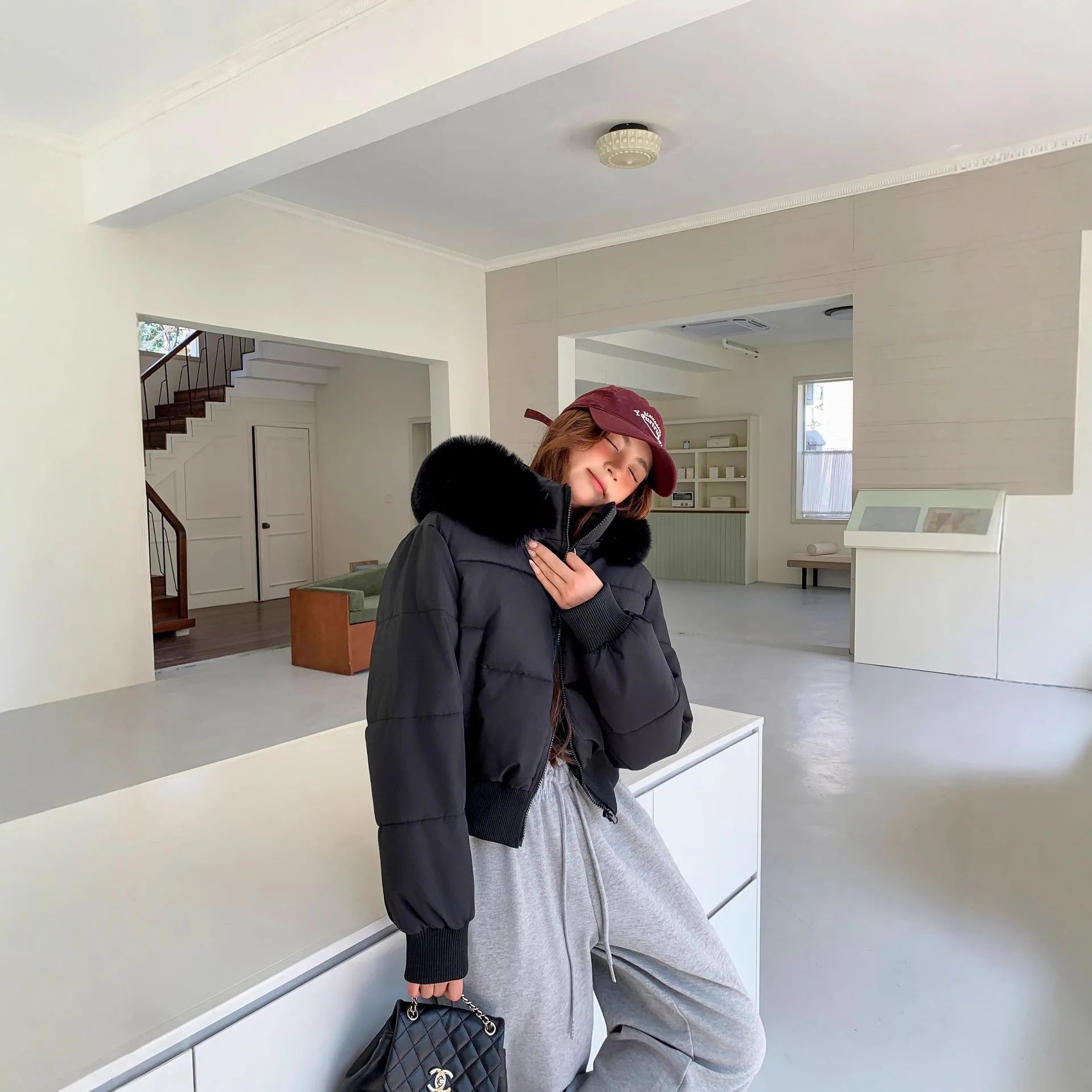 European American Woman 2025 New Fashion PU Leather Down Cotton Jacket Female Short Winter Thickened Bread Jacket Coat