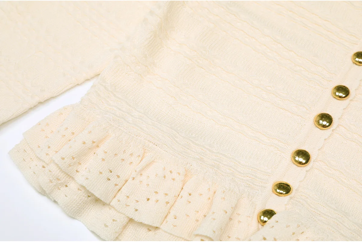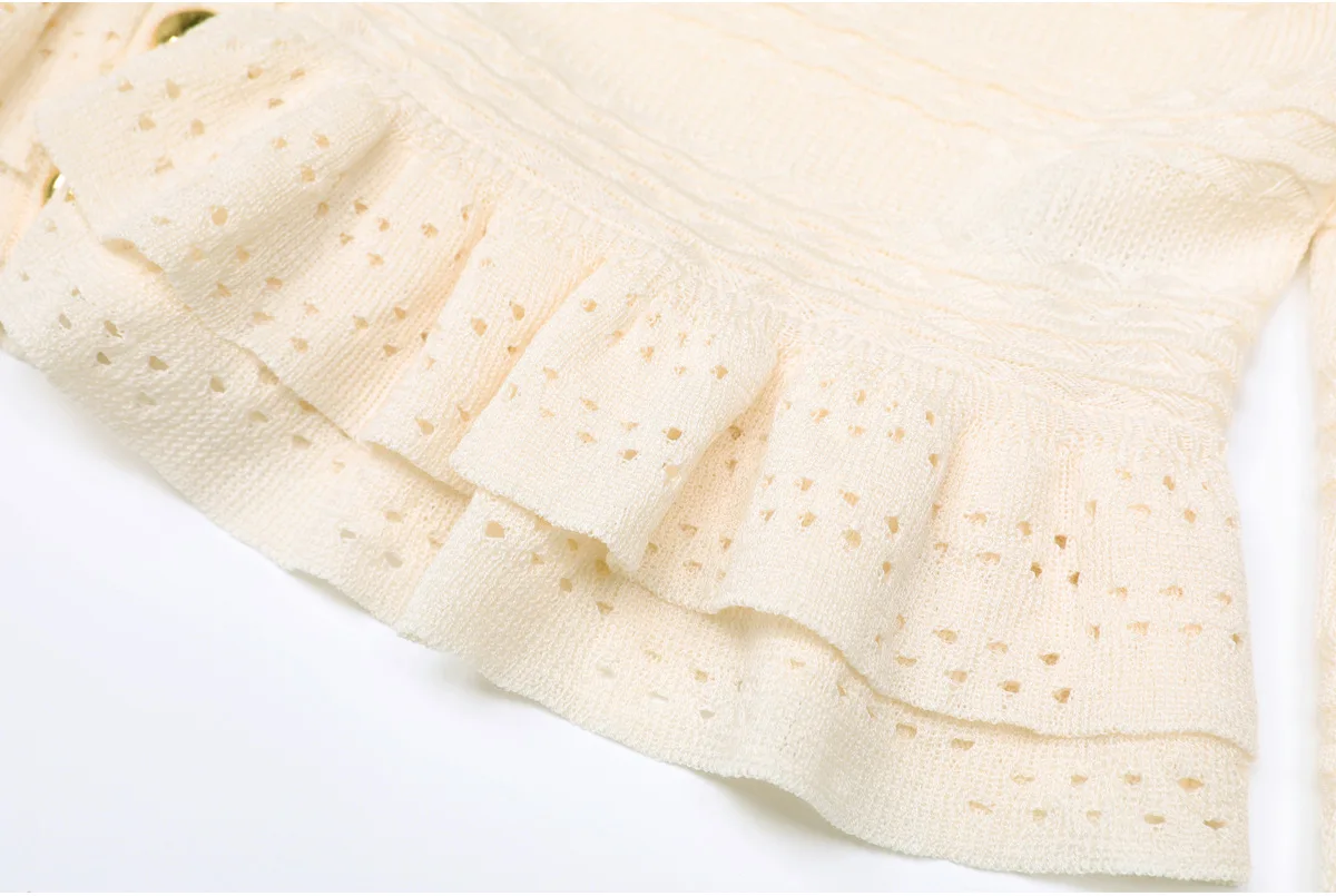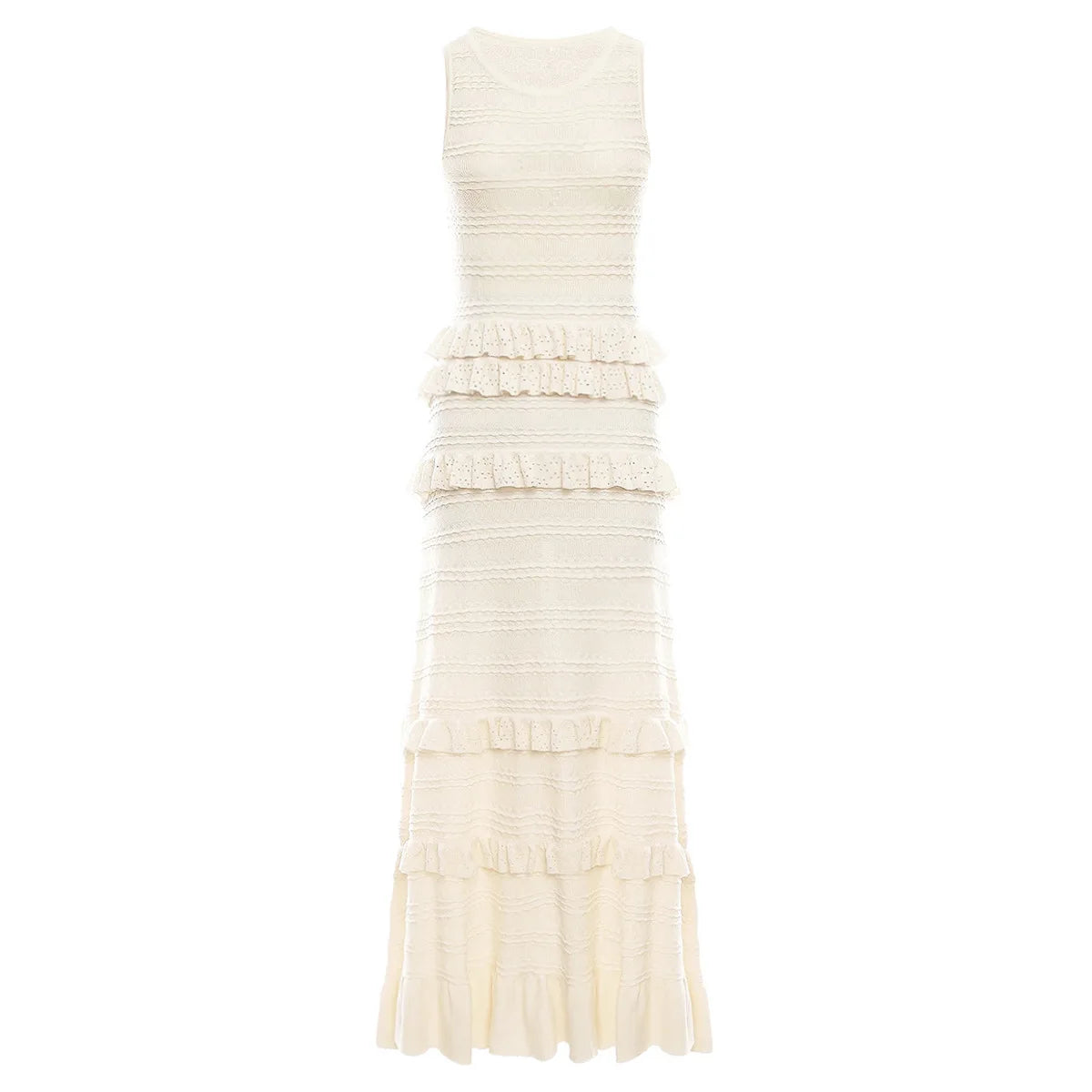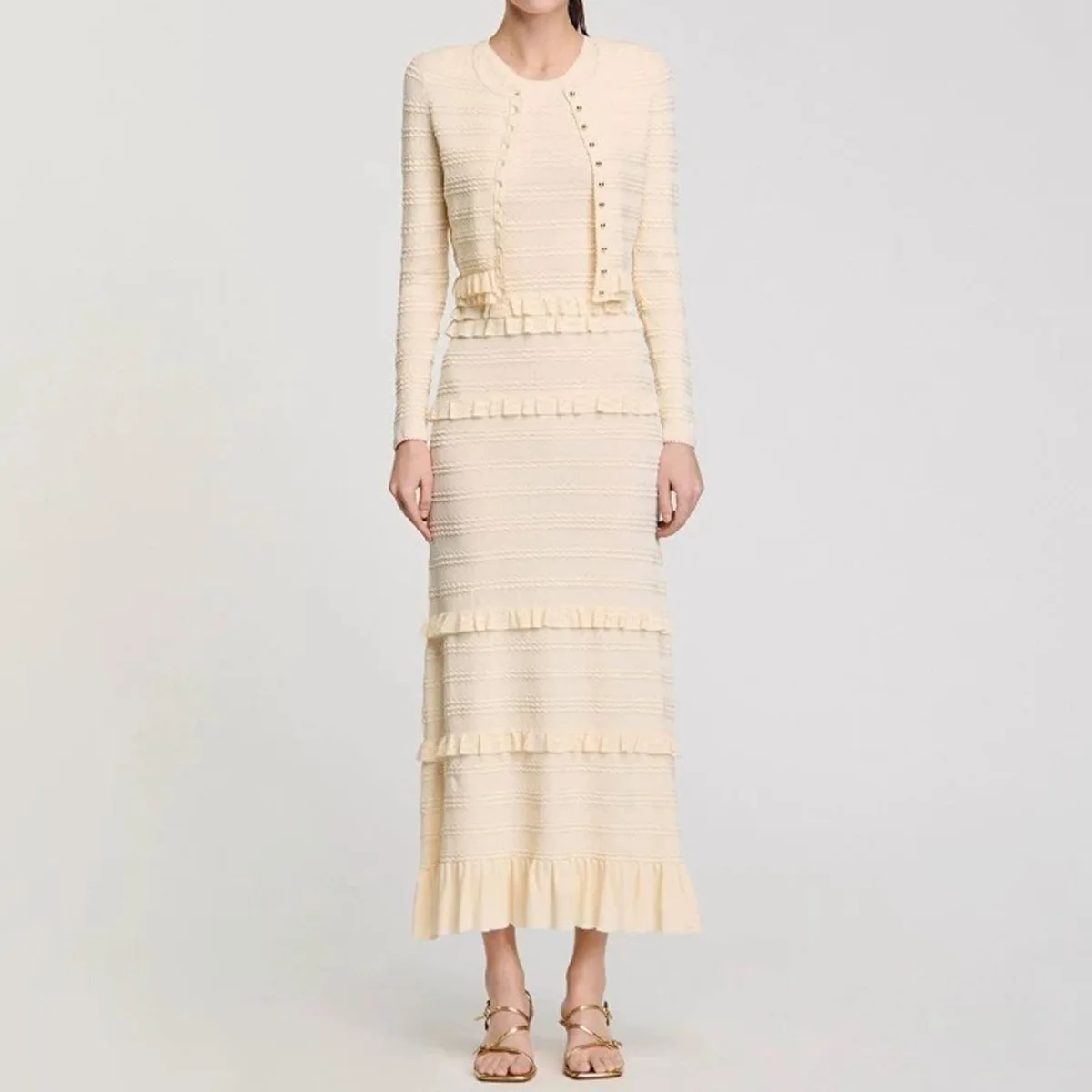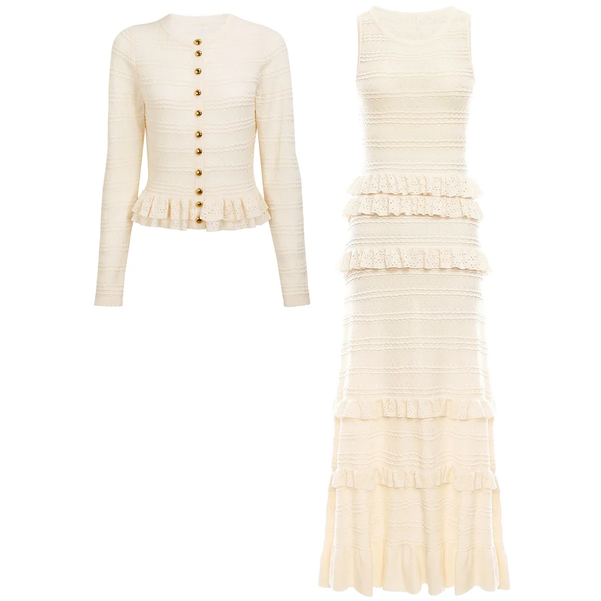 High Quality Women's Dress Suit Spring Summer New Ruffle Slim Fit Versatile Knitted Top+Sleeveless Dress Two Piece Set Female