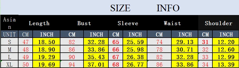 3. This is Asia size,t will be 1-2 smaller than EU/US size. pls do not refer to S/M/L/XL
