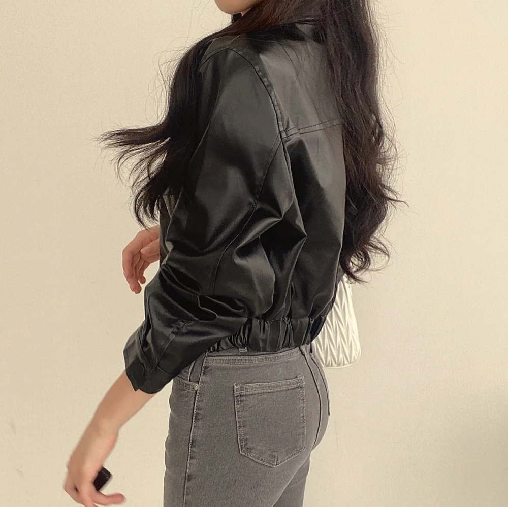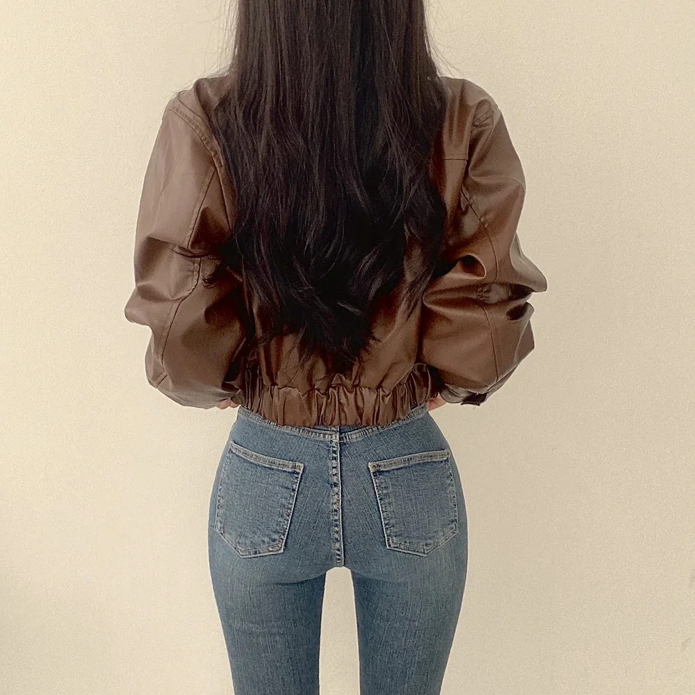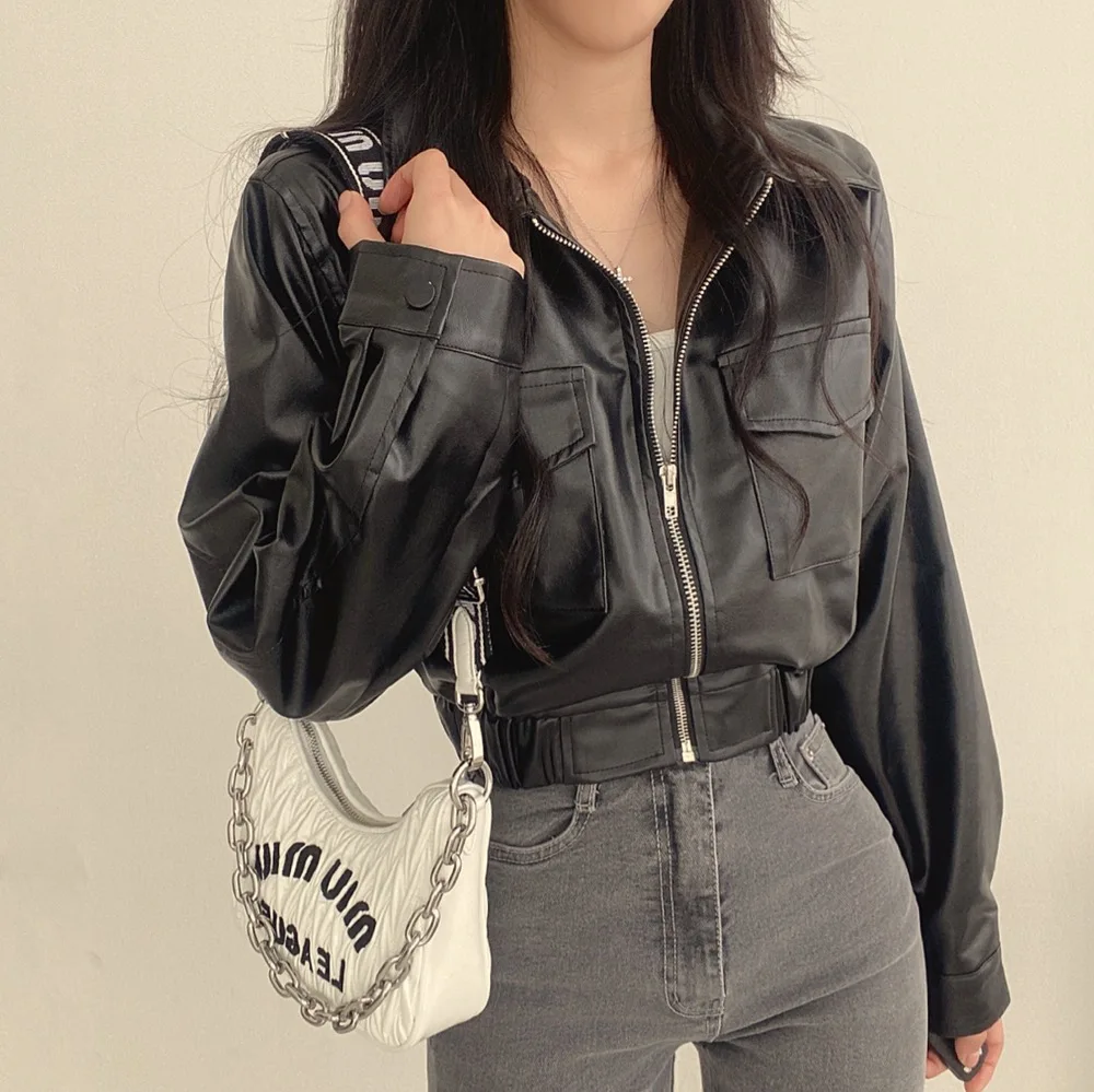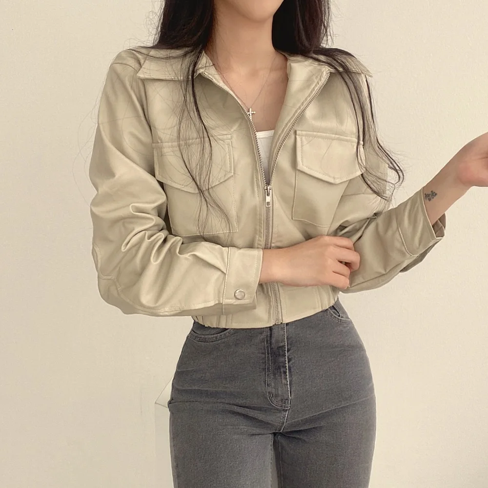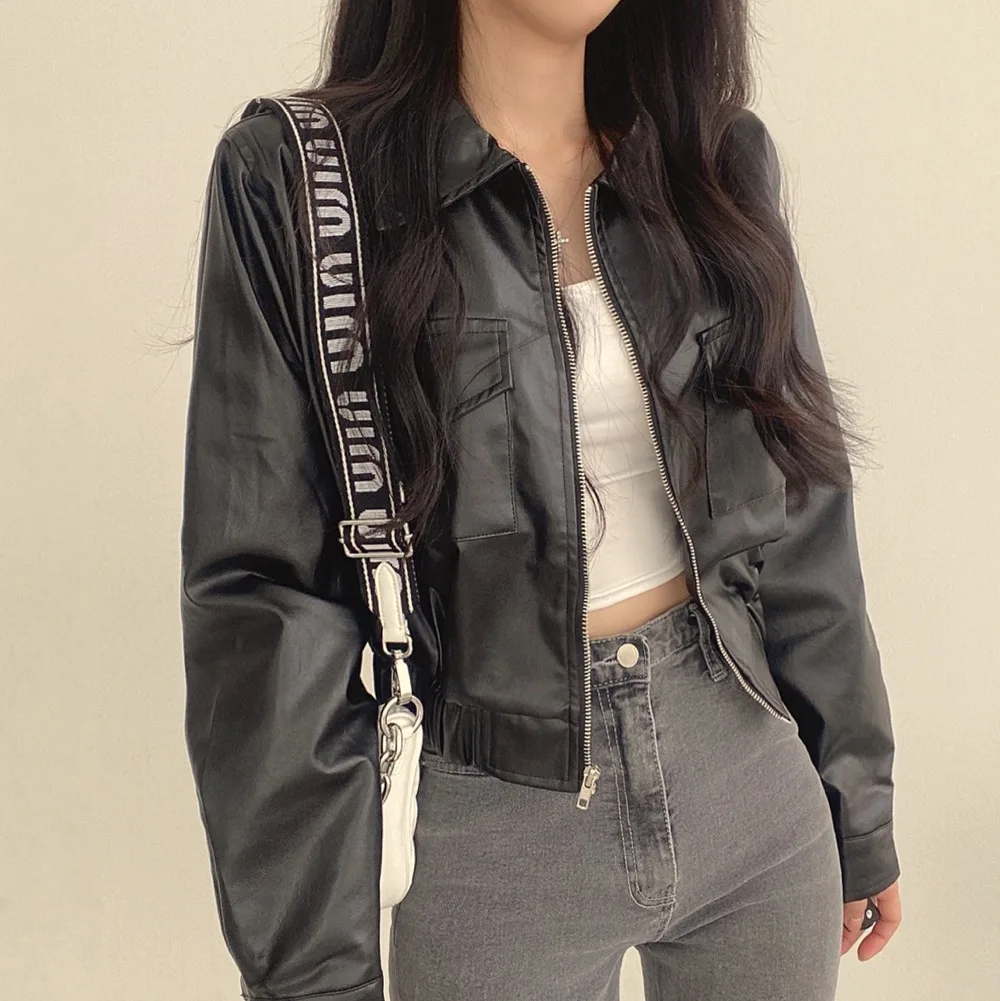 Loose Casual PU Leather Windbreaker Turn-Down Collar Long Sleeves Zipper Chic Moto Biker Coat 2025 Trendy Streetwear Jackets