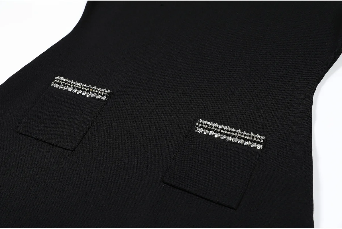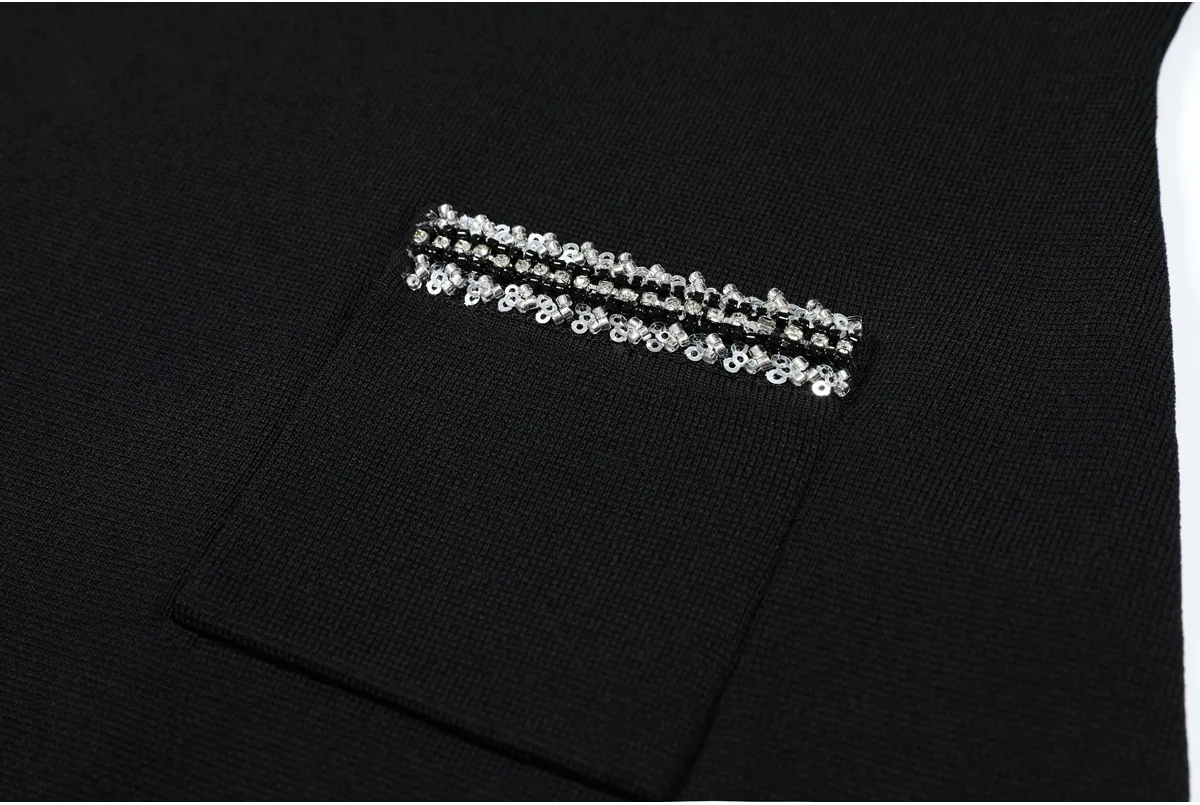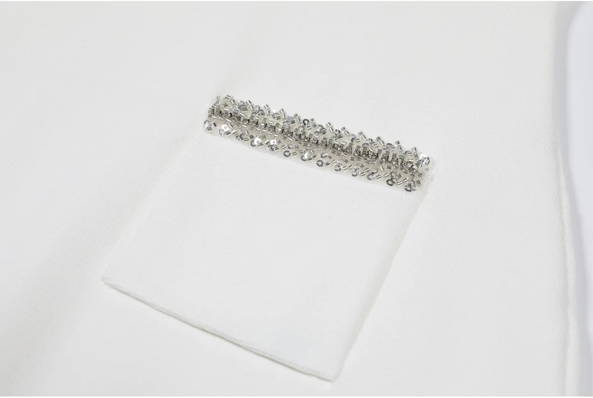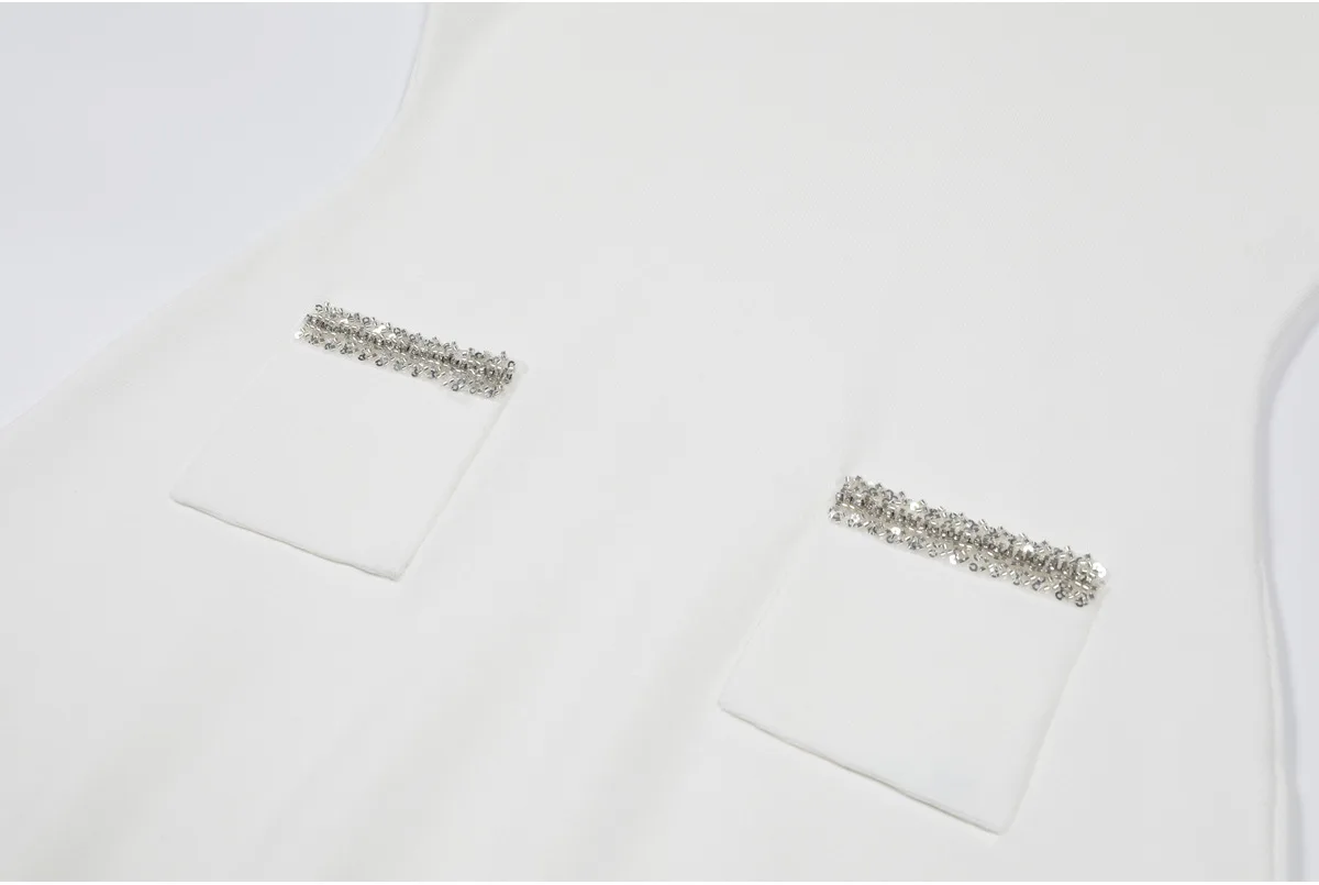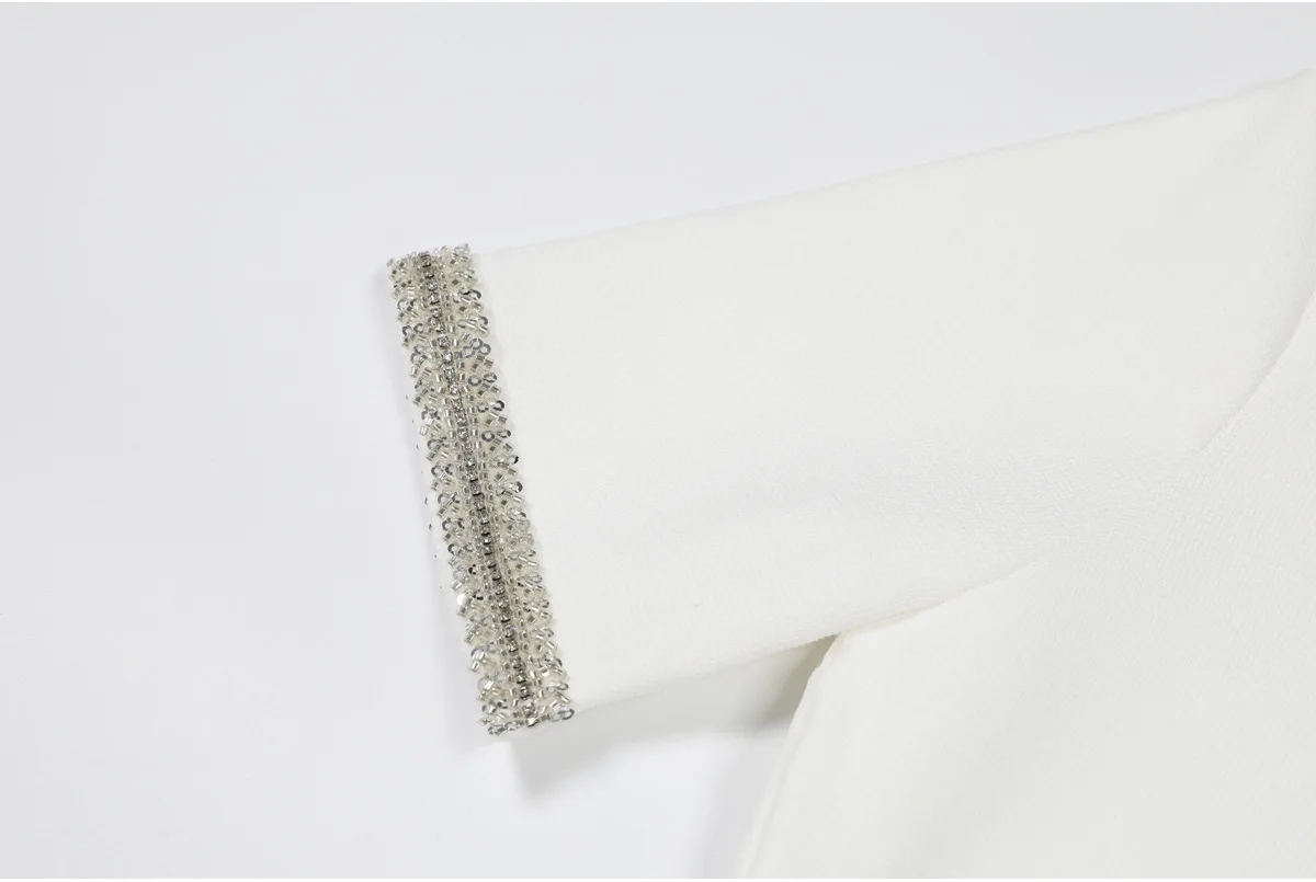 Luxury Diamond Beading Prom Dress For Women Summer New Office Lady Round Neck Short-Sleeve Slim A-Line Party Knit Dresses