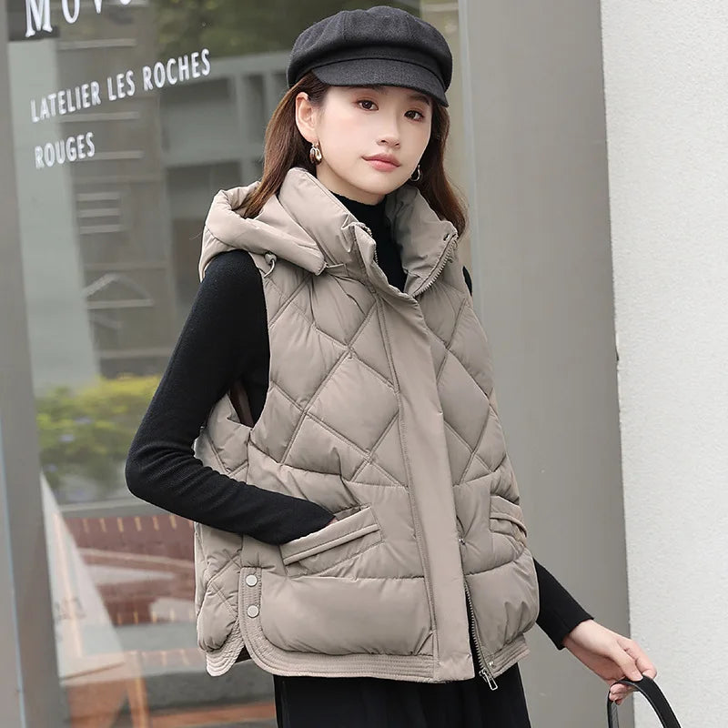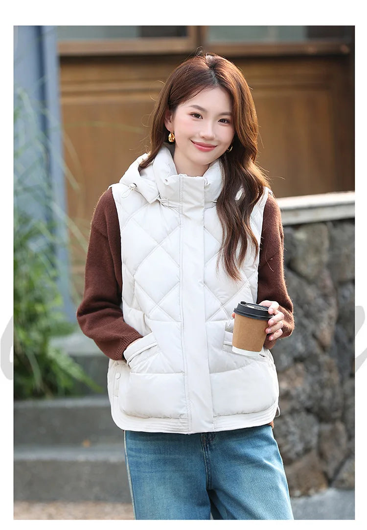 New Autumn Casual Loose Down Cotton Vests Women Stand Collar Short Sleeveless Coats Solid Zipper Waistcoat Winter Warm Vest