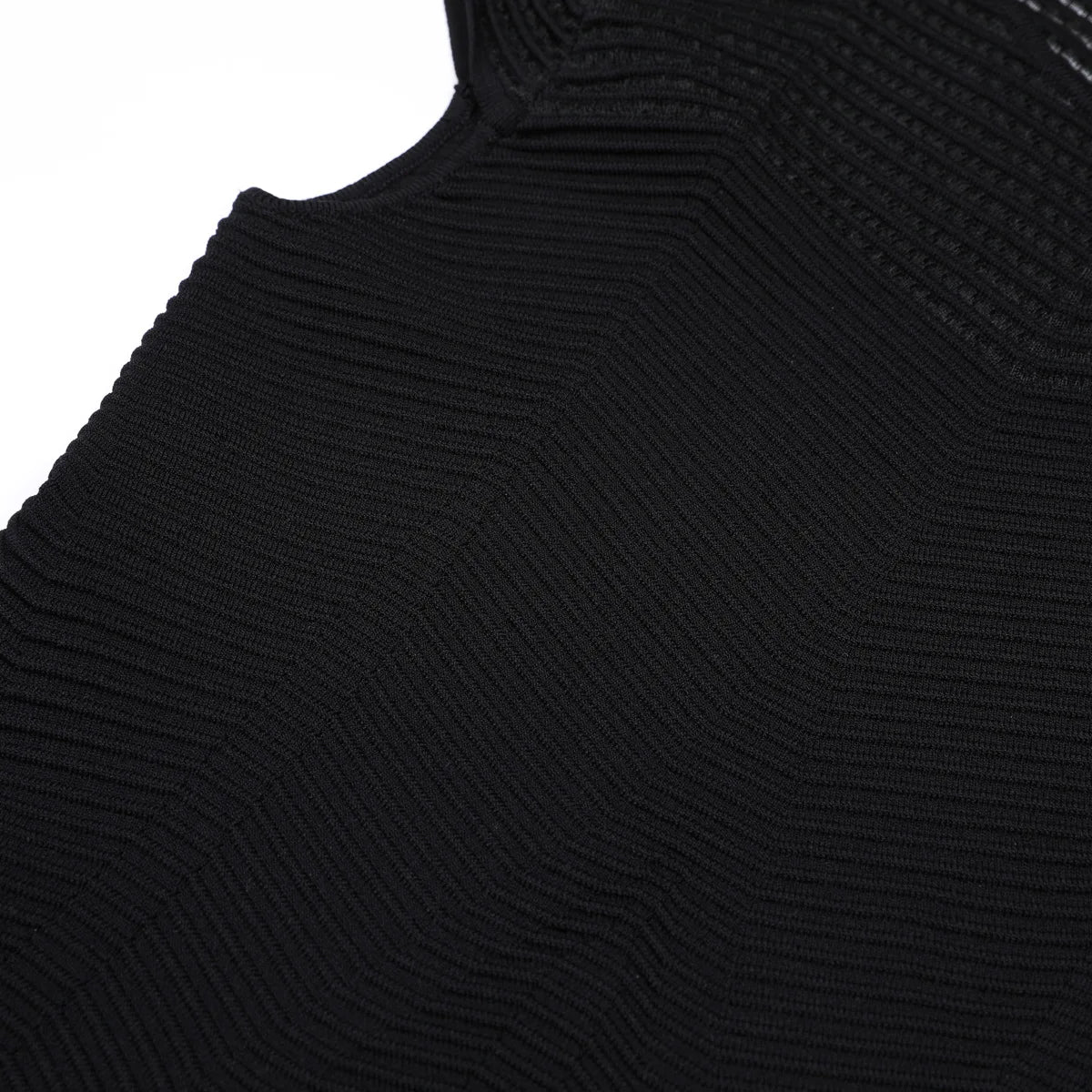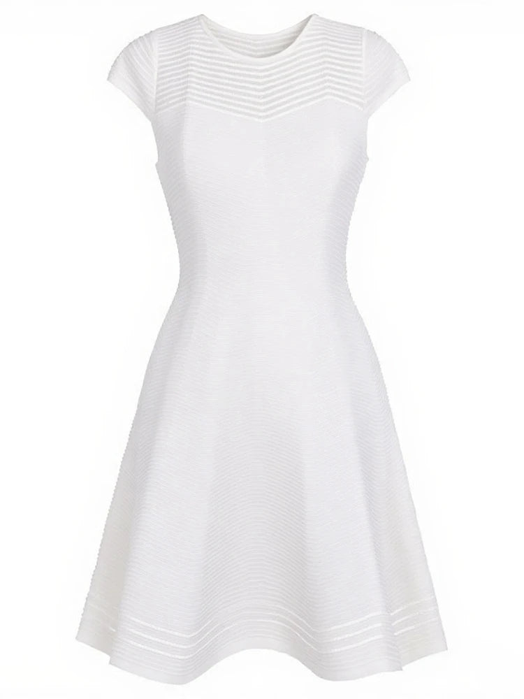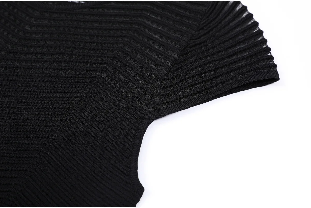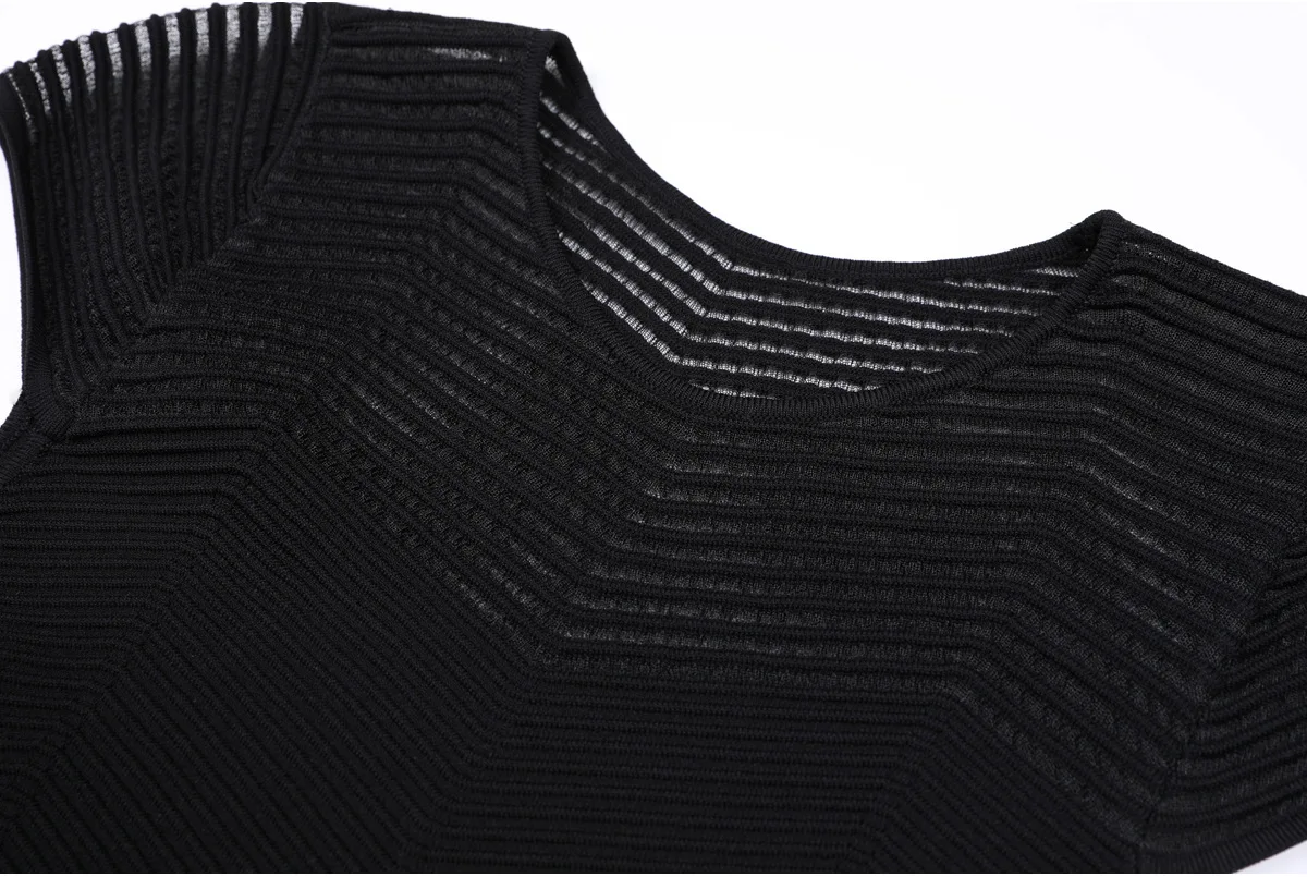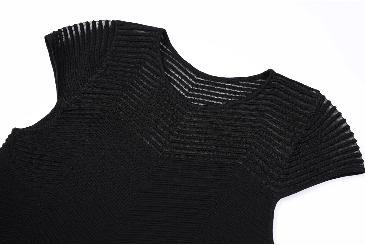 New Summer Women's Hollow Out Knitting Dress Sweaters 2025 Elegant O Neck Solid Black Short Sleeved Party Casual Dresses
