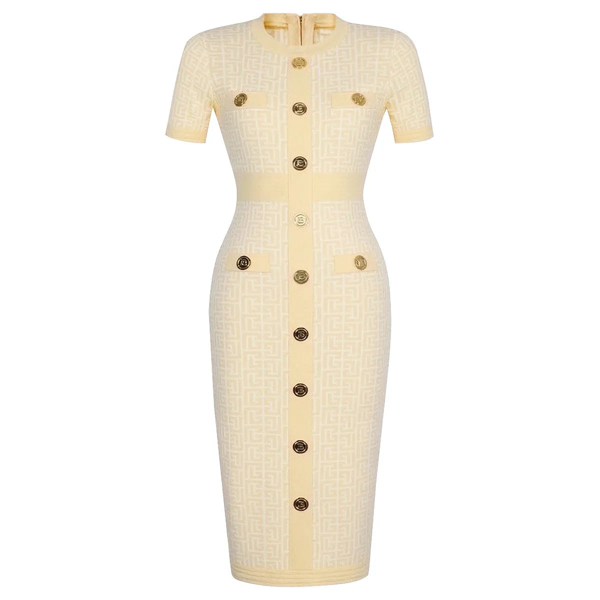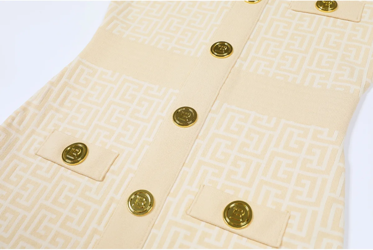 Office Lady Dress O Neck Knitted Sleeveless Single Breasted Chic Elastic Waist Slim High Quality Knitted Dresses Female