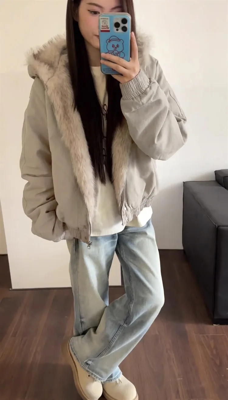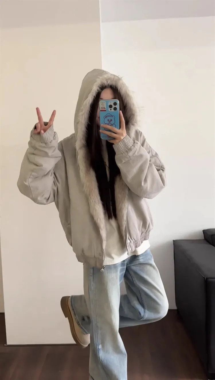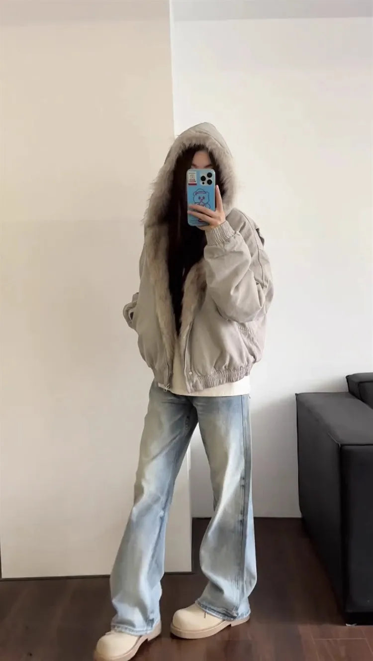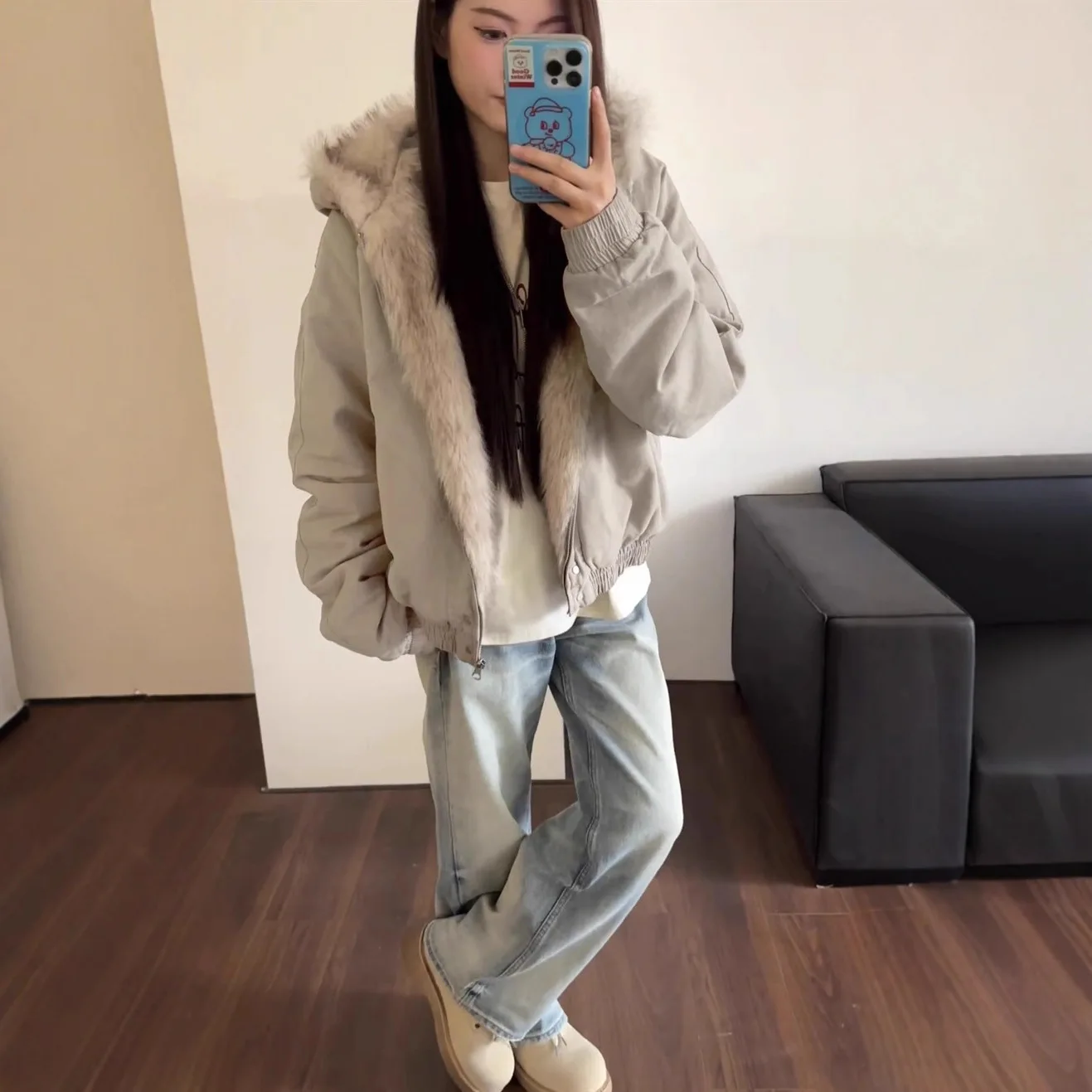 Thickened Faux Fur Collar Down Jacket Women Winter Workwear Couple's Outerwear American Style New Autumn Winter Cotton Coat