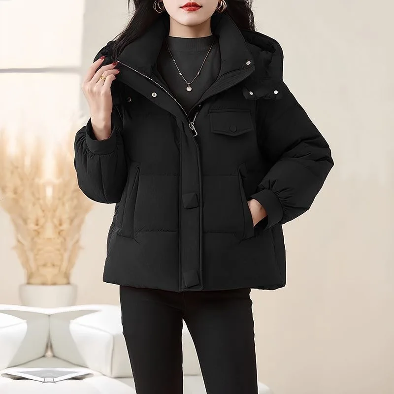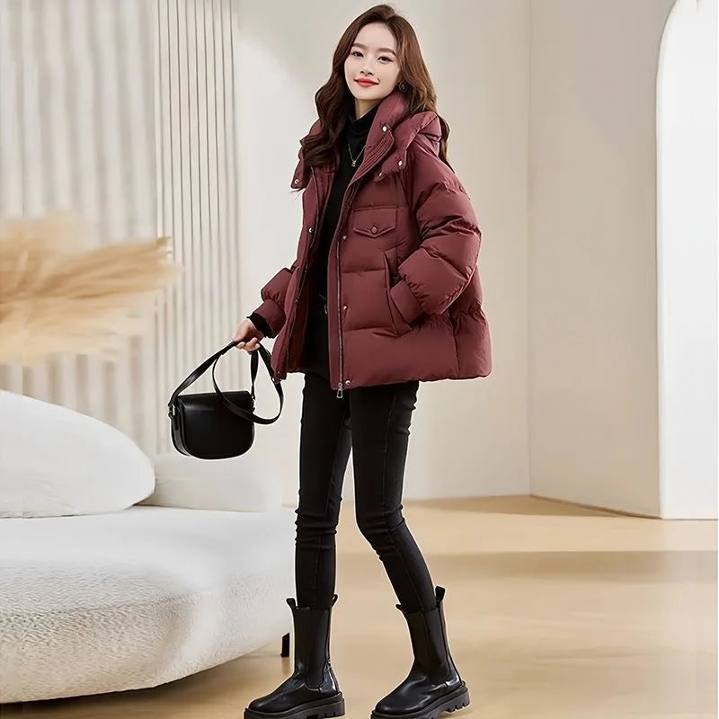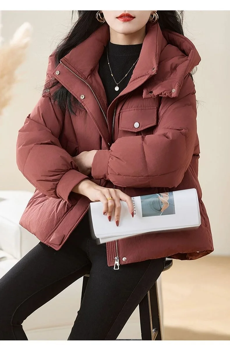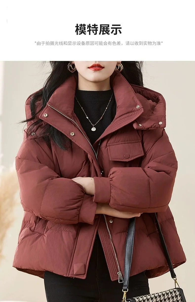 Winter 2025 Women's Solid Thickened Warm Hooded Down Cotton Jacket Solid Color High Quality Fashion Slim Short Bread Style