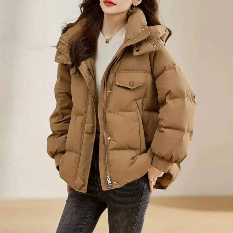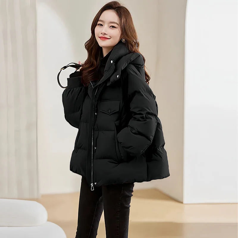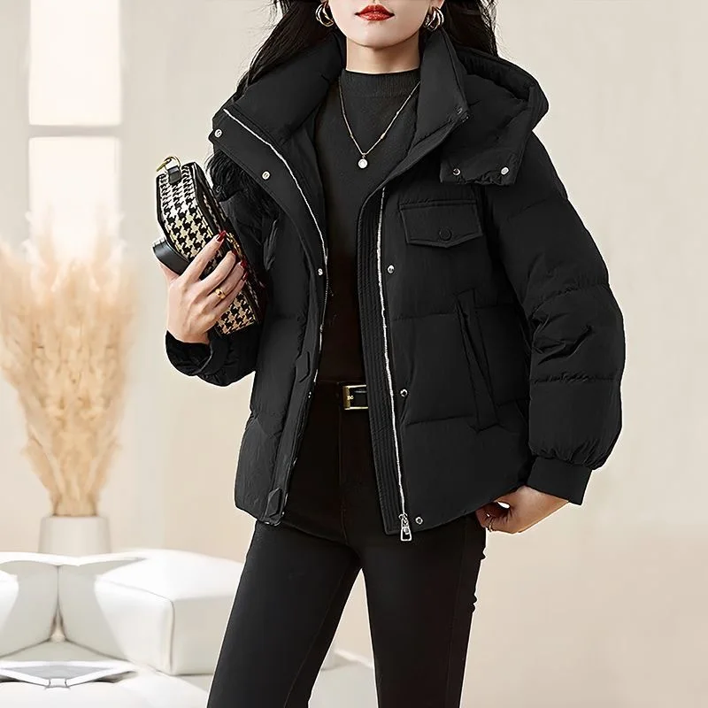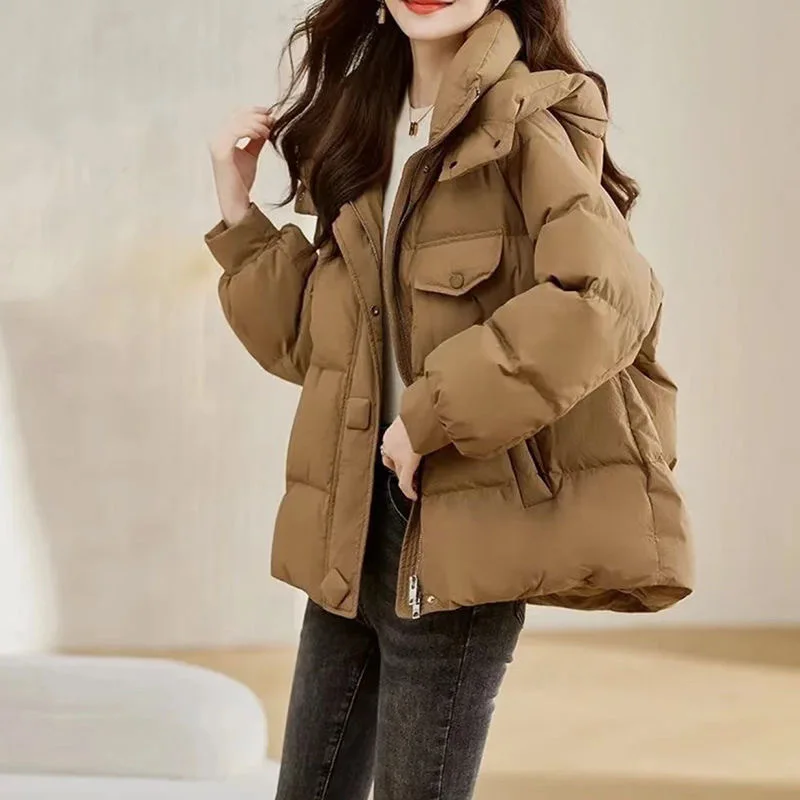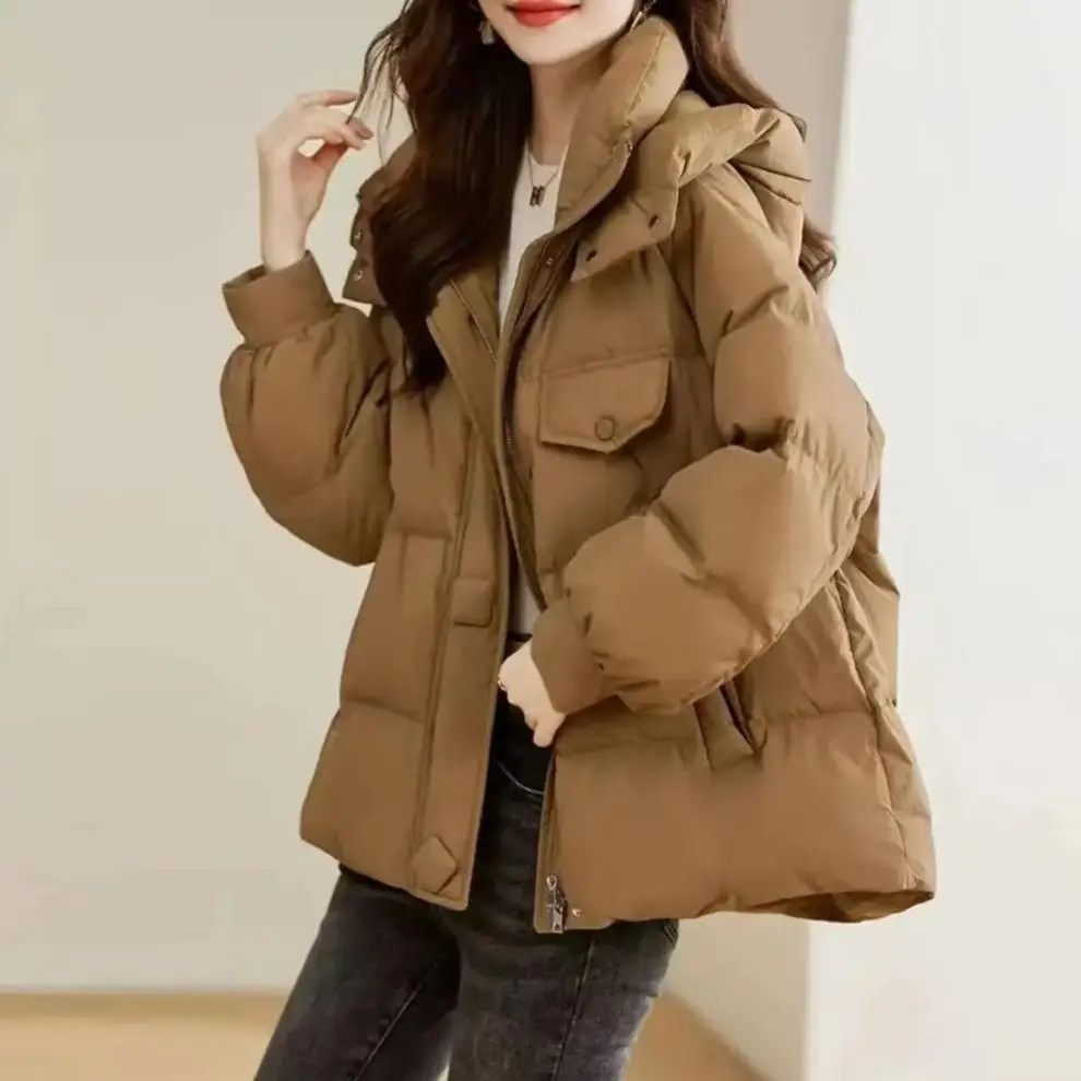 Winter 2025 Women's Solid Thickened Warm Hooded Down Cotton Jacket Solid Color High Quality Fashion Slim Short Bread Style