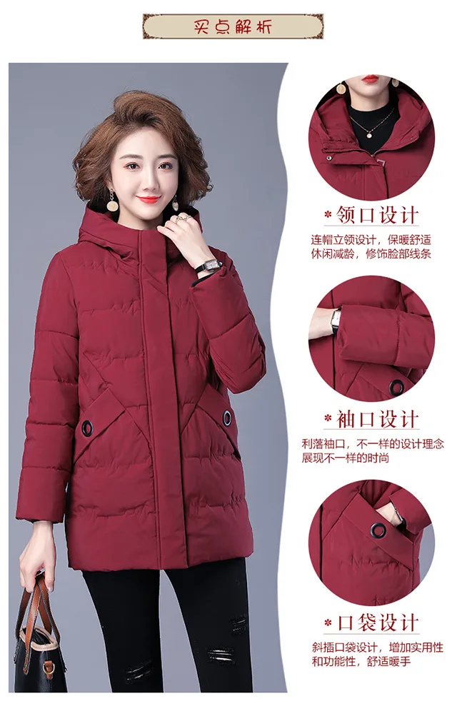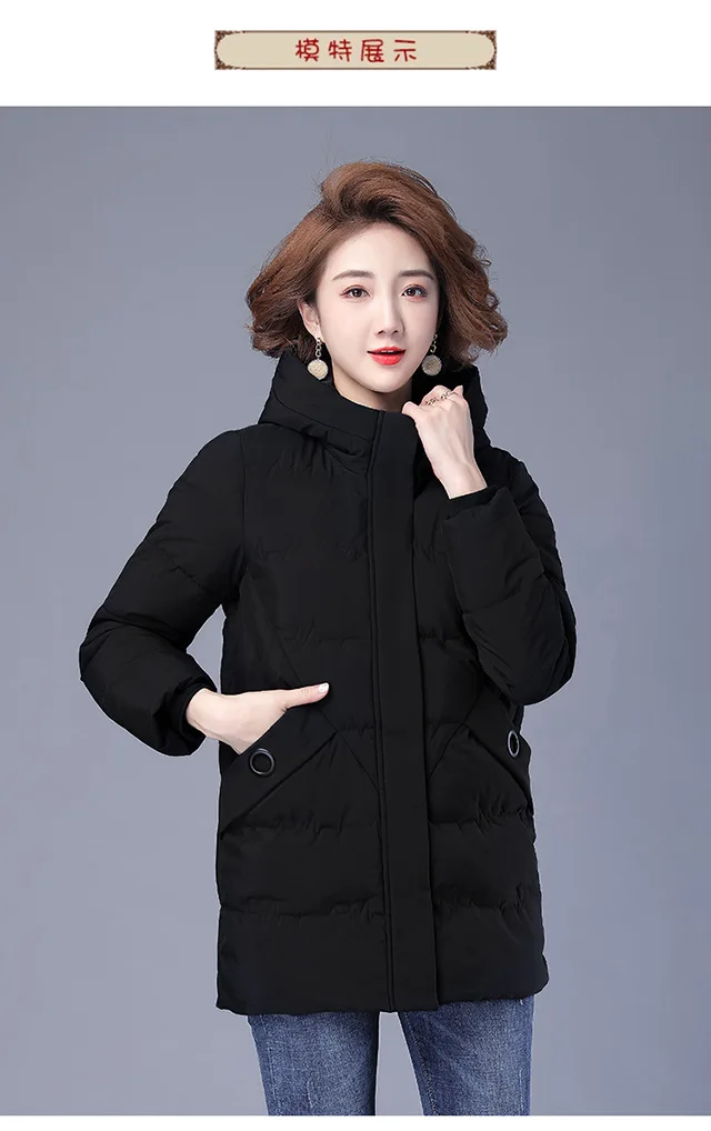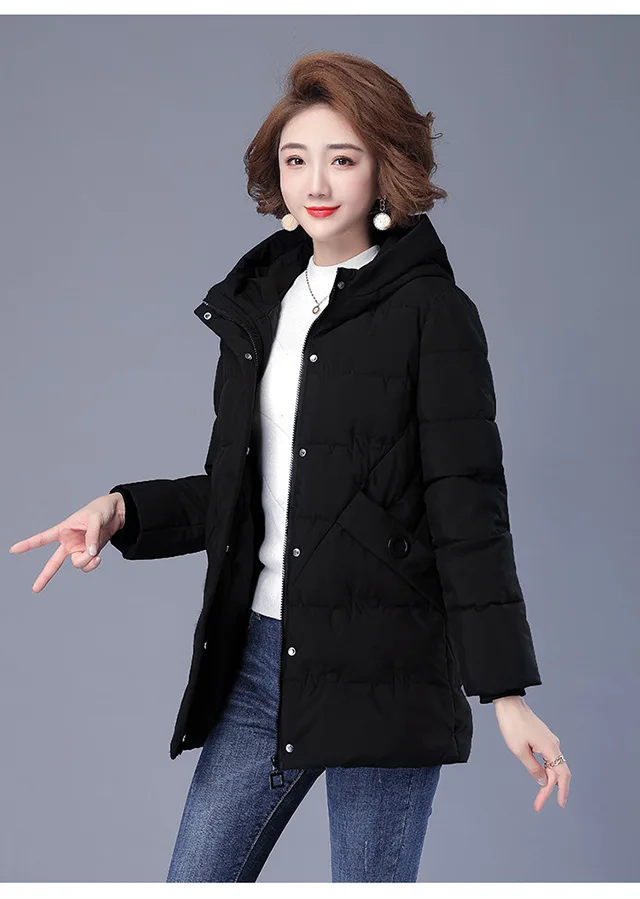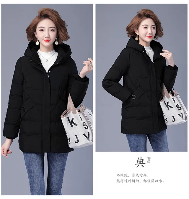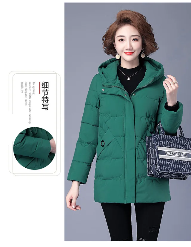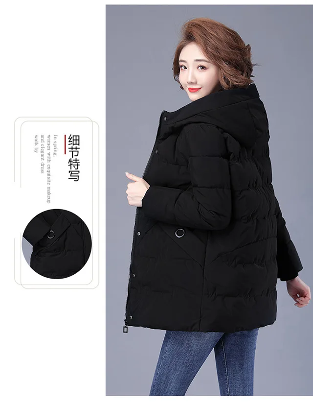 Winter Coat Women Hooded Down and Cotton Jacket Medium and Long Styles Loose and Comfortable Thin Keep Warm Temperament