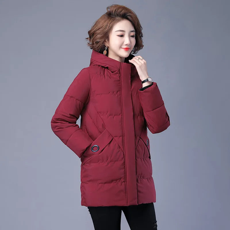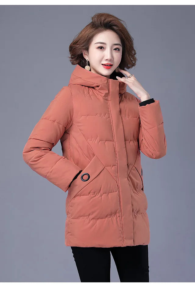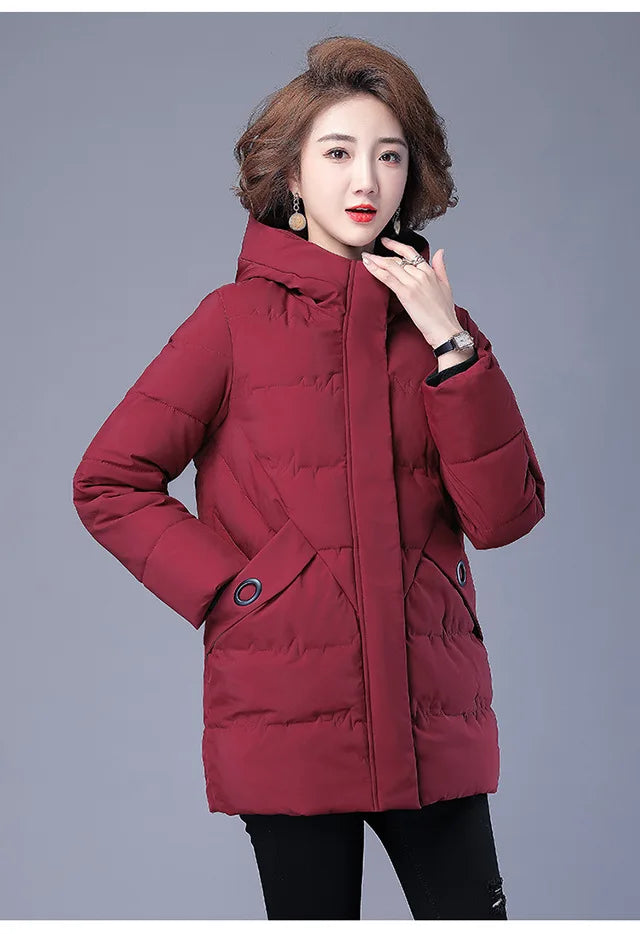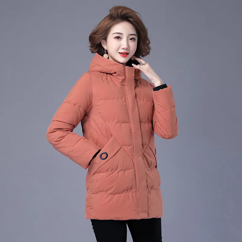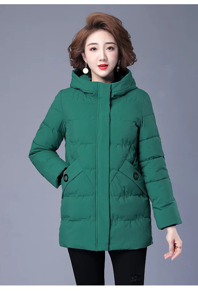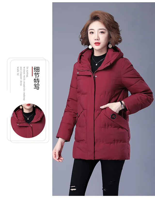 Winter Coat Women Hooded Down and Cotton Jacket Medium and Long Styles Loose and Comfortable Thin Keep Warm Temperament