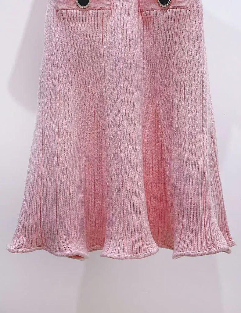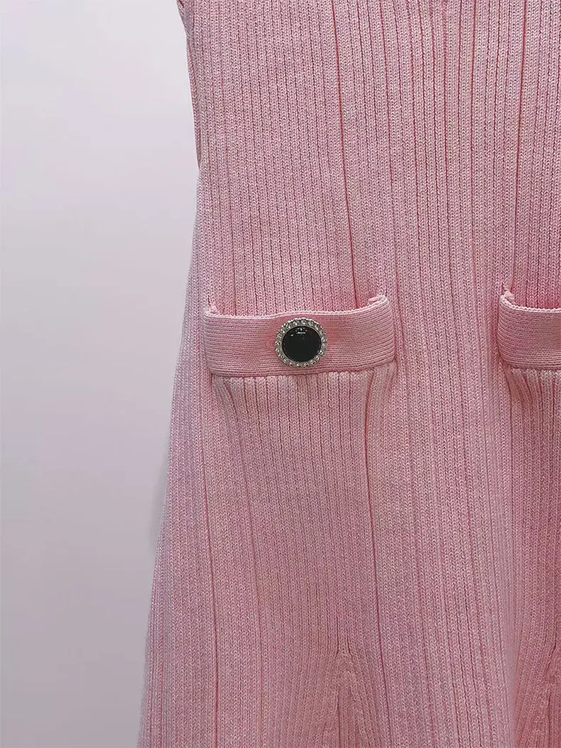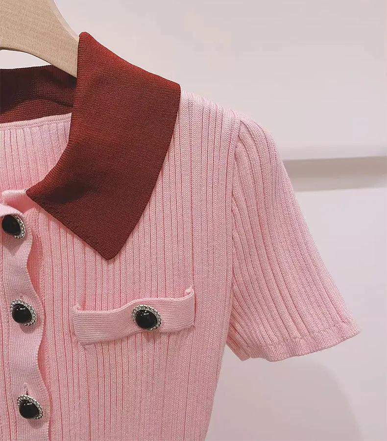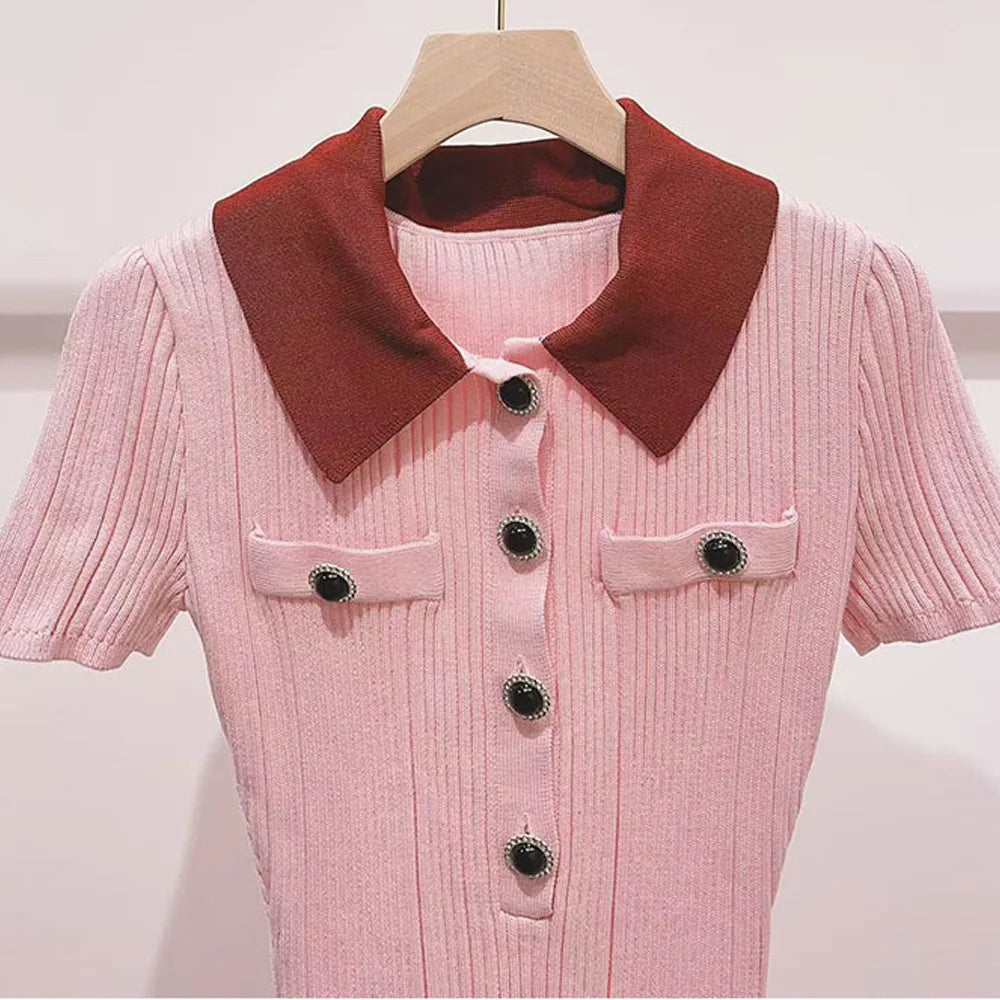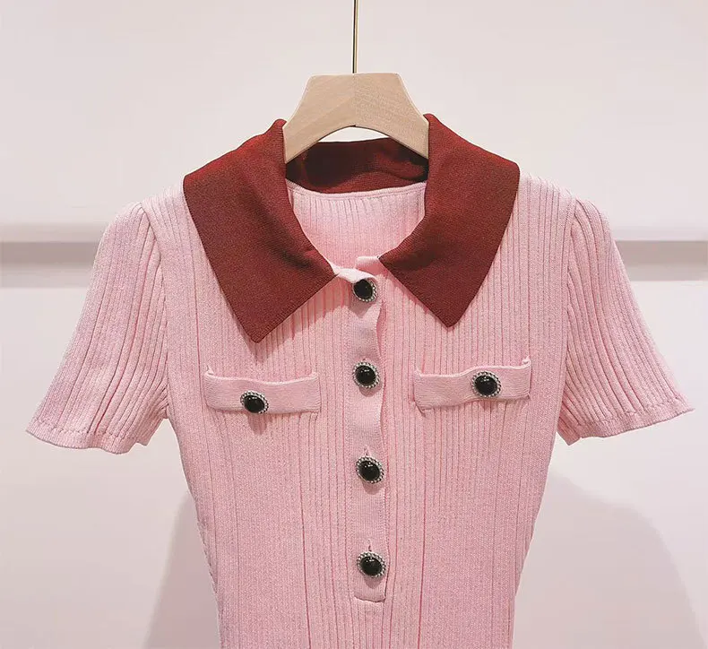 Woman 2025 Summer New Fashionable Casual Solid Color Commuter Button Collar Short Sleeve Knitted Short A-Line Dress Female