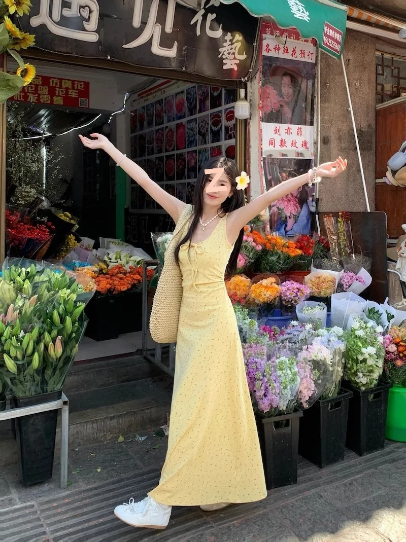Woman 2025 Traf Guangdong Regular Middle Age Print Appliques Spandex Dresses 2025 Traffic On Sale