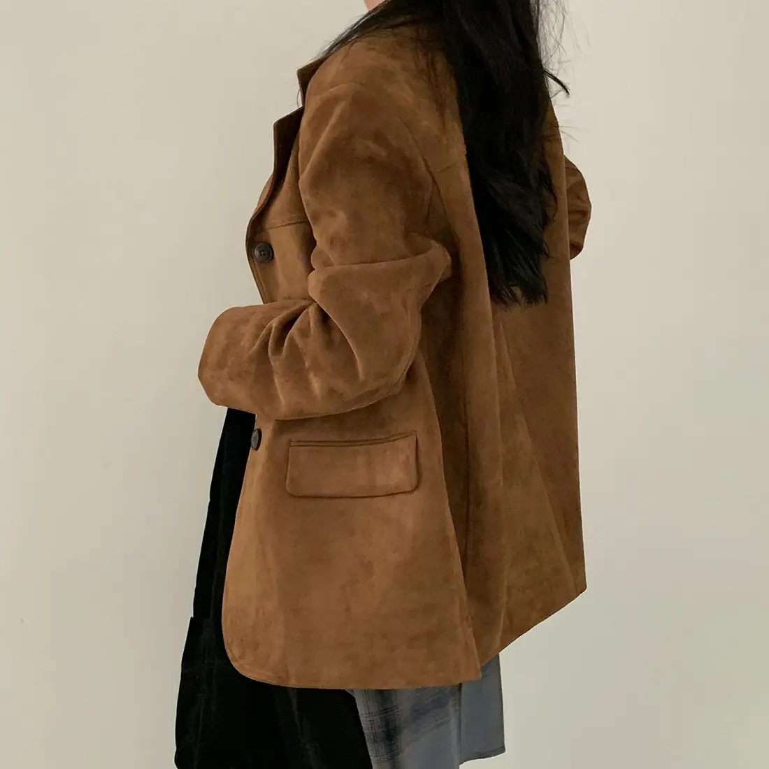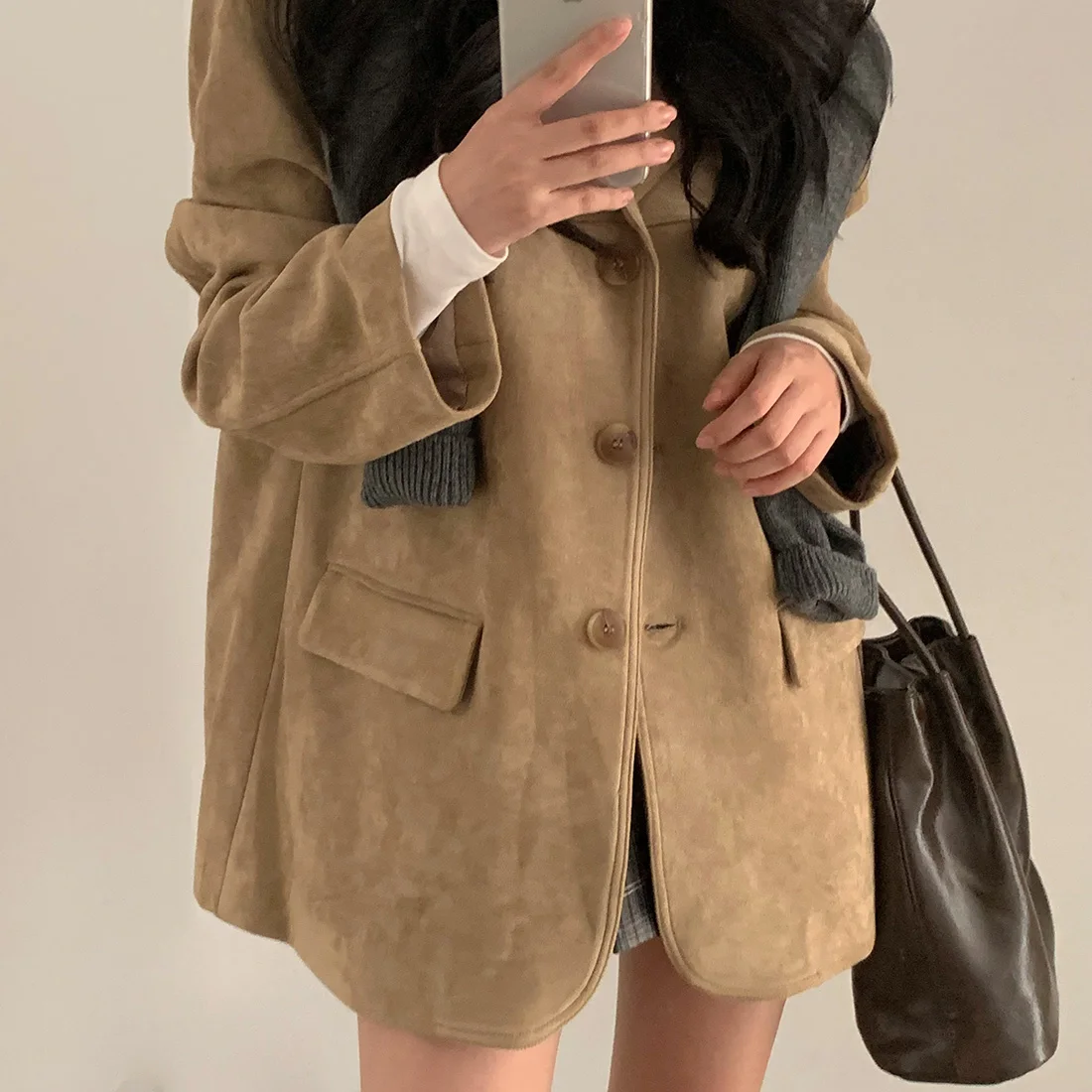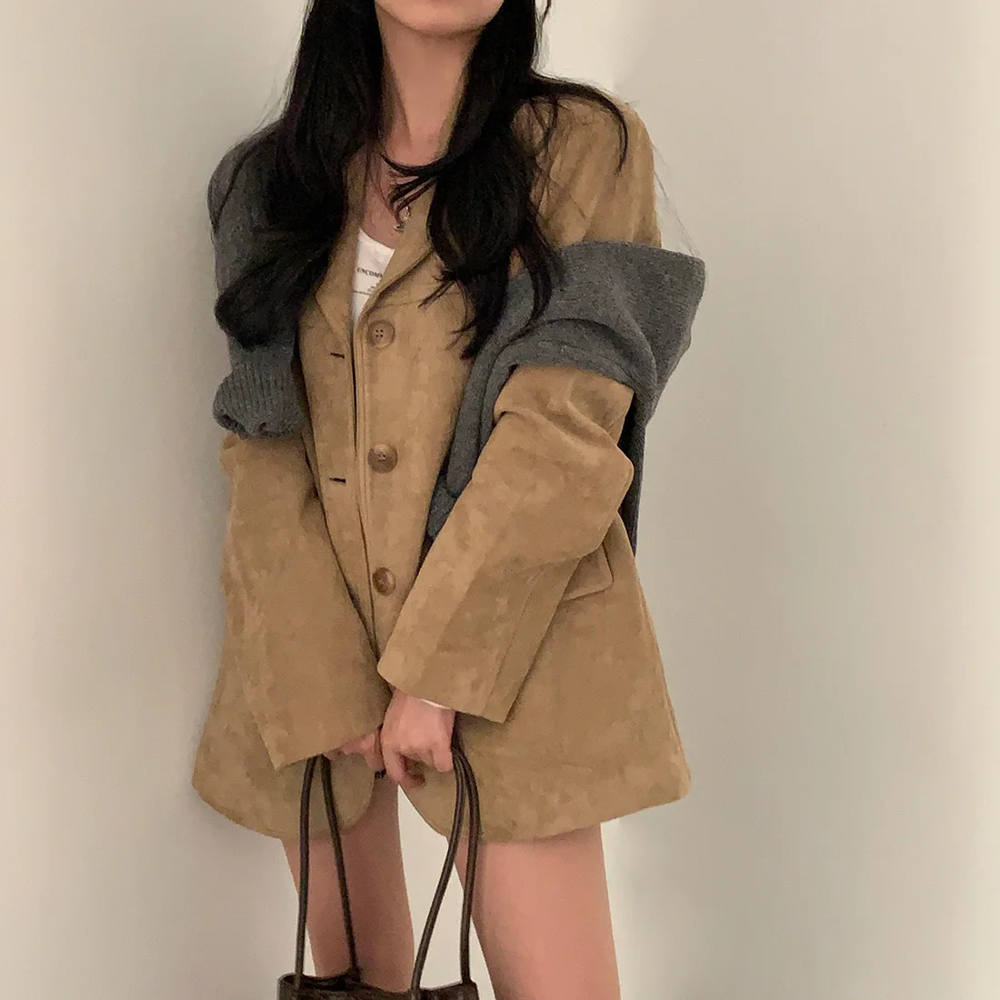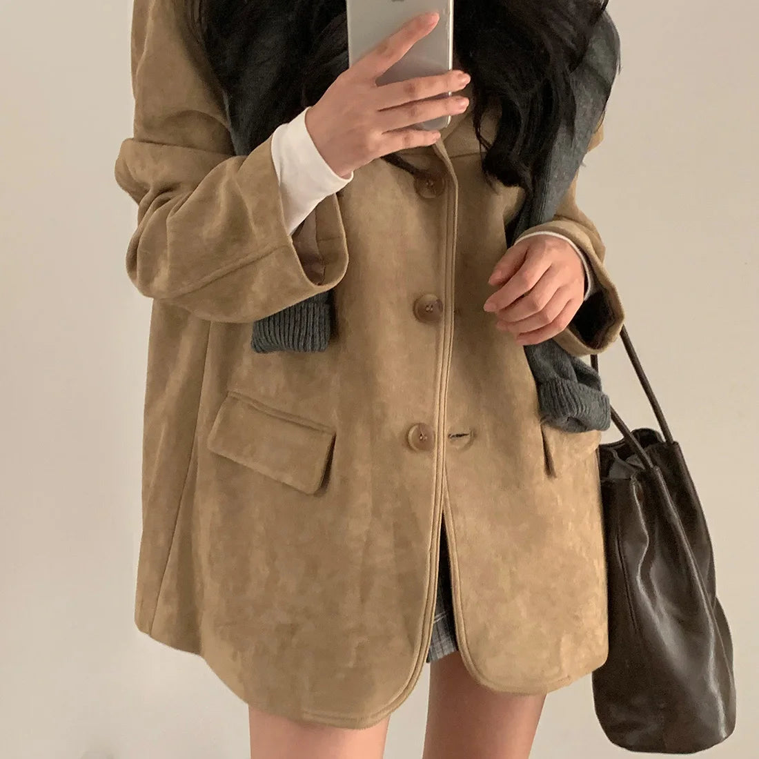 Woman Winter Turn-Down Collar Coat Solid Color Pockets Loose Single-Breasted Jacket Streetwear Outerwear Female Cardigan Top