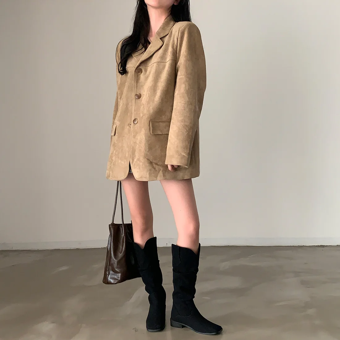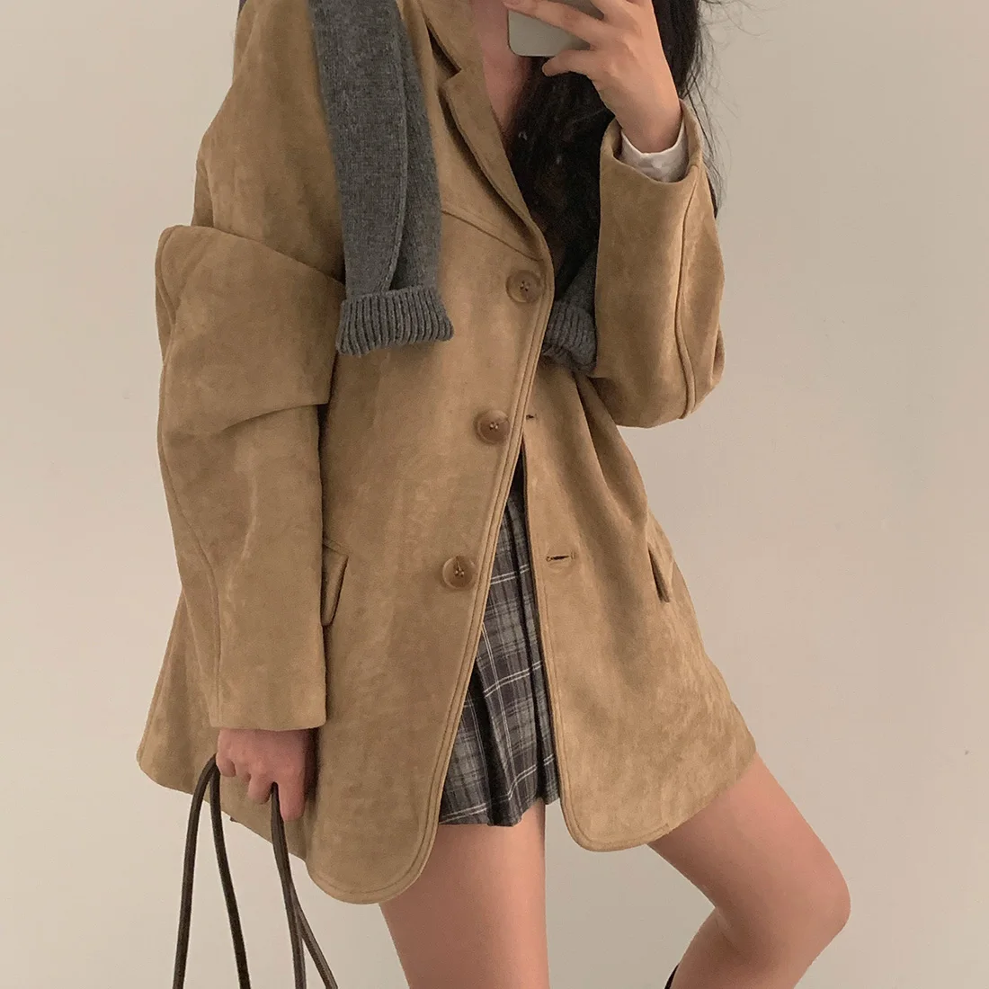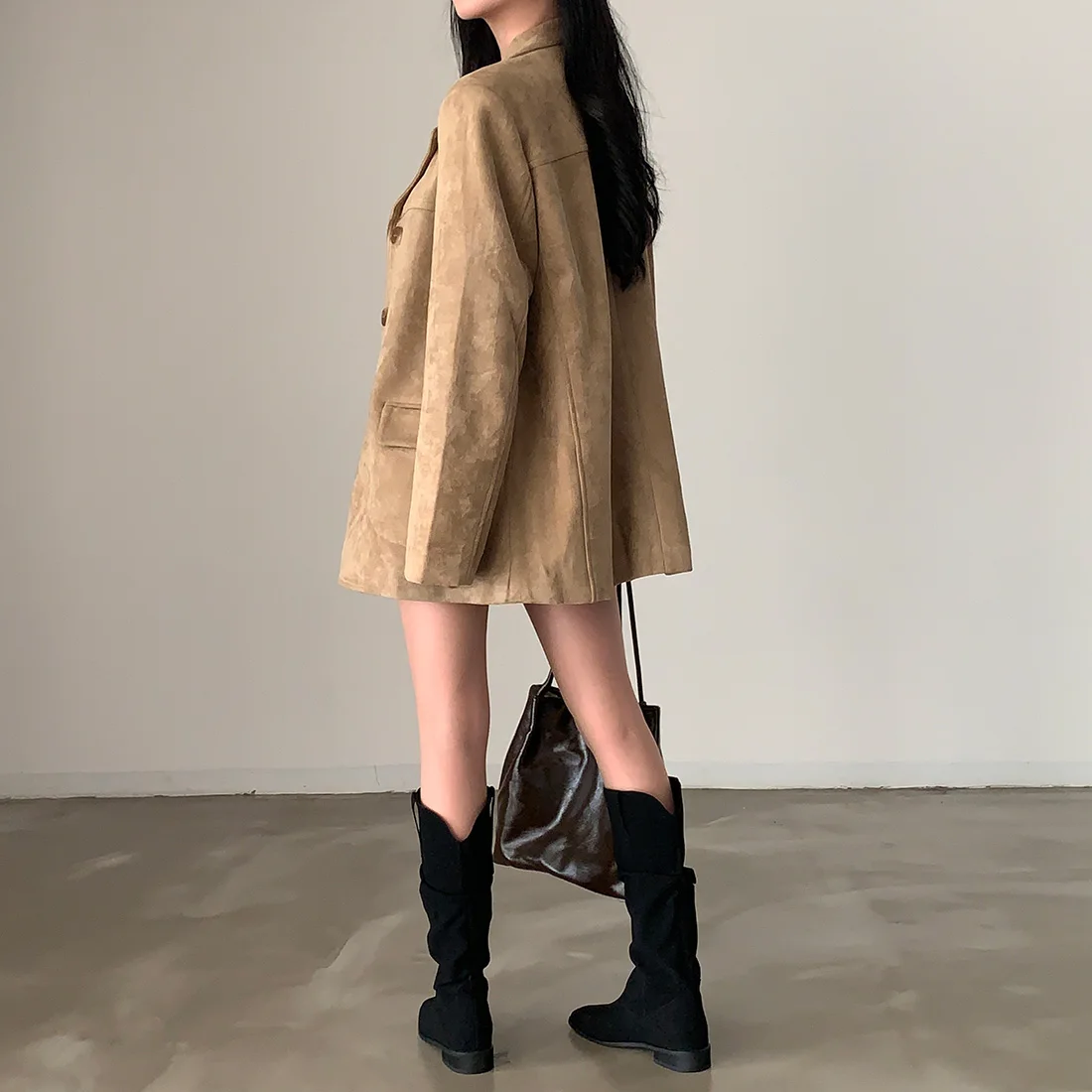 Woman Winter Turn-Down Collar Coat Solid Color Pockets Loose Single-Breasted Jacket Streetwear Outerwear Female Cardigan Top