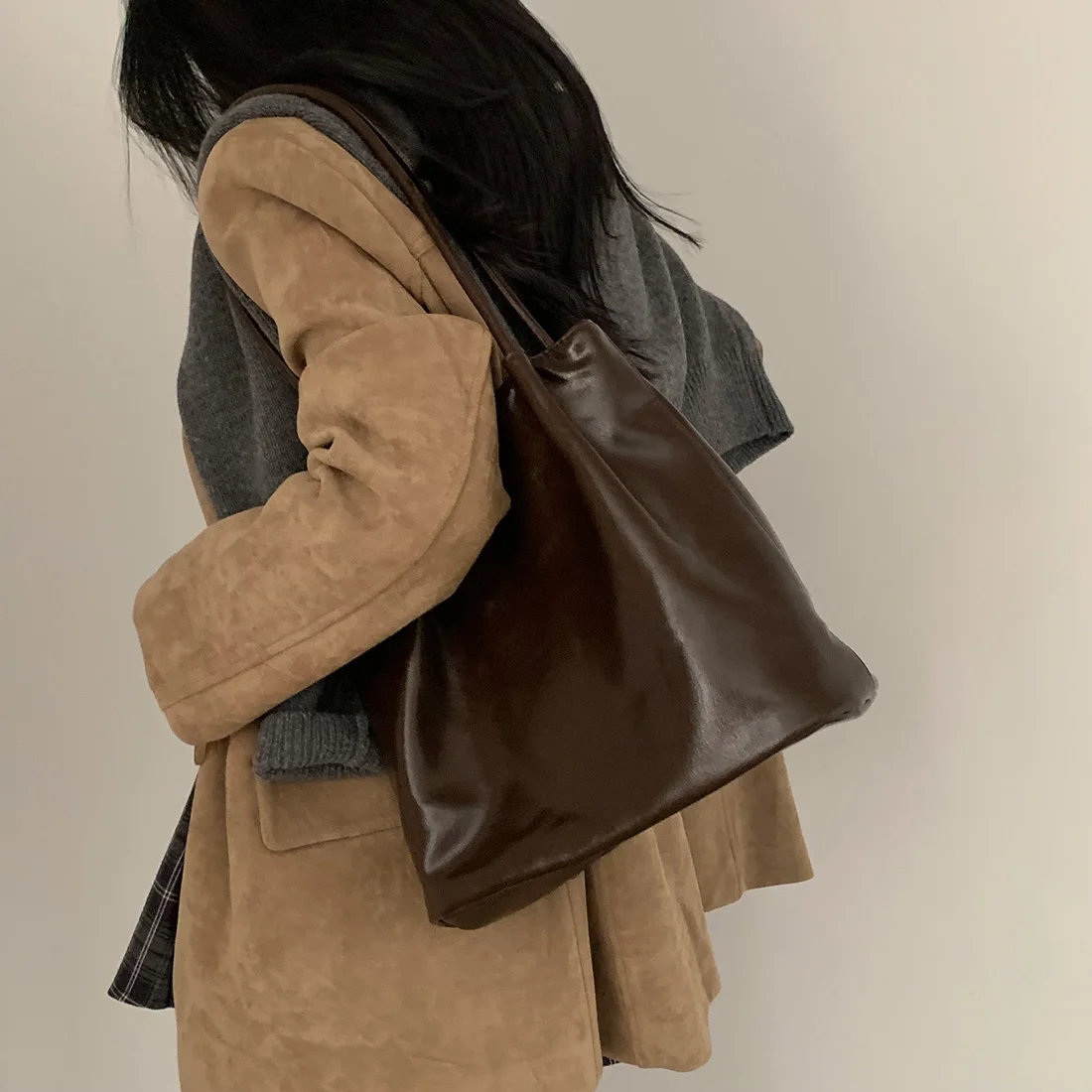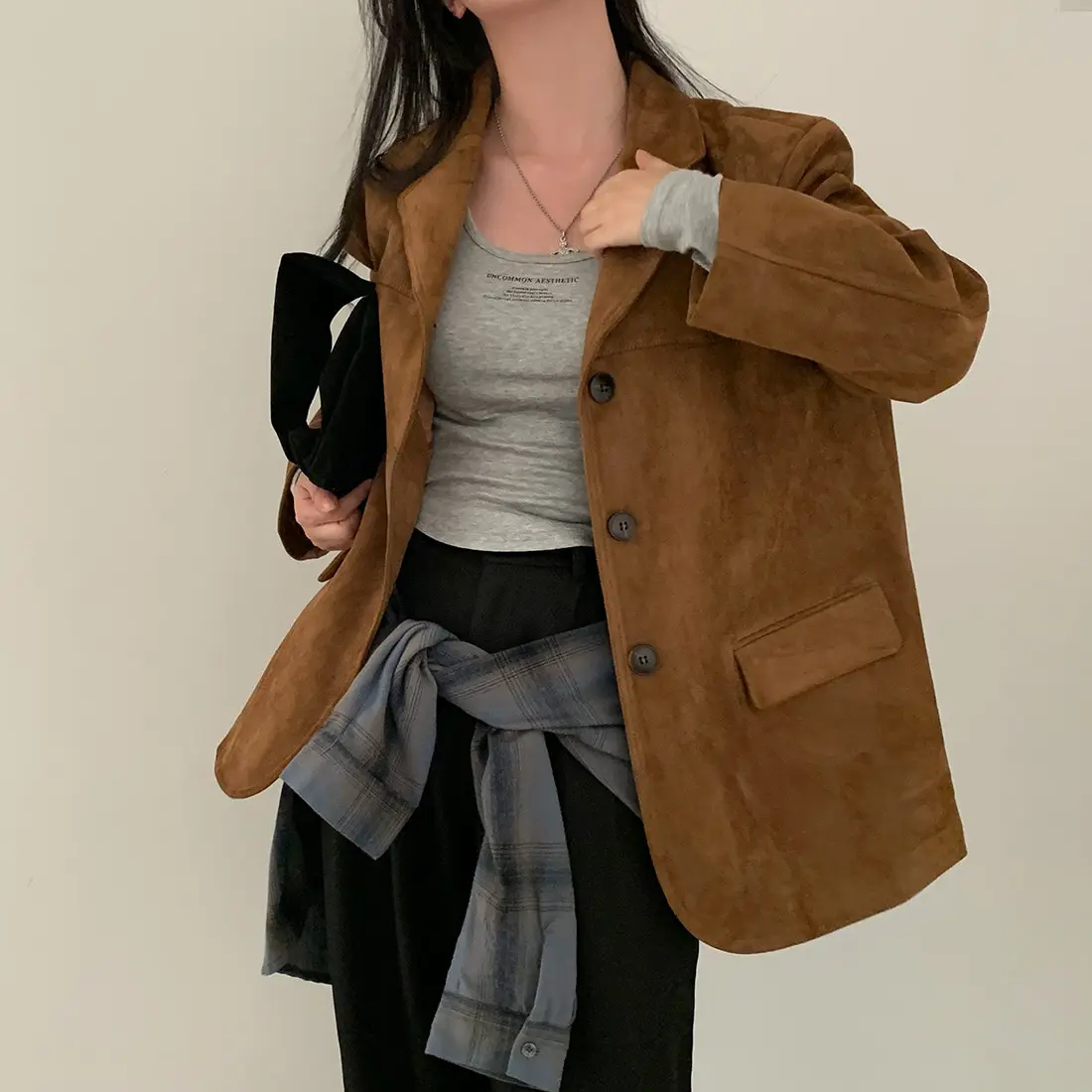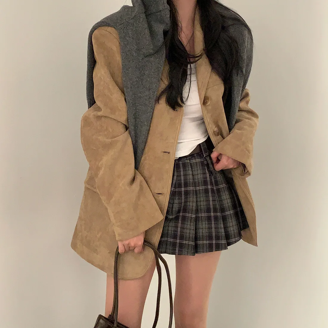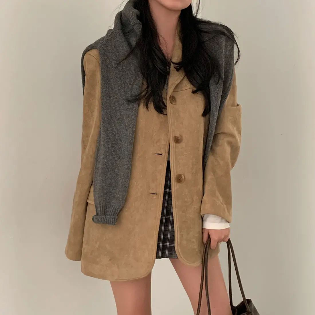 Woman Winter Turn-Down Collar Coat Solid Color Pockets Loose Single-Breasted Jacket Streetwear Outerwear Female Cardigan Top