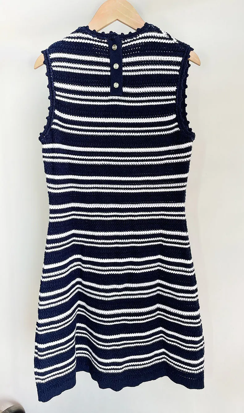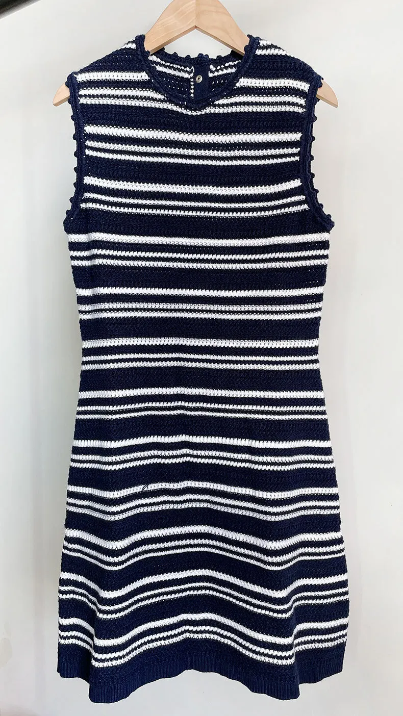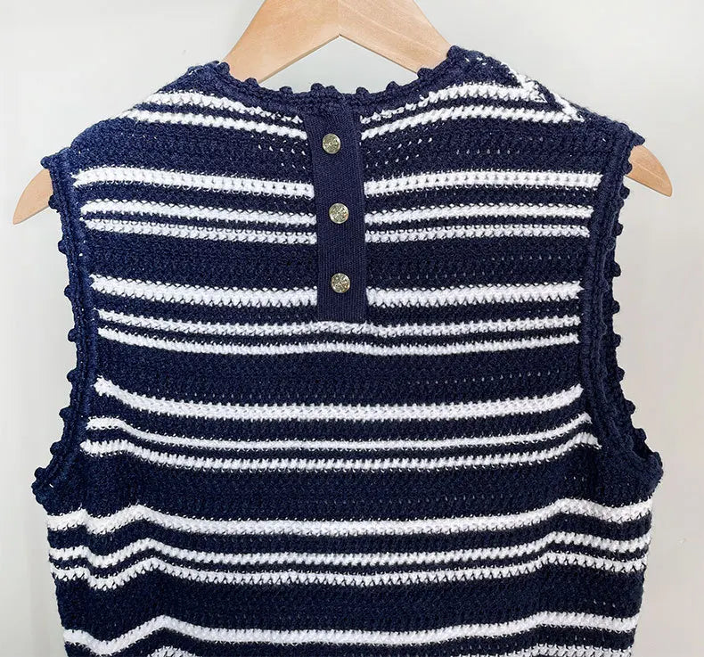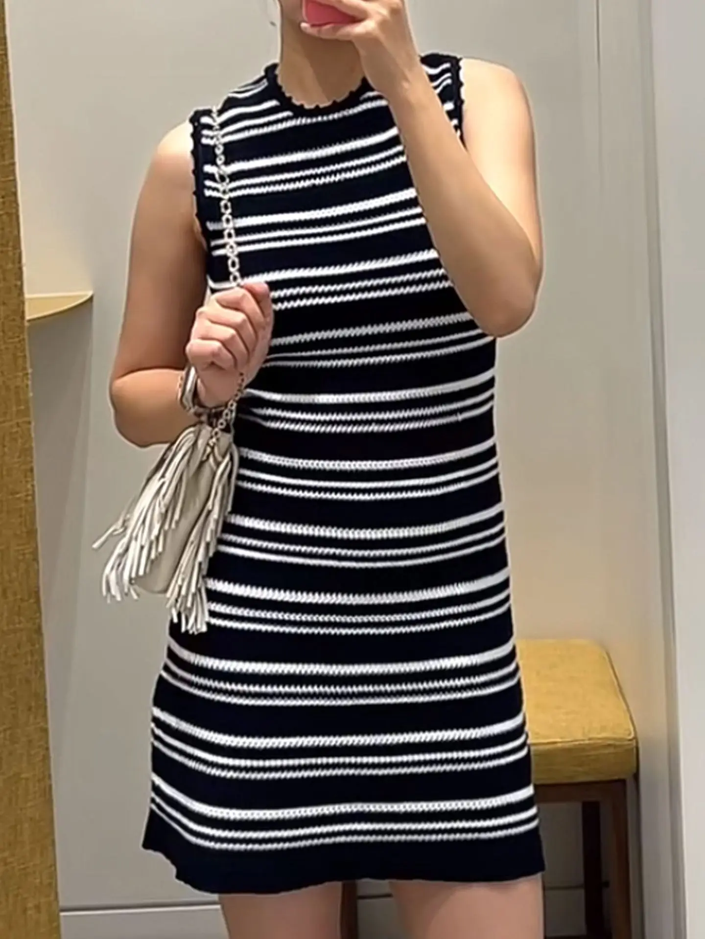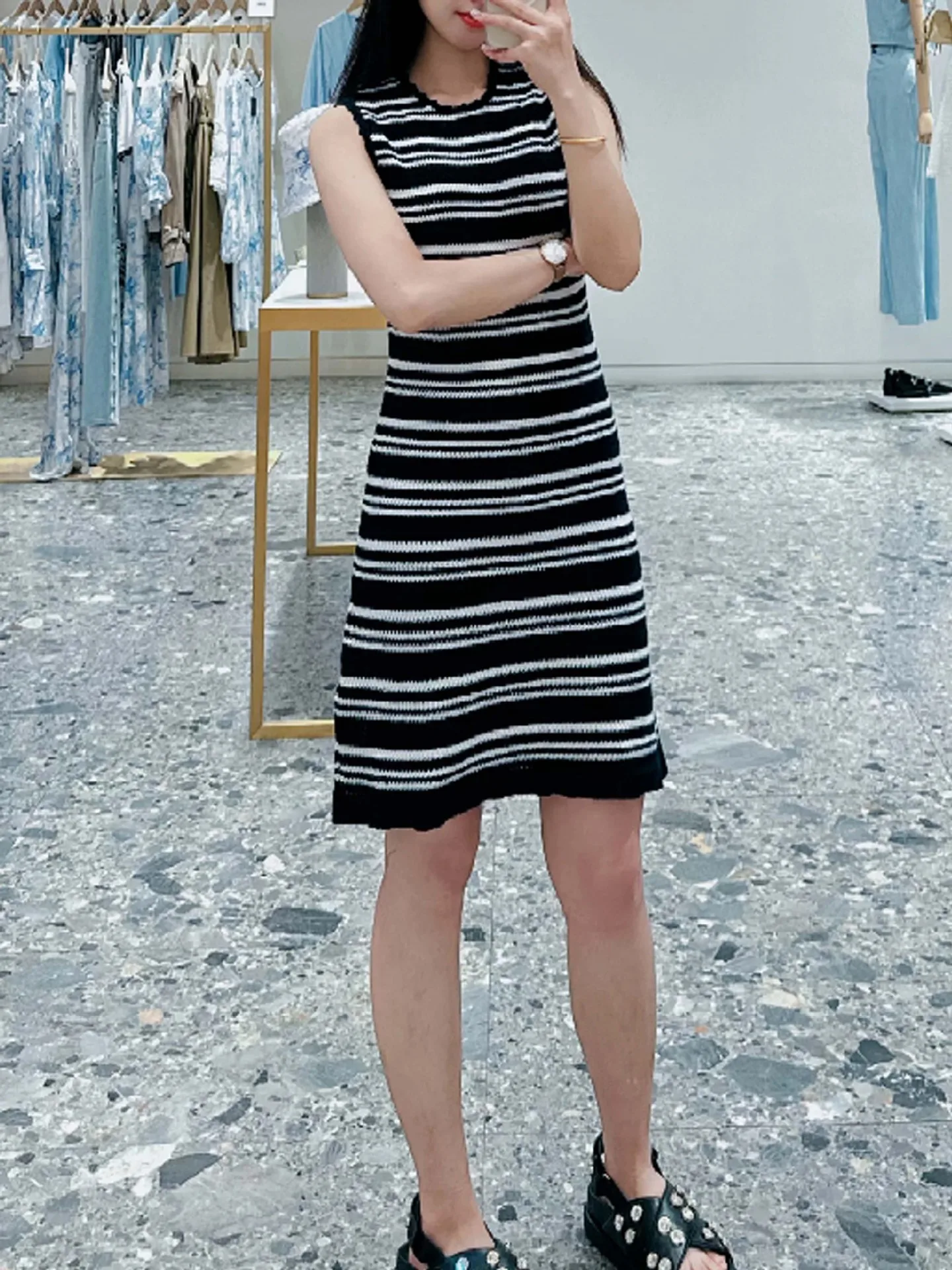 Women Sexy Knitted Dress Woman Dresses Colorblock High Waist A-Line O-Neck Sleeveless Patchwork Color Stripes Vestidos Hot