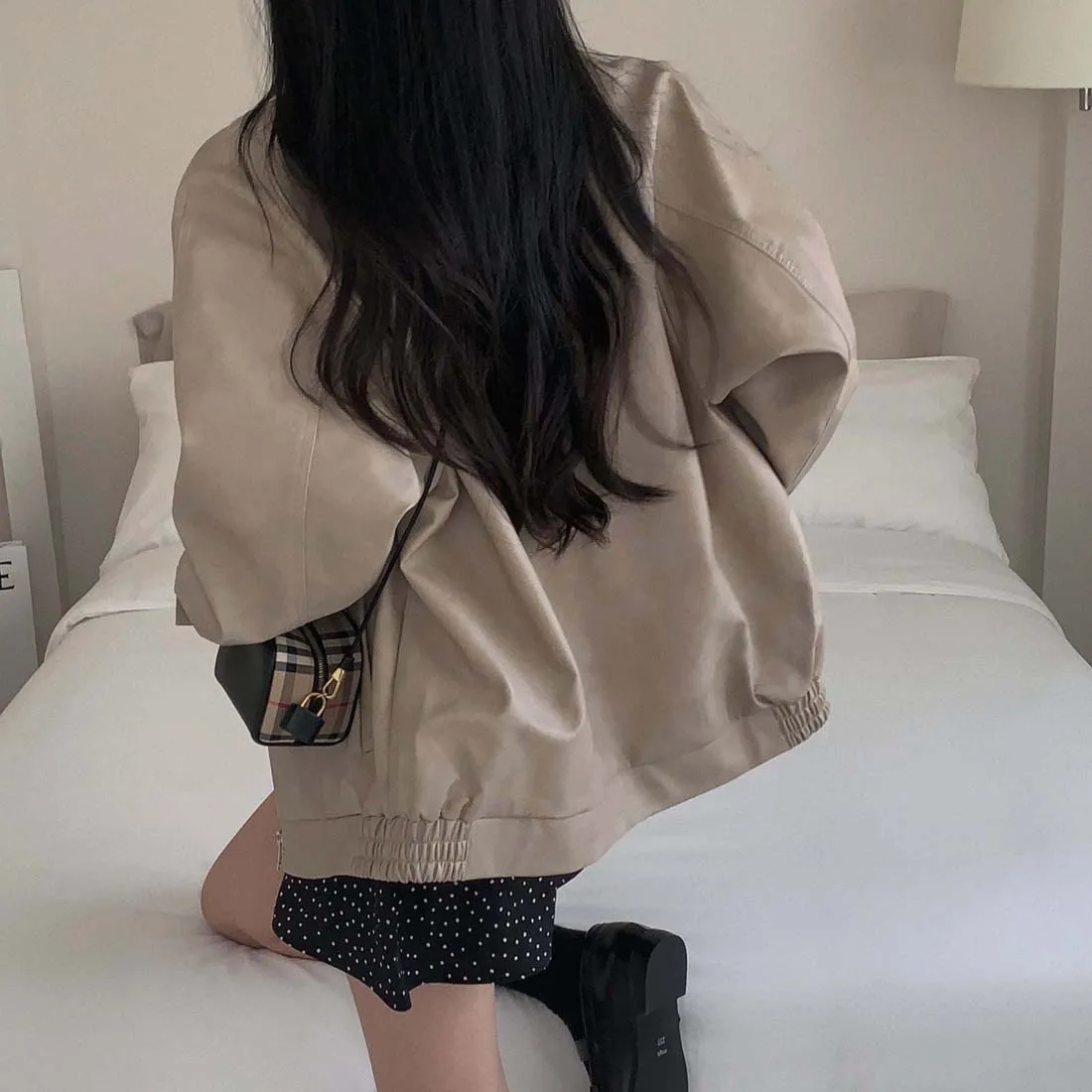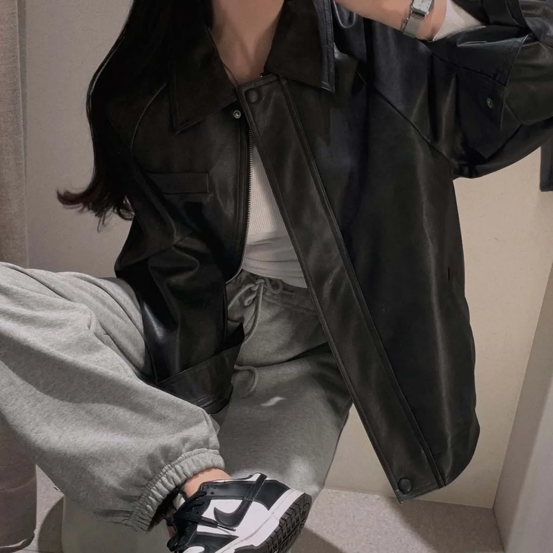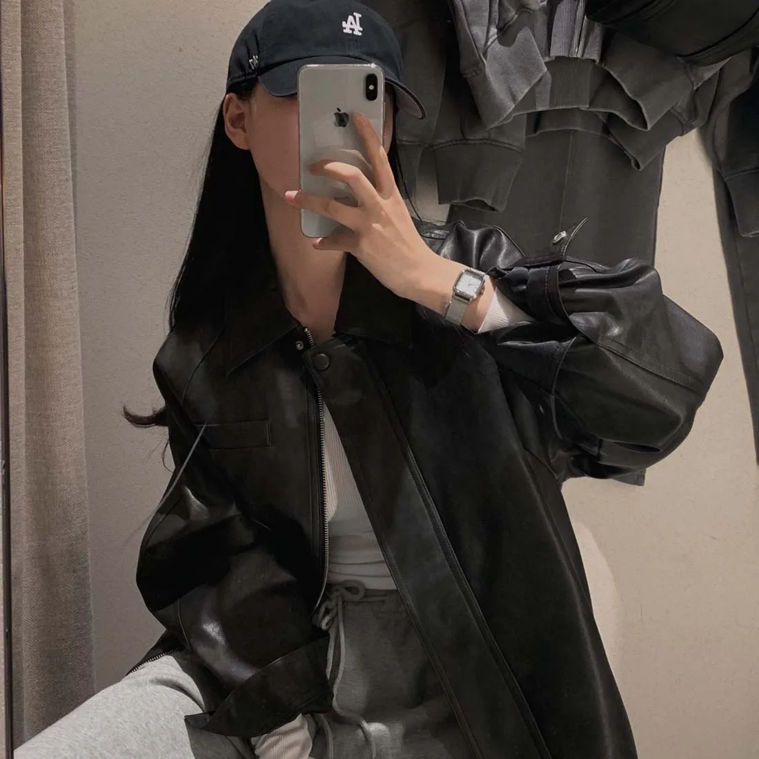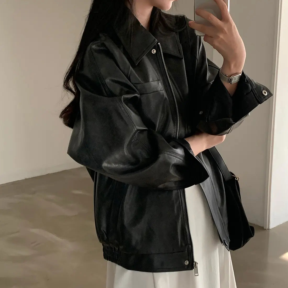 Women Slim Fit Faux Leather Jacket Long Sleeve Zipper Fitted Coat Autumn 2025 Classic Motorcycle Temperament Jackets Female