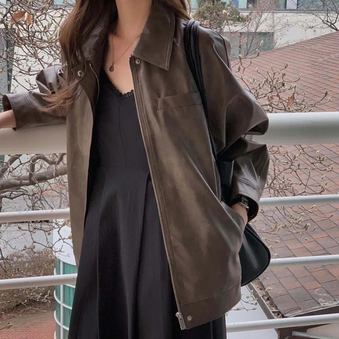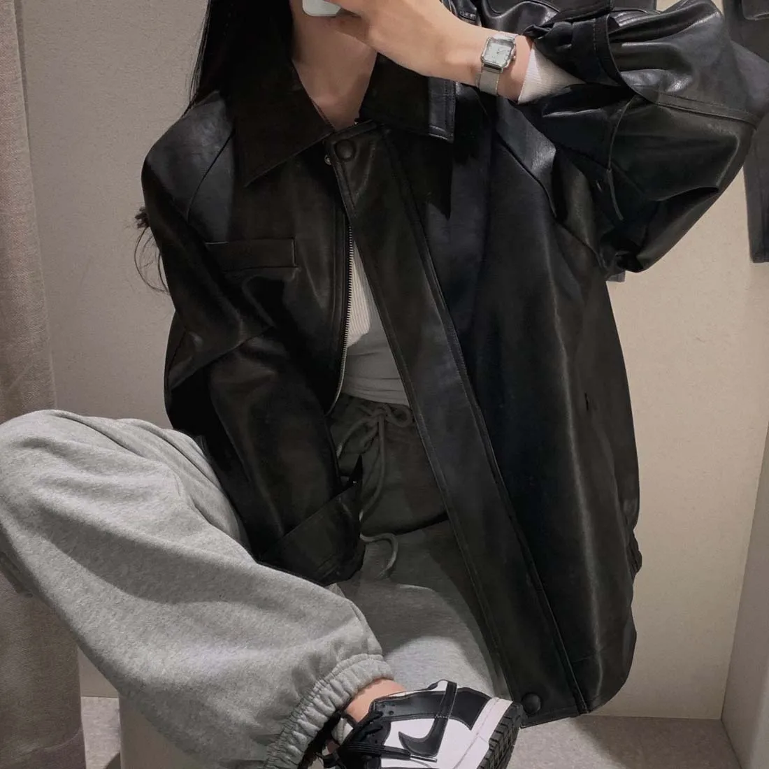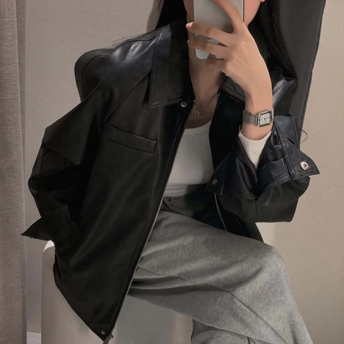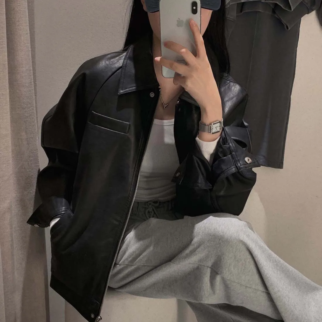 Women Slim Fit Faux Leather Jacket Long Sleeve Zipper Fitted Coat Autumn 2025 Classic Motorcycle Temperament Jackets Female