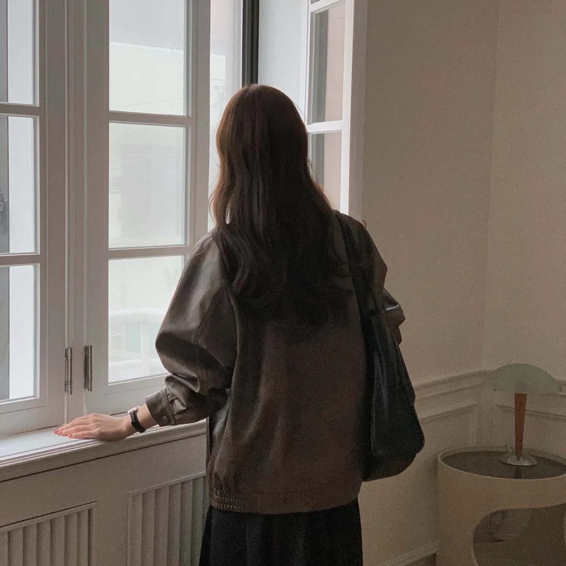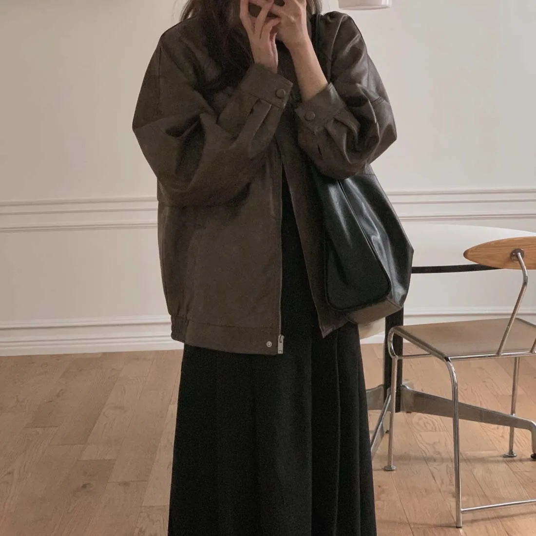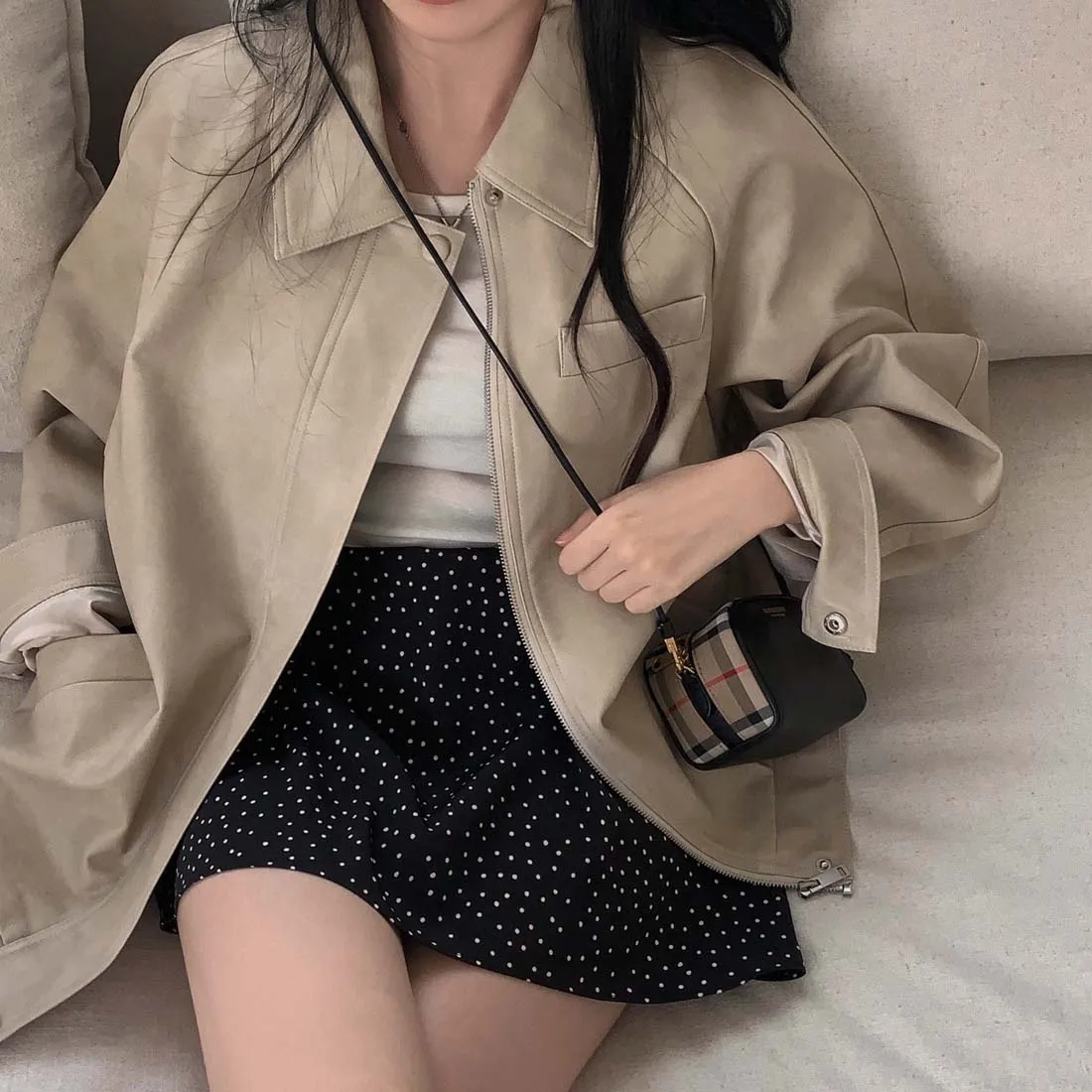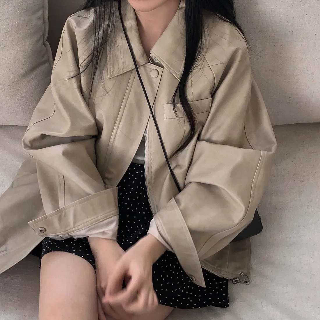 Women Slim Fit Faux Leather Jacket Long Sleeve Zipper Fitted Coat Autumn 2025 Classic Motorcycle Temperament Jackets Female