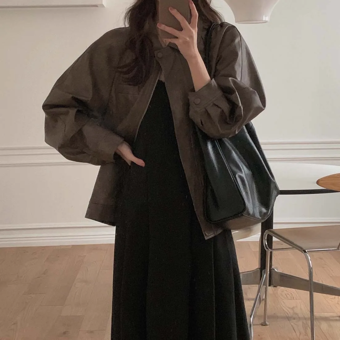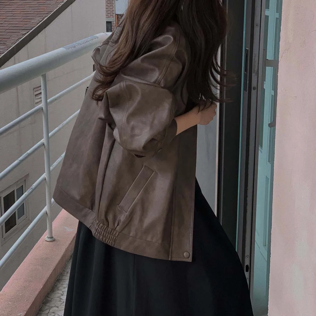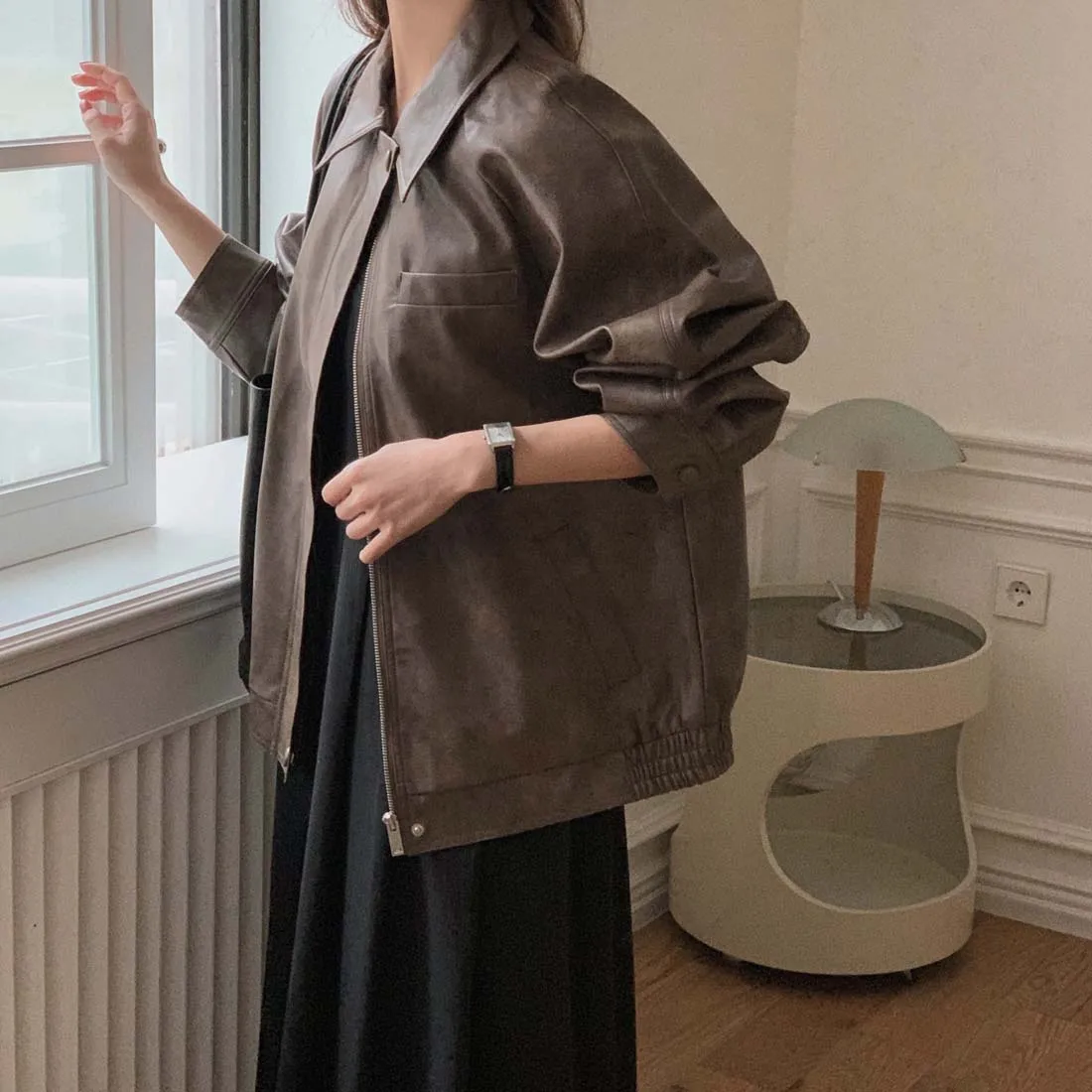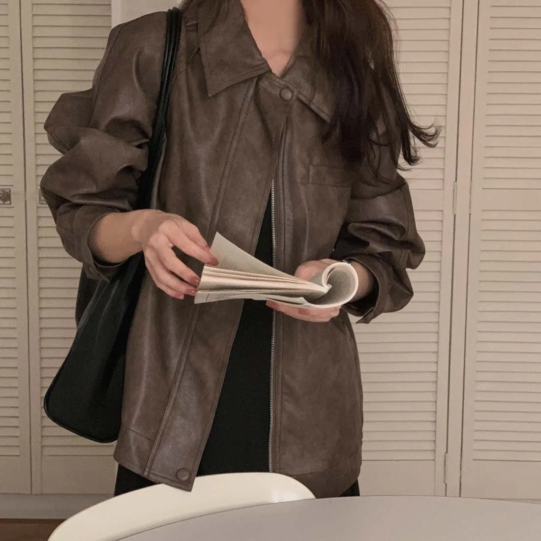 Women Slim Fit Faux Leather Jacket Long Sleeve Zipper Fitted Coat Autumn 2025 Classic Motorcycle Temperament Jackets Female