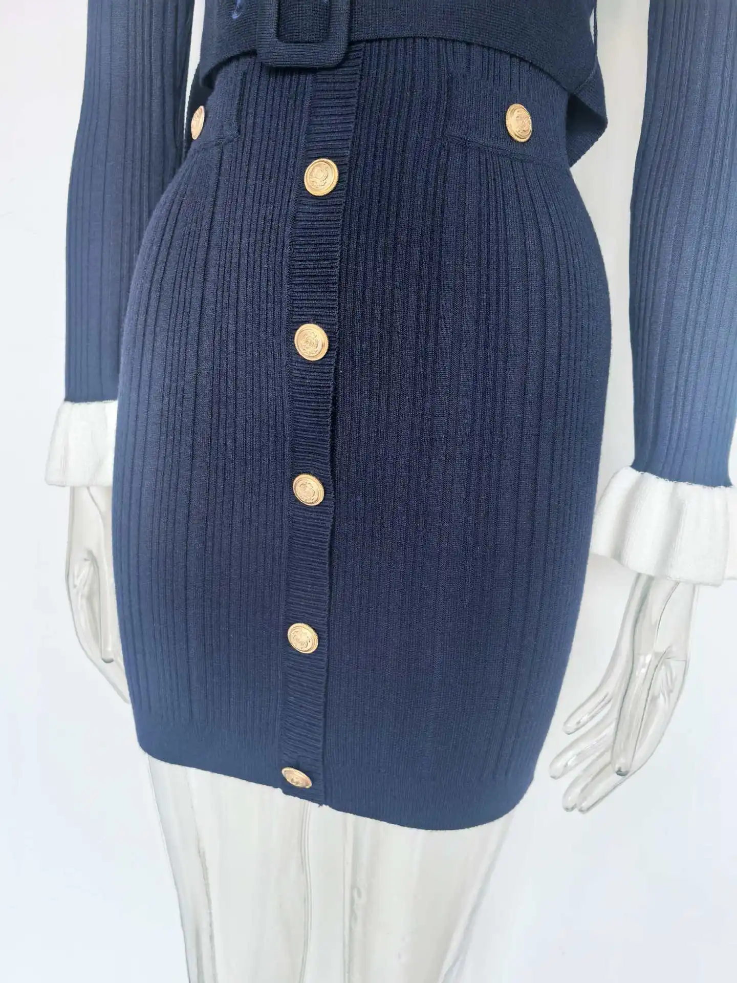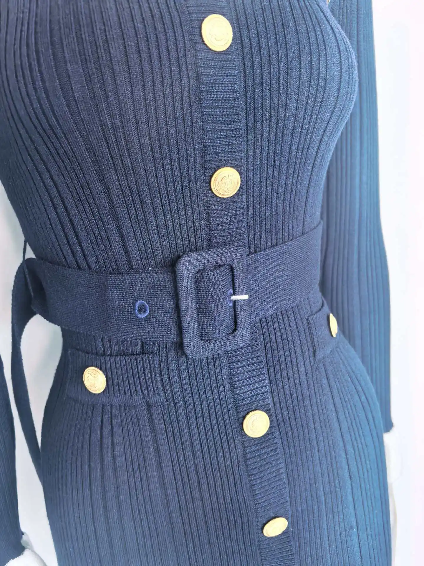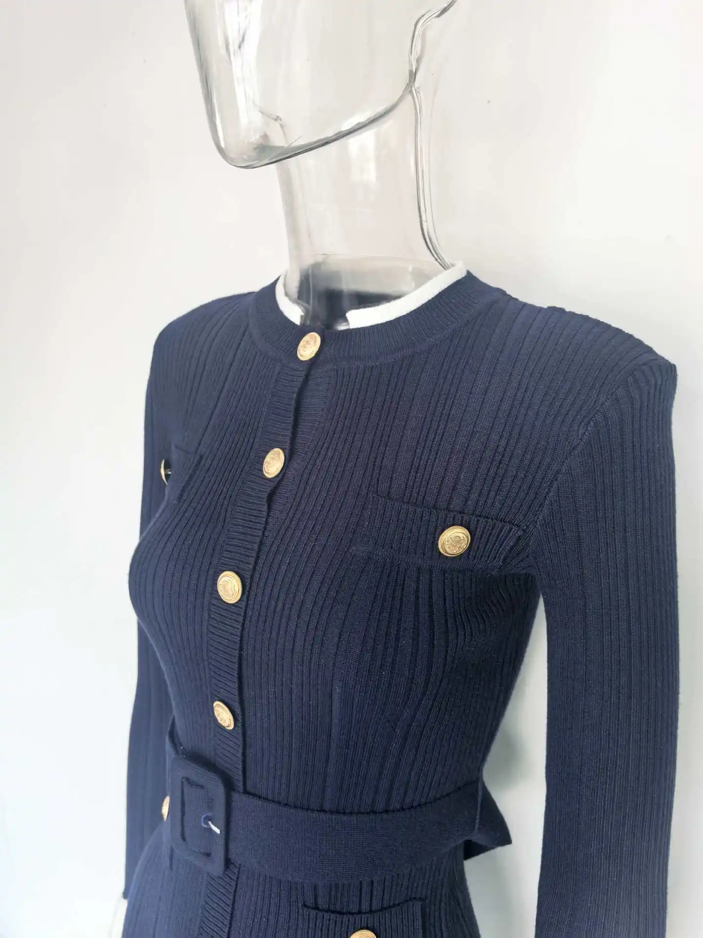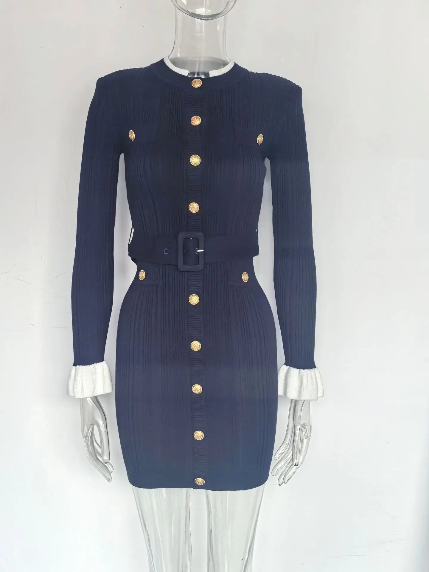 Women Solid Knitted Single Breasted Belt O-Neck Short Dresses Autumn Elegant 2025 Korean Chic Long Sleeve Party Vestidos
