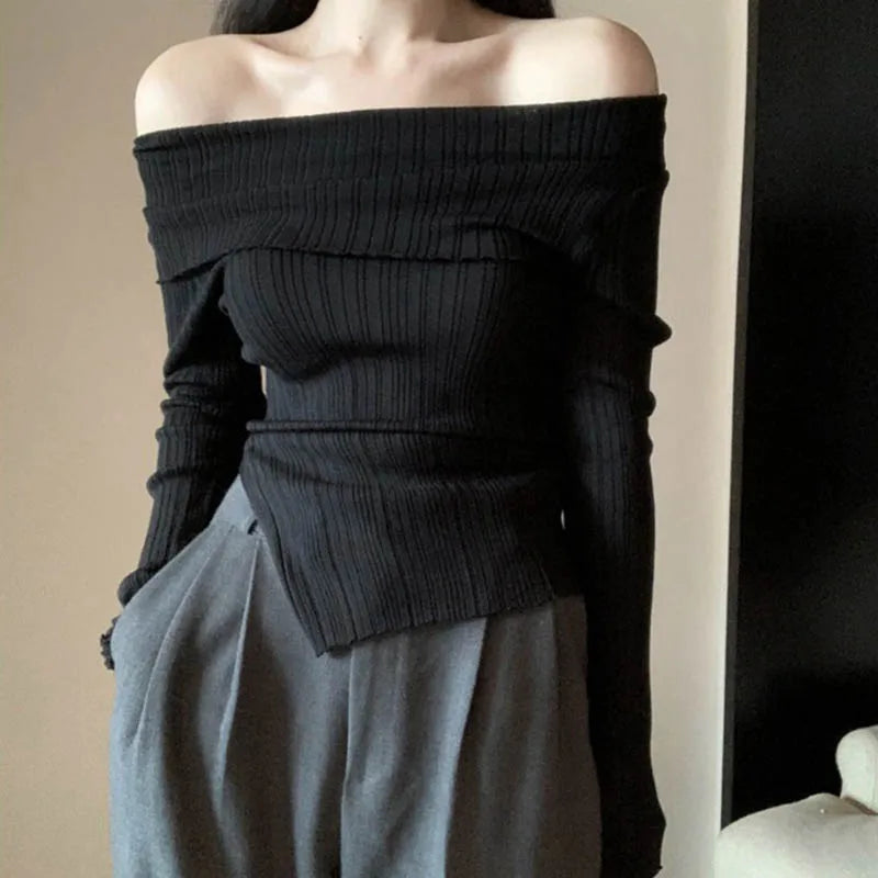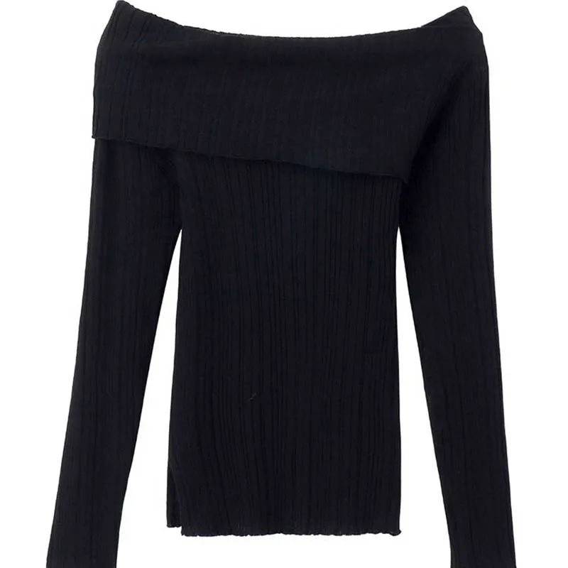 Women's Pullover Autumn Split Irregular Off Shoulder Top Black Long Sleeve Underlay Knitted Sweater For Women