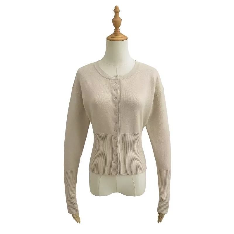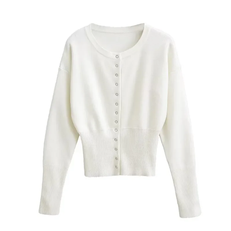 Women's Slim Fit Patchwork Knit Cardigan Casual Cropped Top Ribbed Knitwear Fashion Outerwear for Autumn Patchwork Knit Cardigan